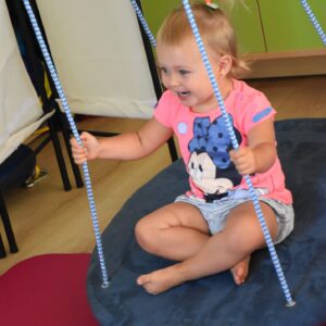 Dziś bawiliśmy się na huśtawce, gdzie ćwiczyliśmy nasz układ przedsionkowy. Po raz kolejny przekonaliśmy się, że z balonem zawsze można się świetnie bawić
