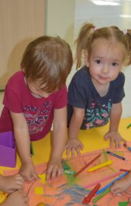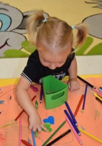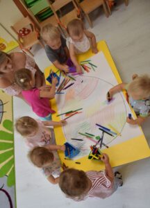 Dzisiejszy dzień w AMIsiowej Krainie Dziecka w Sieradzu obfitował w wiele barw. Nasze AMIsie podczas zabaw ruchowych przy muzyce ćwiczyły nie tylko koordynację ruchową, ale również poznały nowe kolory oraz utrwaliły te, które już znały. Ogromną radość sprawiła im zabawa kolorowymi balonami i chustą animacyjną. Na koniec, podczas zajęć plastycznych dzieci mogły rozwinąć swoją kreatywność, wyobraźnię oraz poćwiczyć motorykę małą.