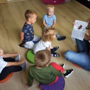 Na dzisiejszej bajkoterapii dzieci wysłuchały bajeczki edukacyjnej Króliczek Karolek idzie do żłobka. Dowiedziały się jak radzić sobie z wieloma różnymi emocjami które towarzyszą pierwszym dniom pobytu ok w żłobku.Dzięki ciekawej i przyjaznej opowieści opisującej dzień w żłobku łatwiej jest dzieciom przystosować się do nowej sytuacji.