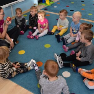 W dniu dzisiejszym w Amisiowej Krainie Dziecka w Zduńskiej Woli świętowaliśmy Światowy Dzień Jabłka. Na porannym kręgu AMIsiaki oglądały i próbowały darów z jesiennego sadu, pobudzając tym samym zmysł węchu i smaku.