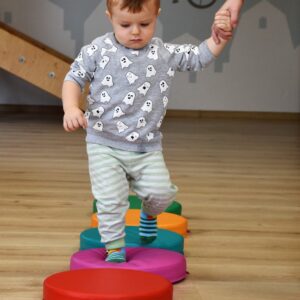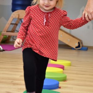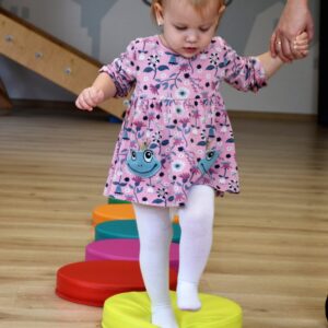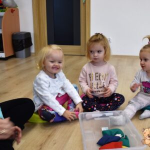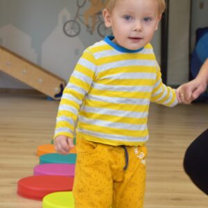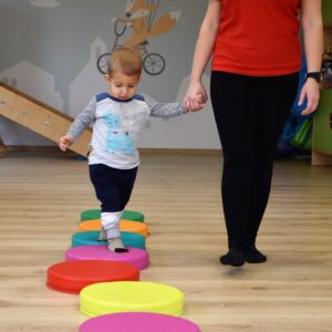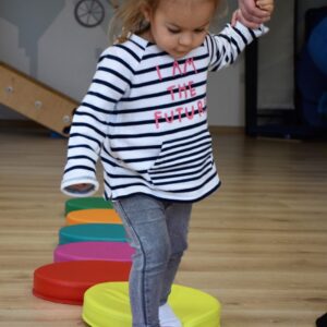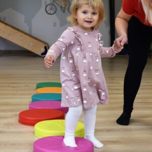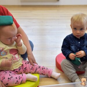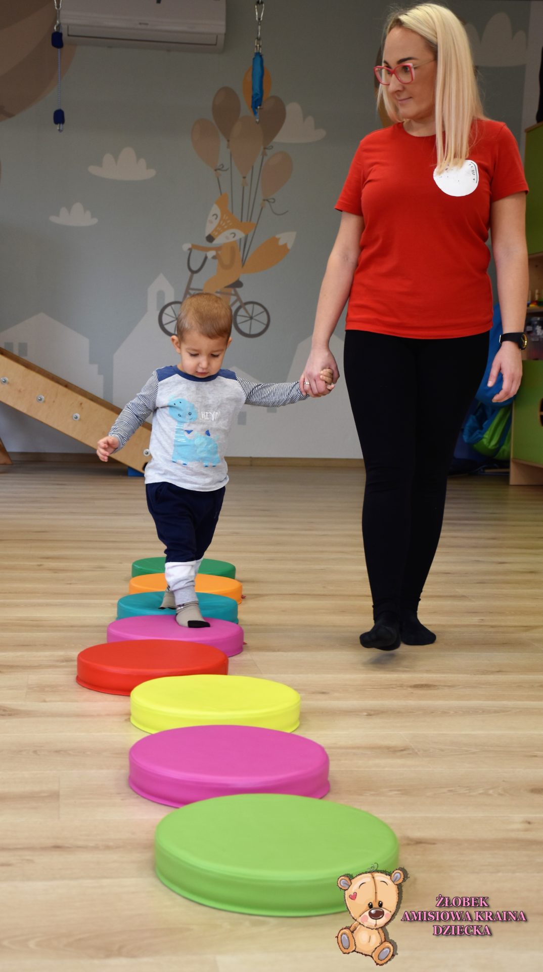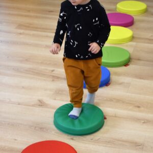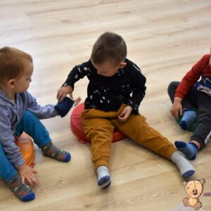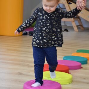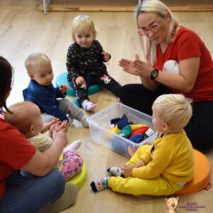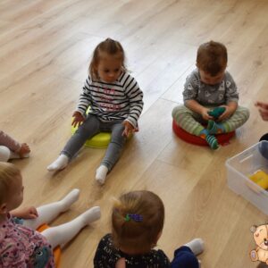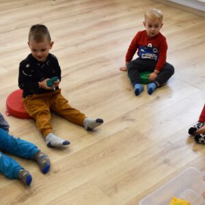 Dziś na zajęciach z nasza ciocia podawaliśmy i rzucaliśmy woreczkami do osoby obok. Z głowy worki same spadały i w pudle lądowały. Fajnie się siedziało i maszerowało po kolorowych podusiach.![]()