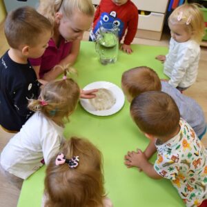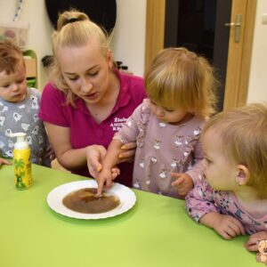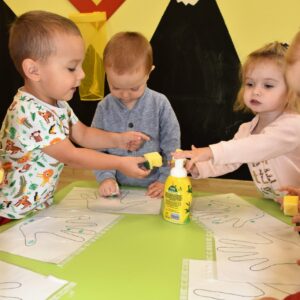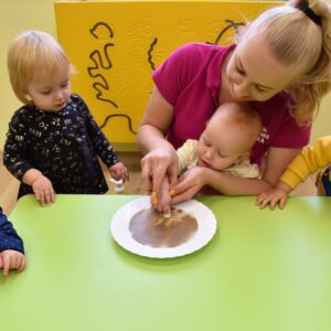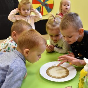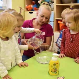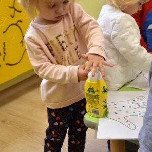 , z tej okazji Ciocia Natalia na zajęciach metodą Montessori pokazała dzieciom jak ważne jest dokładne mycie rączek. AMIsiaki wyczyściły rączki z „wirusów ” ćwicząc przy tym swoje zdolności manualne oraz rozwijając motorykę małą. Następnie wykonały doświadczenie pokazujące jak ważne jest używanie mydełka aby bakterie i wirusy od nas uciekały. Zajecia zakończyliśmy praktykując zdobyta wiedzę , poprzez dokładne umycie rączek. AMIsiaki super się bawiły , oraz poprzez obserwację i działanie