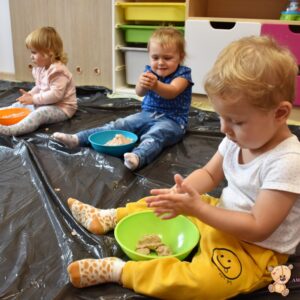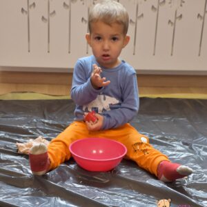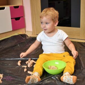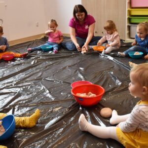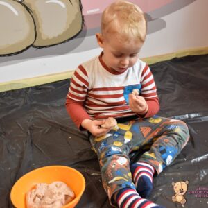 Na zajęciach sensoplastyki® AMIsiaki z okazji przypadającego na dzisiejszy dzień Dnia Chleba bawiły się w małą piekarnię. Z ciasta do którego przygotowania użyliśmy mąki, wody i soli AMIsiaki wygniatały i formowały wypieki, które możemy kupić w piekarni. Powstały chlebki, bułki, rogale i chałki. Dzieci dzięki tym zajęciom rozwinęły małą motorykę, stymulowały zmysł dotyku i węchu oraz pogłębiły wiedzę o otaczającym świecie.