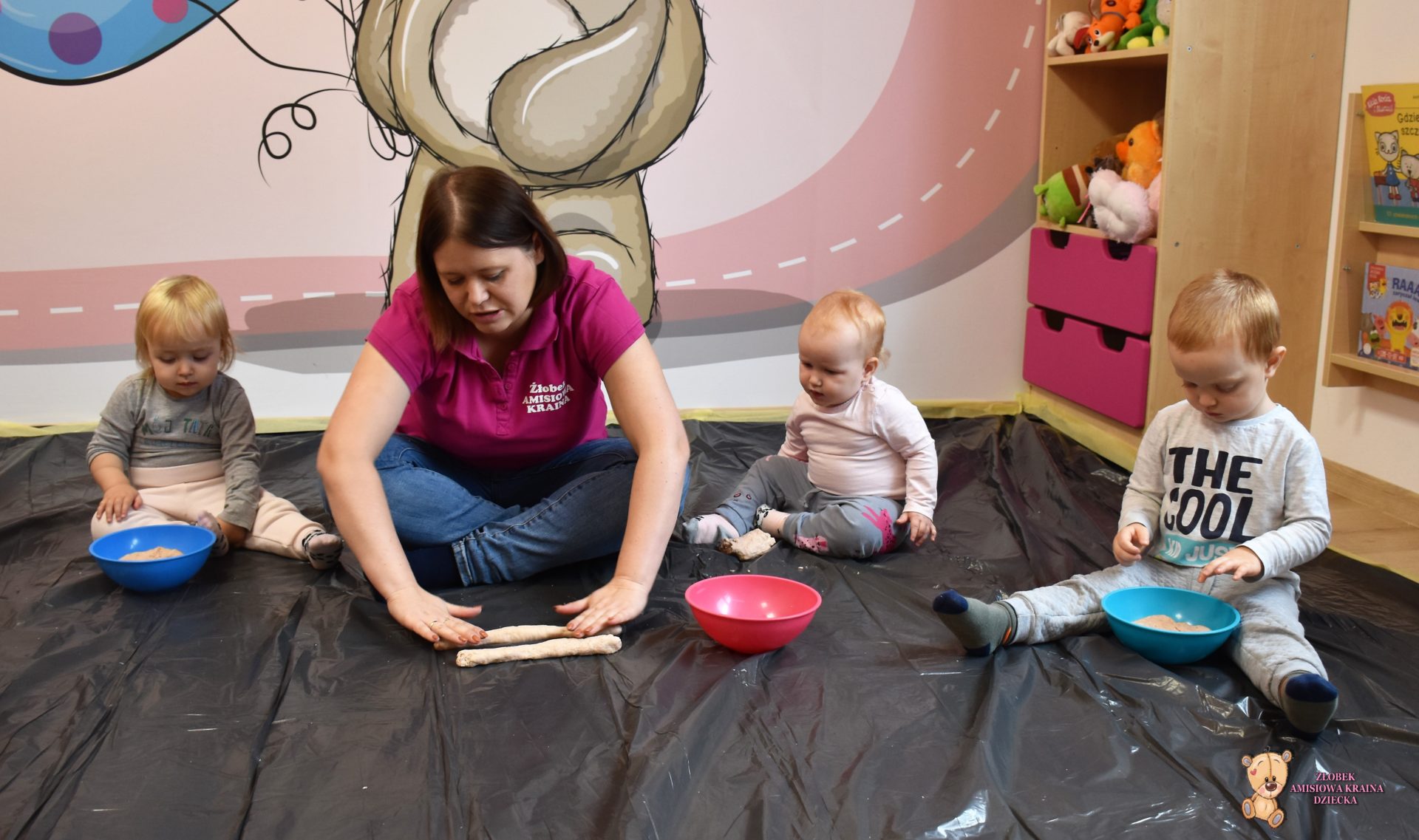 Na zajęciach sensoplastyki® AMIsiaki z okazji przypadającego na dzisiejszy dzień Dnia Chleba bawiły się w małą piekarnię. Z ciasta do którego przygotowania użyliśmy mąki, wody i soli AMIsiaki wygniatały i formowały wypieki, które możemy kupić w piekarni. Powstały chlebki, bułki, rogale i chałki. Dzieci dzięki tym zajęciom rozwinęły małą motorykę, stymulowały zmysł dotyku i węchu oraz pogłębiły wiedzę o otaczającym świecie.