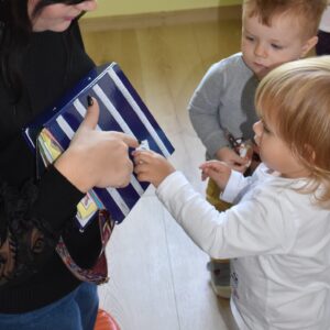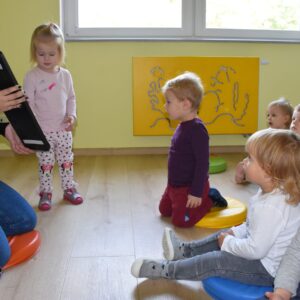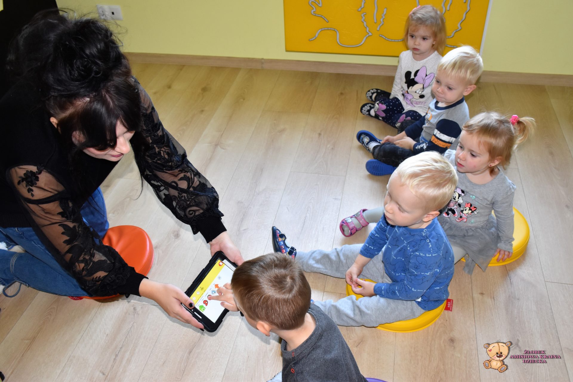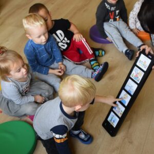 Wiedzieliście ze październik jest miesiącem alternatywnych metod komunikacji ? Czy kiedykolwiek ktoś z nas zastanawiał się jak to jest nie móc mówić ? Dziś ciocia Marta przyniosła dla nas różne metody komunikacji które wykorzystuje na co dzień w swojej pracy. Poznaliśmy podstawowe gesty z języka migowego oraz wiemy jak pracować na obrazkach. Ciocia pokazała też komunikatory które mówiły za nas !! To była bardzo ciekawa lekcja, dzięki której nie będziemy zaskoczeni kiedy spotkamy być może naszego rówieśnika z jednym z takich komunikatorów. To następnego spotkania.