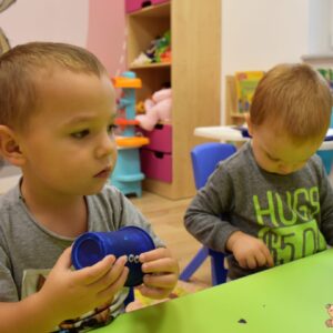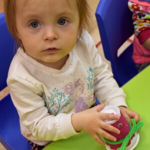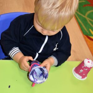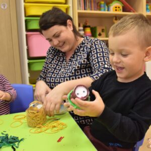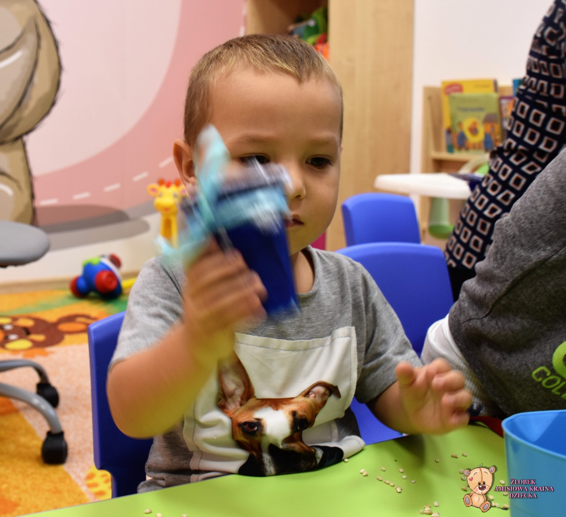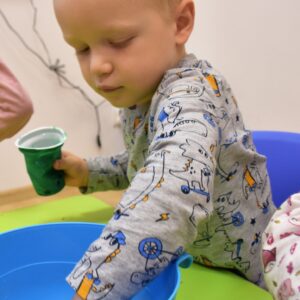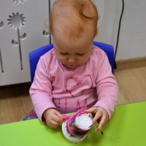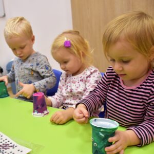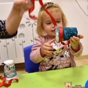 Na dzisiejszej muzykoterapii dzieci dokończyły przygodę tworzenia swoich kolorowych instrumentów. Pudełka po jogurtach zamieniły się w kolorowe i wesołe stworki ! Wszystkie dzieci z radością grały na nowych instrumentach.