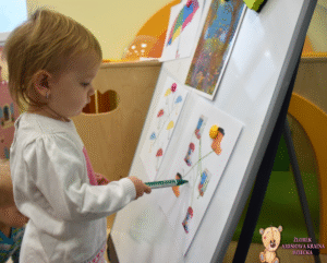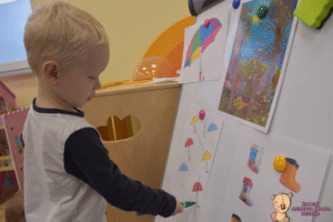 Jesienna pogoda za oknem. AMIsiaki na dzisiejszym porannym kręgu rozmawiały z Ciocią o jesiennej pogodzie oraz co należy ze sobą zabrać w deszczowy dzień. Dzieci z zaciekawieniem układały puzzle, oraz świetnie poradziły sobie z łączeniem do pary parasoli, kaloszy.