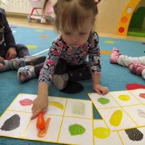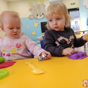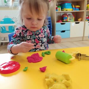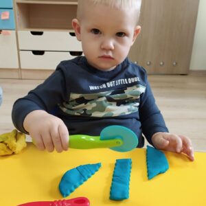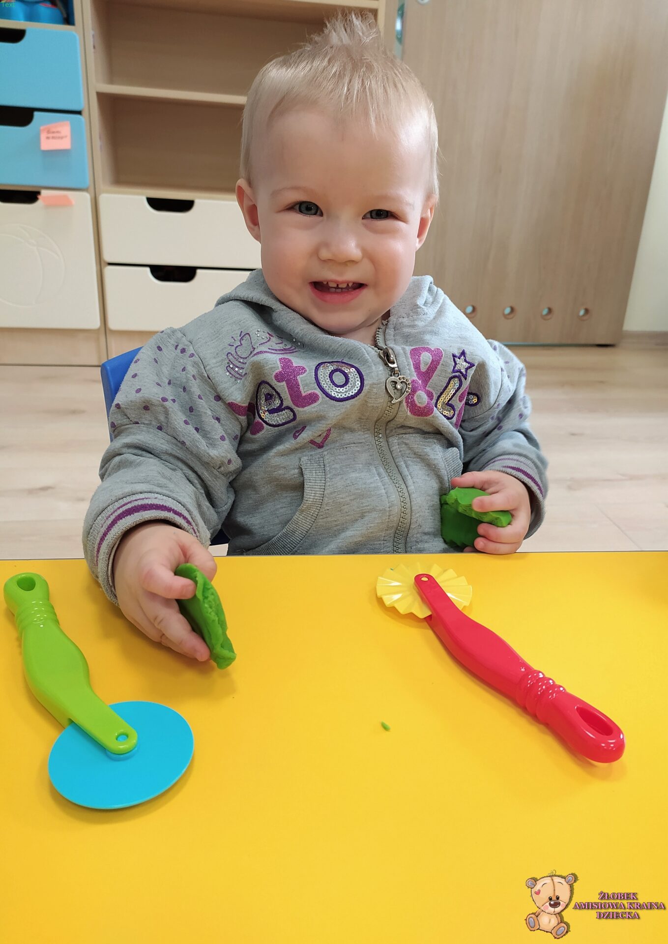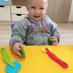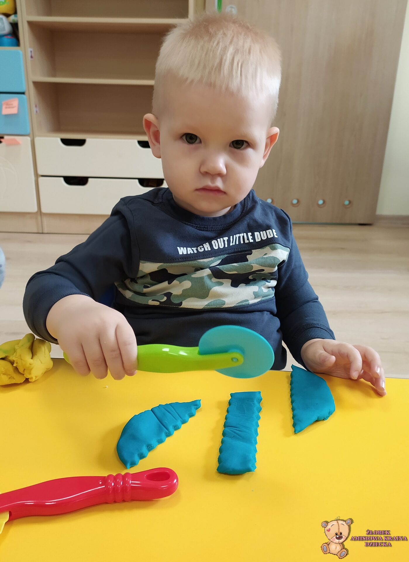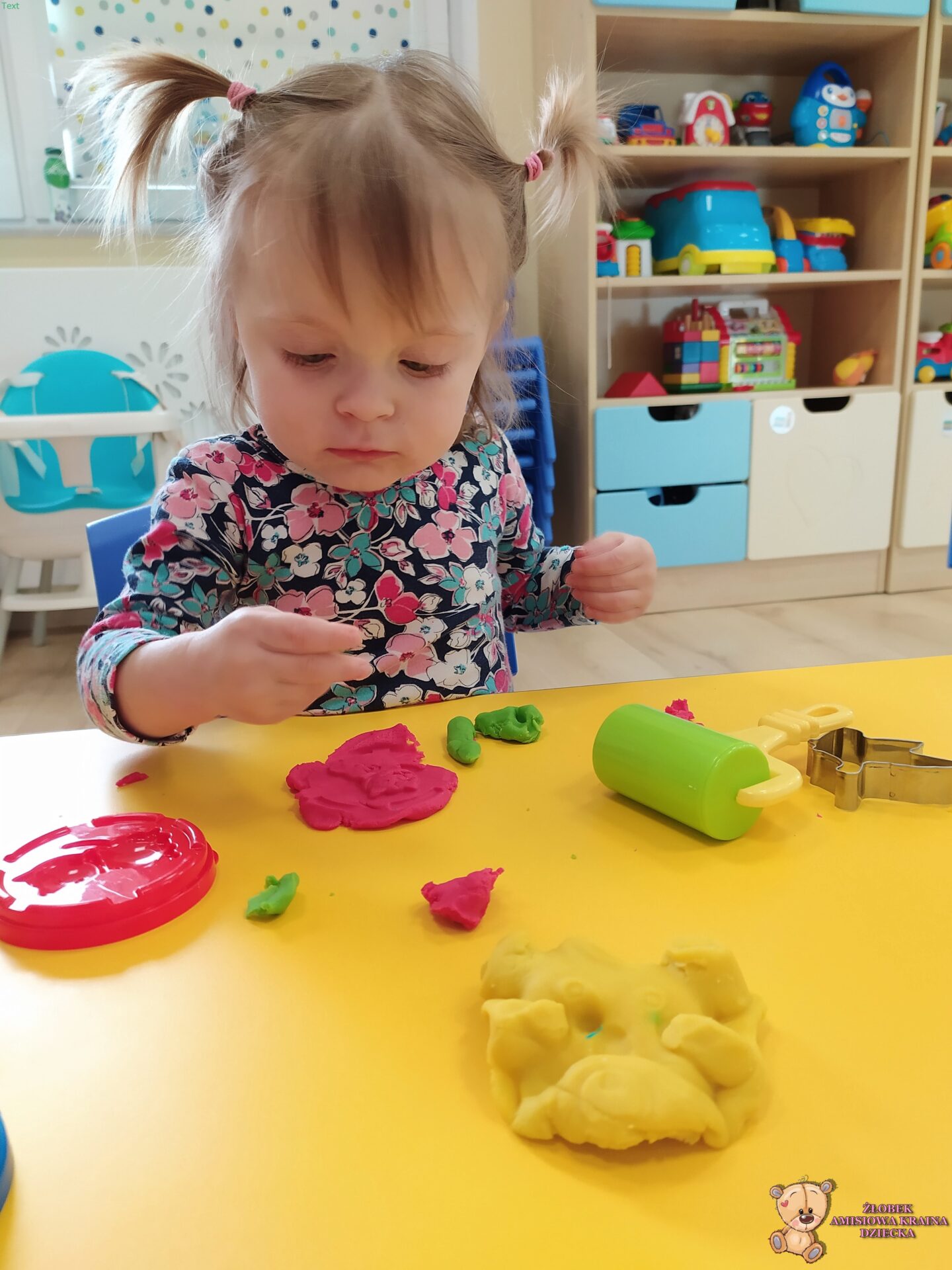 W dniu dzisiejszym najmłodsza grupa Amisiaków, czyli grupa motylków, uczyła się i rozwijała swoje zdolności plastyczne podczas zabawy z ciastoliną.