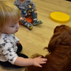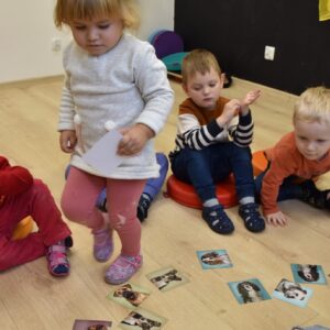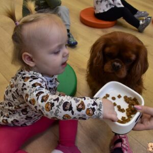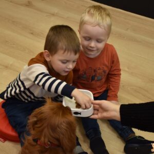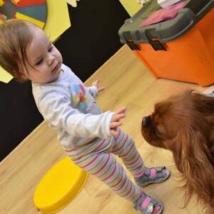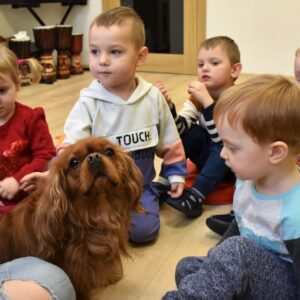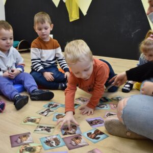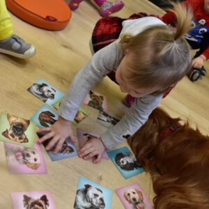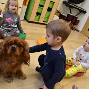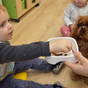 Na zajęciach dogoterapii Amisiaki odwiedziła Misia. Dzieci miały trudne zadanie, musiały pracować nad swoją spostrzegawczością. Zadanie polegało na znalezieniu pary takich samych piesków. Wszyscy świetnie sobie z tym zadaniem poradzili i wspólnie nakarmili psiego terapeutę.