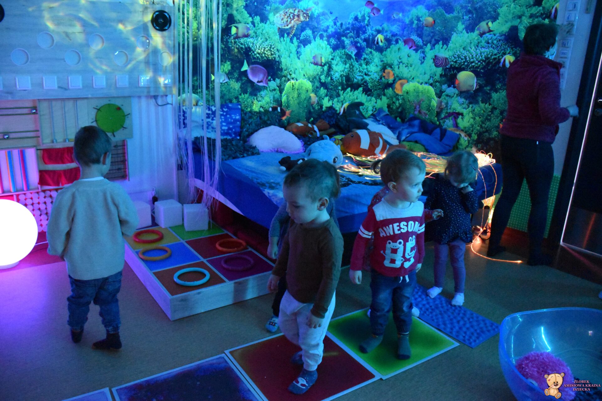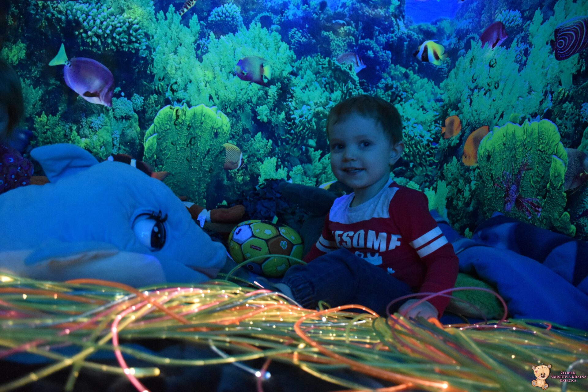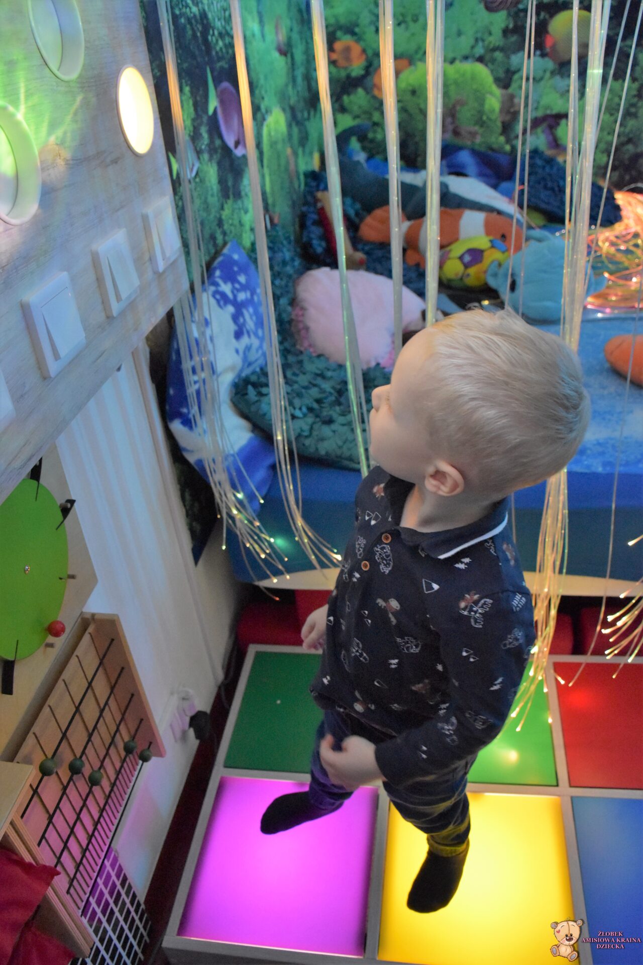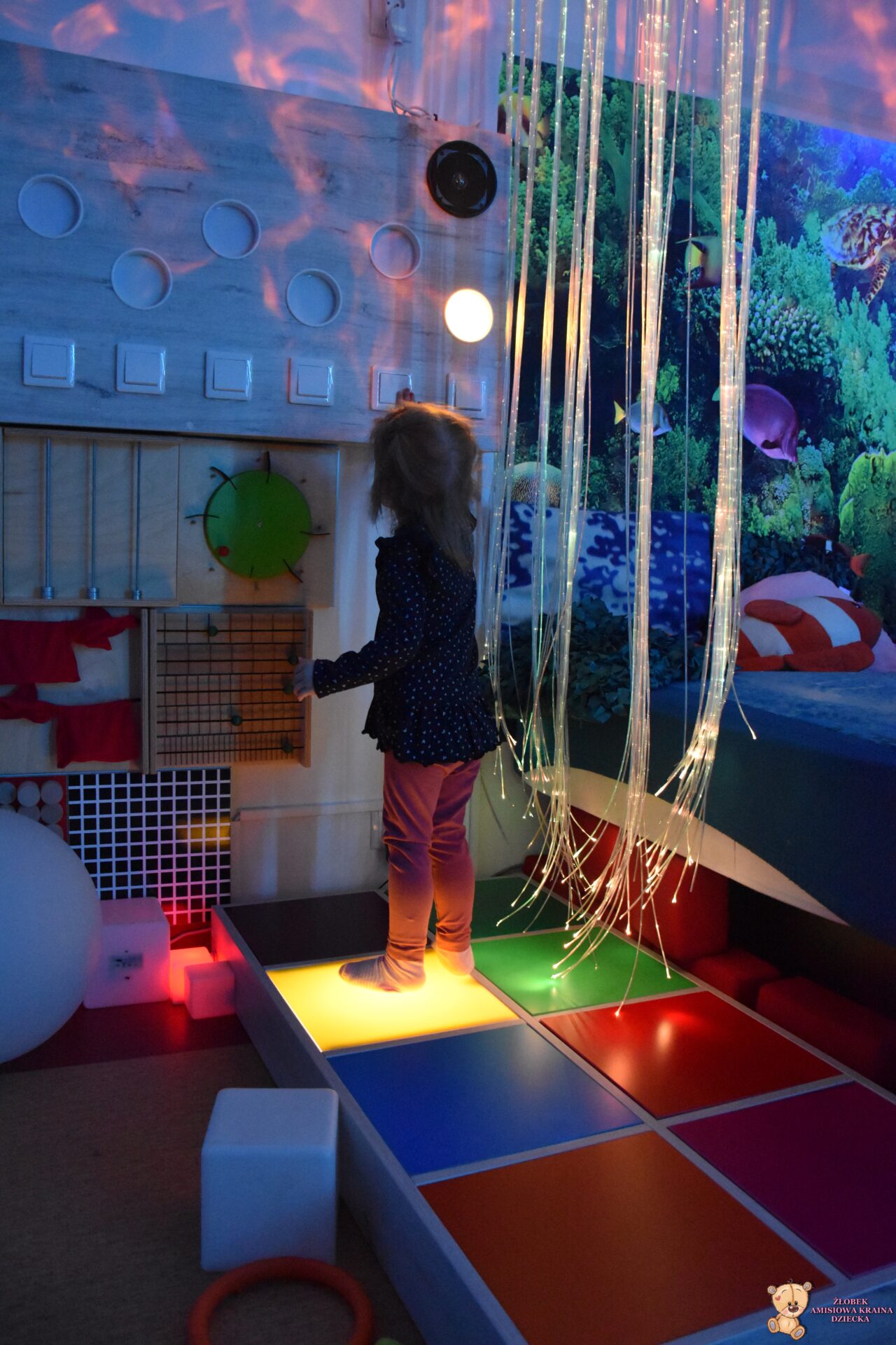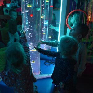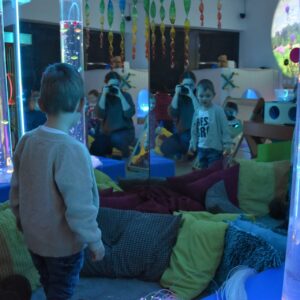Sala Doświadczania Świata jest bezpieczna dla dzieci, wyposażona jest m.in w basen z kuleczkami, łóżko wodne, projektory świetlne, świecące i kolorowe kule, panele lustrzane, światłowody, pomoce sensoryczne w tym dotykowe, węchowe, wzrokowe i stymulacji słuchowej. To była wspaniała wycieczka ! 🙂