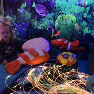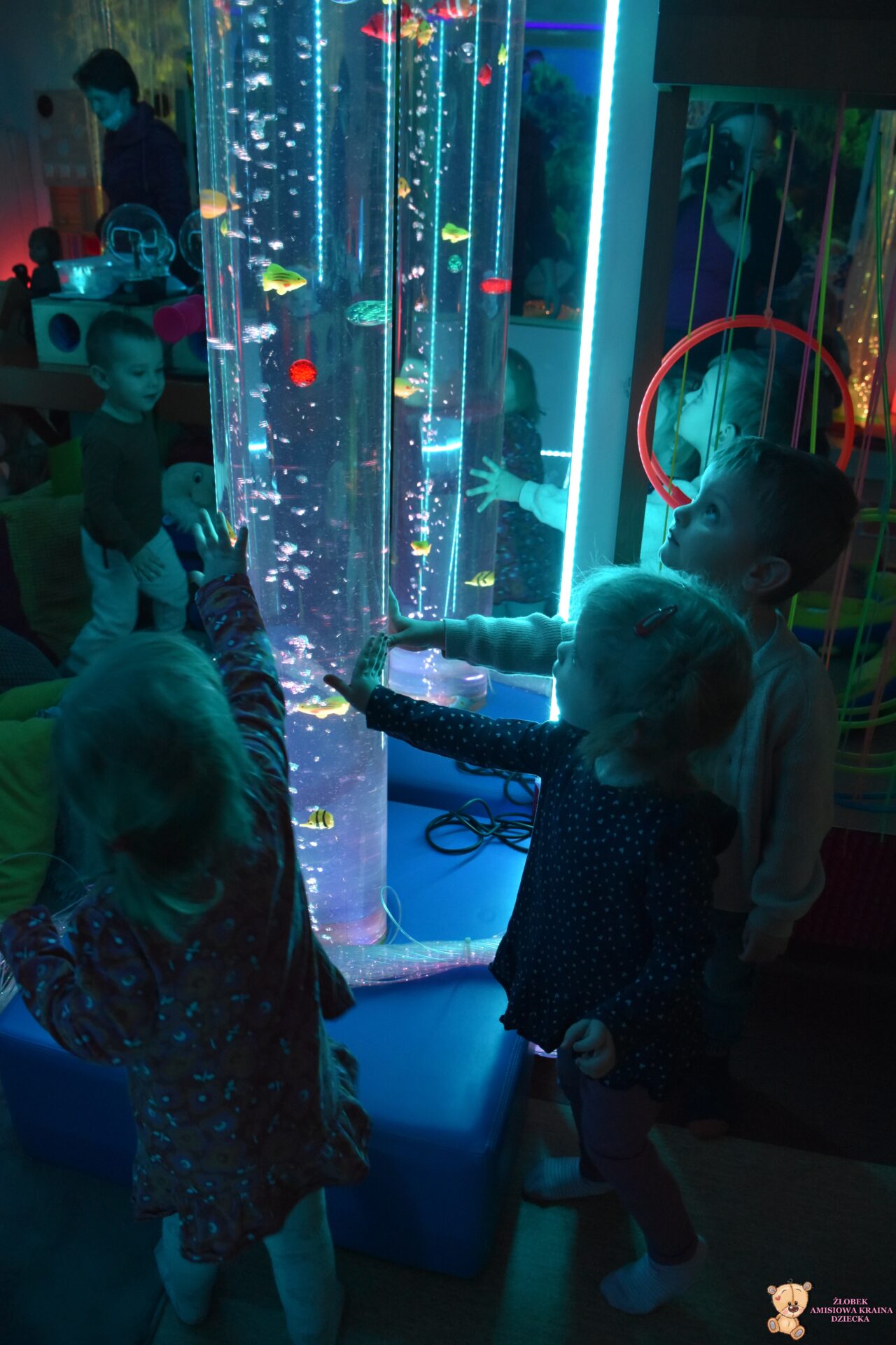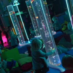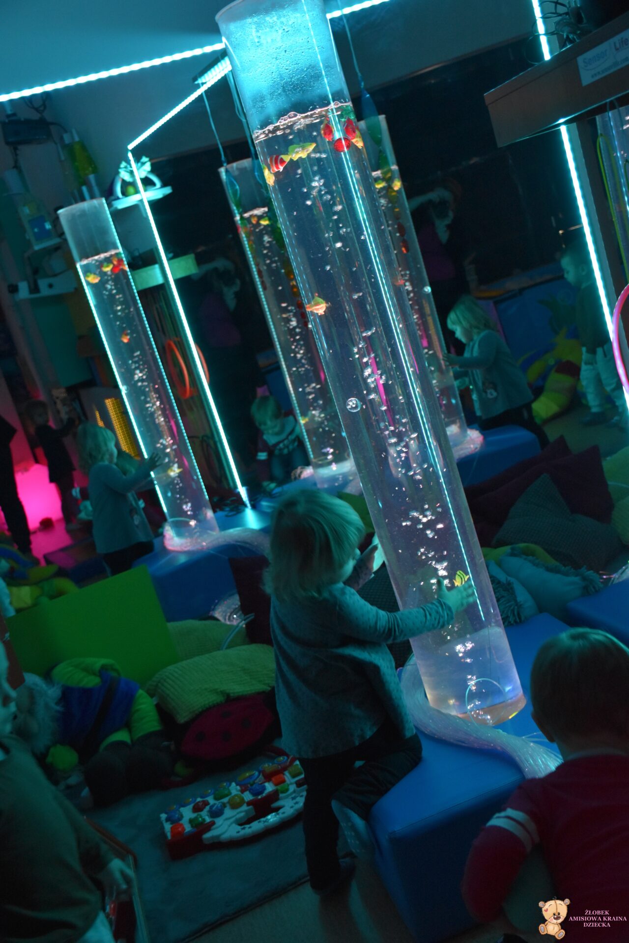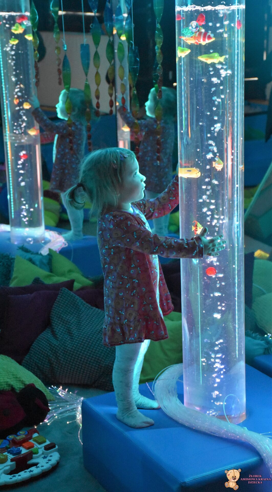Sala Doświadczania Świata jest bezpieczna dla dzieci, wyposażona jest m.in w basen z kuleczkami, łóżko wodne, projektory świetlne, świecące i kolorowe kule, panele lustrzane, światłowody, pomoce sensoryczne w tym dotykowe, węchowe, wzrokowe i stymulacji słuchowej. To była wspaniała wycieczka ! 🙂
