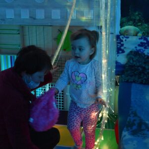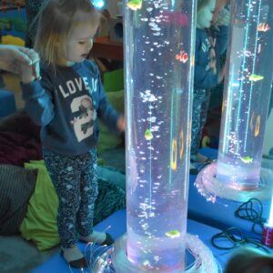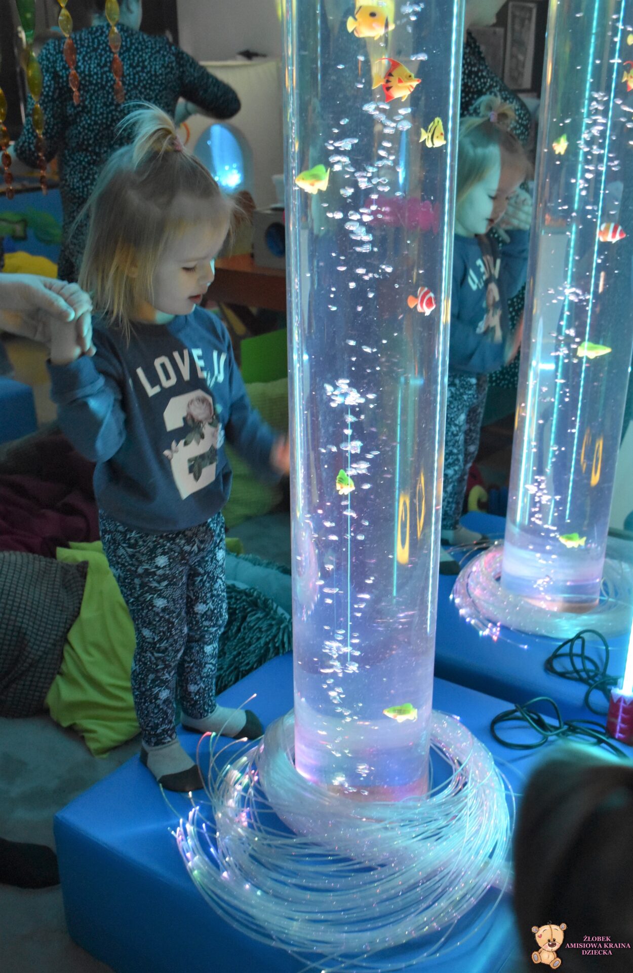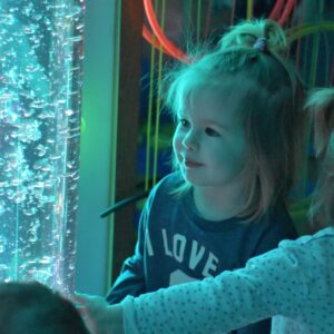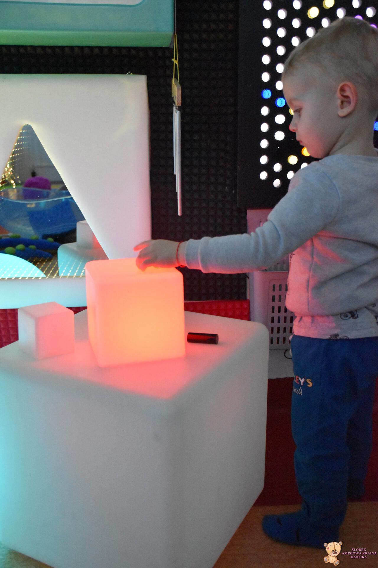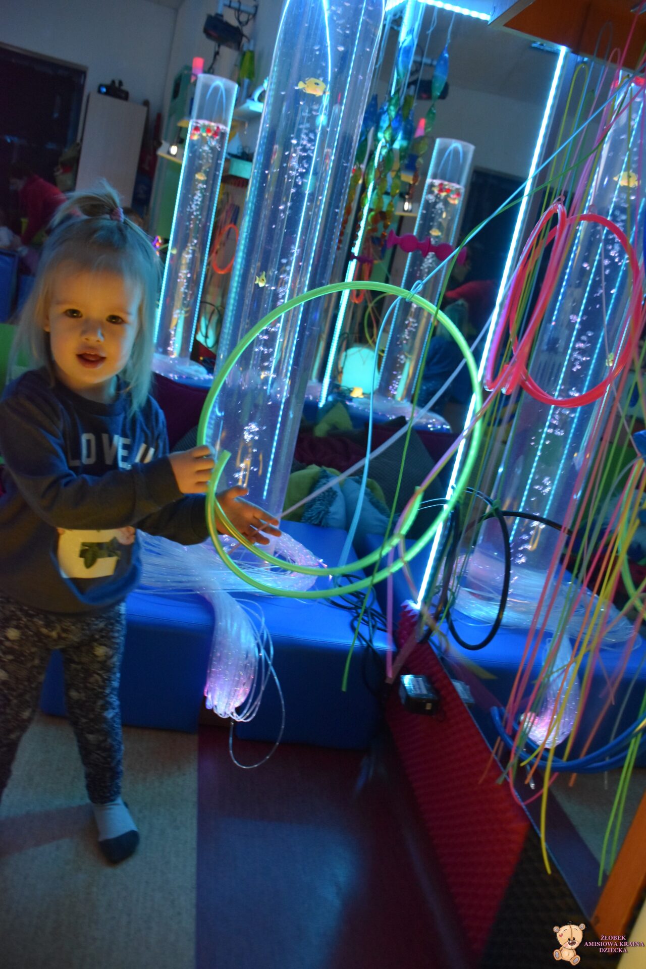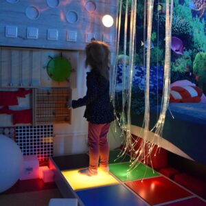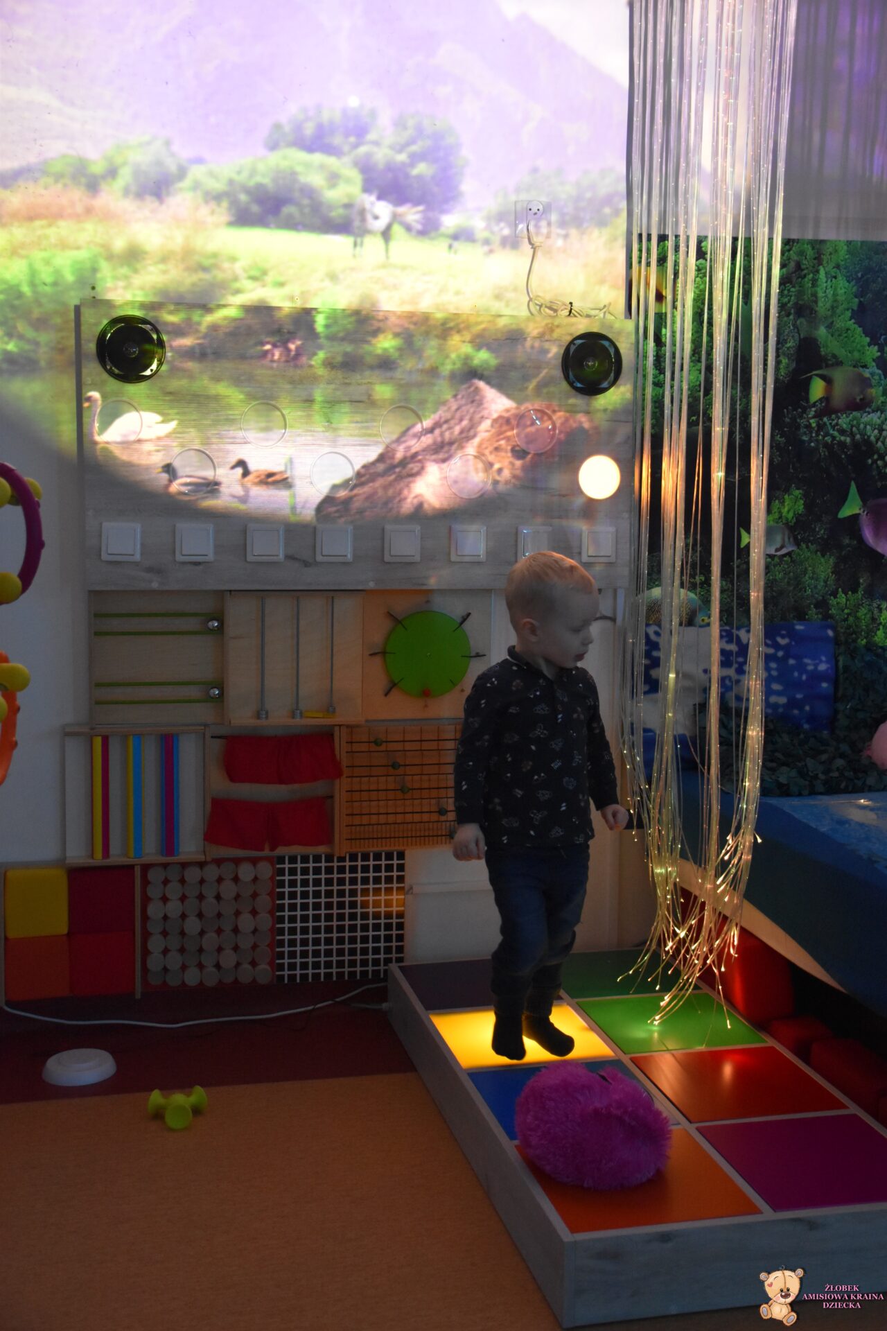 Sala Doświadczania Świata jest bezpieczna dla dzieci, wyposażona jest m.in w basen z kuleczkami, łóżko wodne, projektory świetlne, świecące i kolorowe kule, panele lustrzane, światłowody, pomoce sensoryczne w tym dotykowe, węchowe, wzrokowe i stymulacji słuchowej. To była wspaniała wycieczka ! 🙂