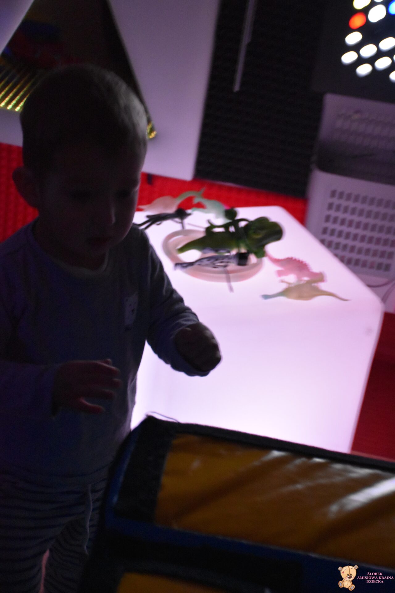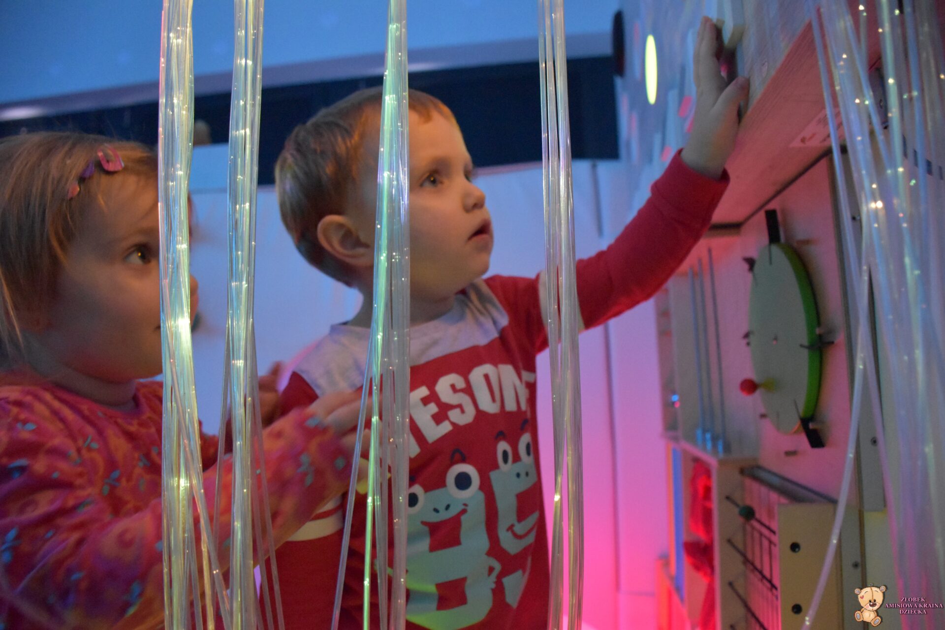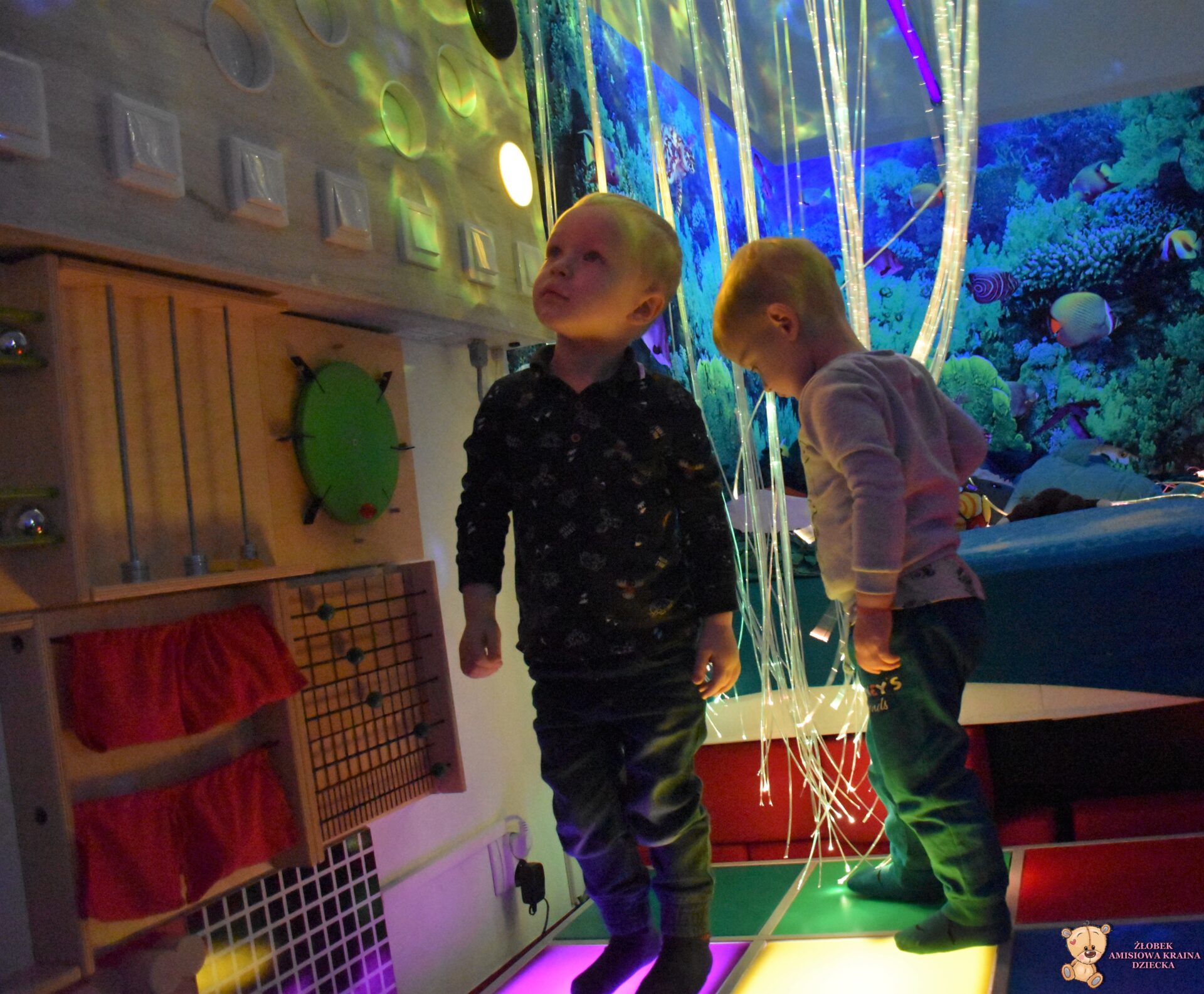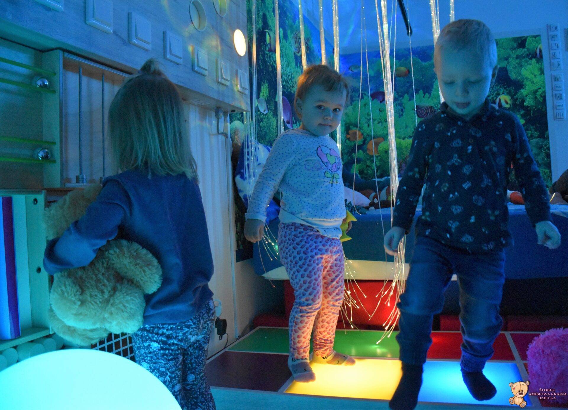 W dniu dzisiejszym Amisiaki wybrały się na bardzo ciekawą wycieczkę, do siedziby Fundacji AMI. Dzieci odwiedziły magiczną i ciekawą Salę Doświadczania Świata. Na tej sali, mogą rozwijać swoje zmysły, stymulując je za pomocą dźwięków, świateł, różnych faktur i przedmiotów.