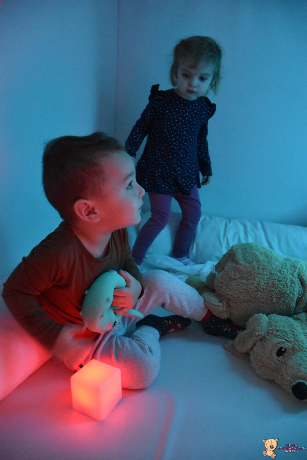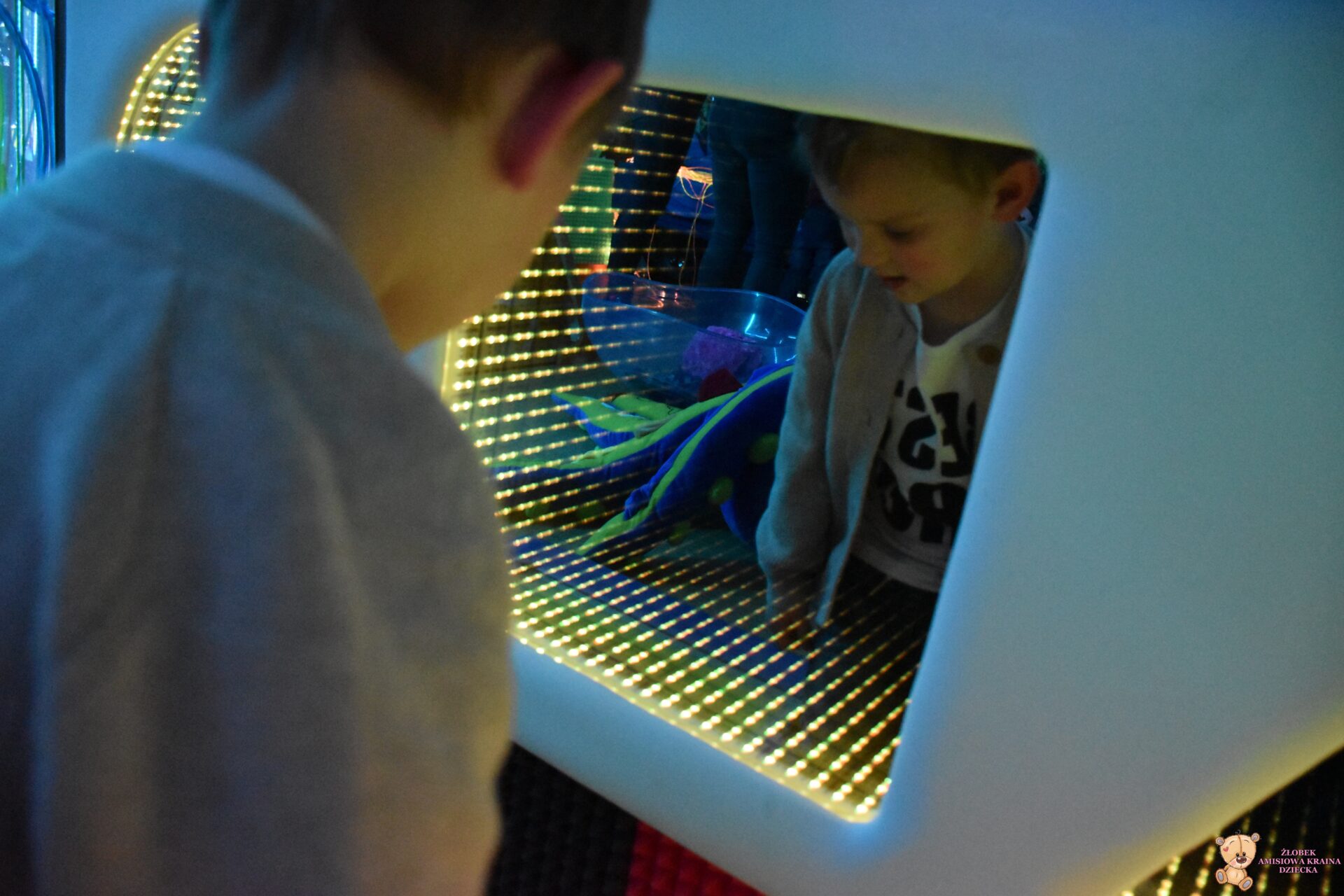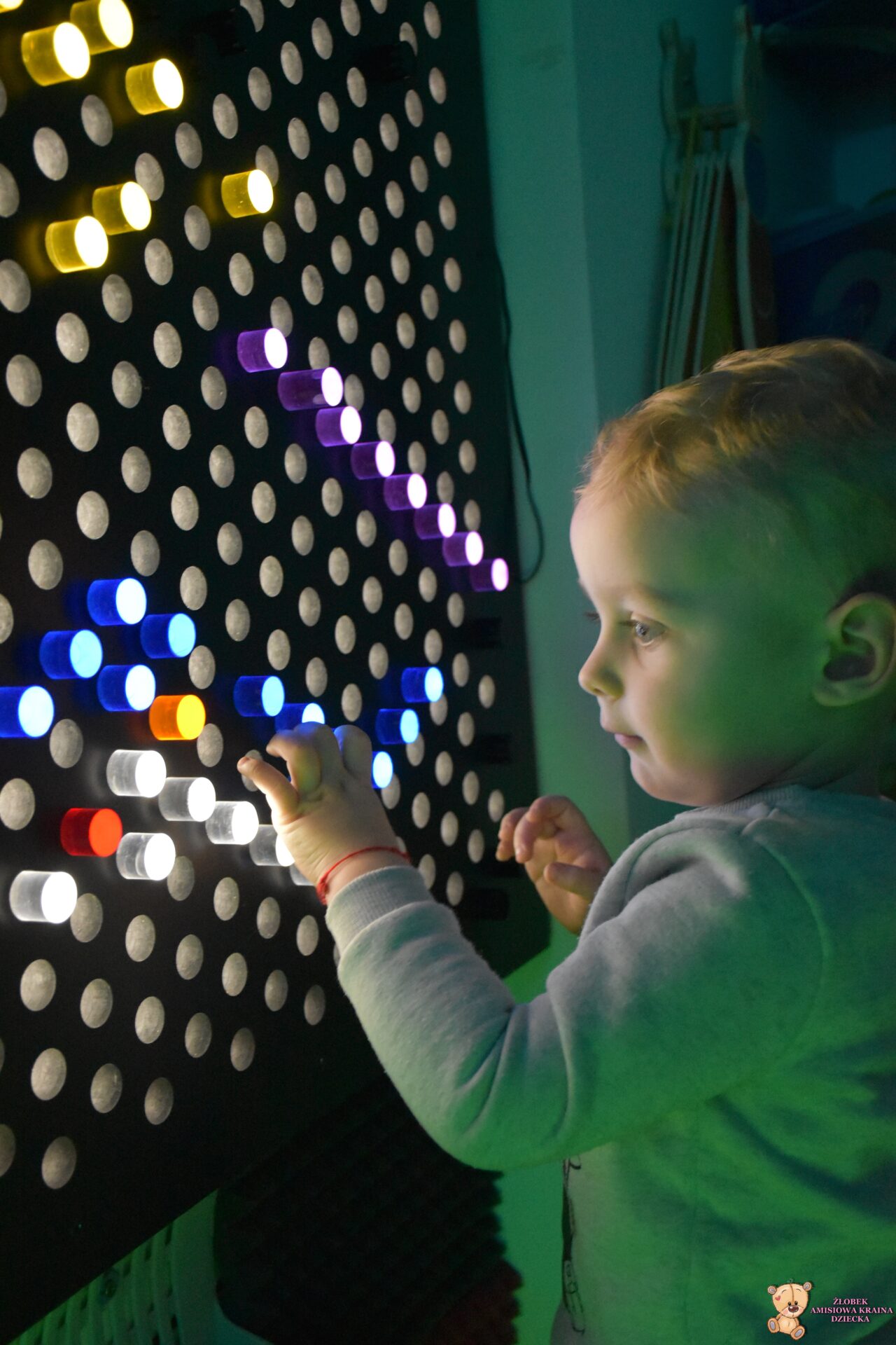 W dniu dzisiejszym Amisiaki wybrały się na bardzo ciekawą wycieczkę, do siedziby Fundacji AMI. Dzieci odwiedziły magiczną i ciekawą Salę Doświadczania Świata. Na tej sali, mogą rozwijać swoje zmysły, stymulując je za pomocą dźwięków, świateł, różnych faktur i przedmiotów.
