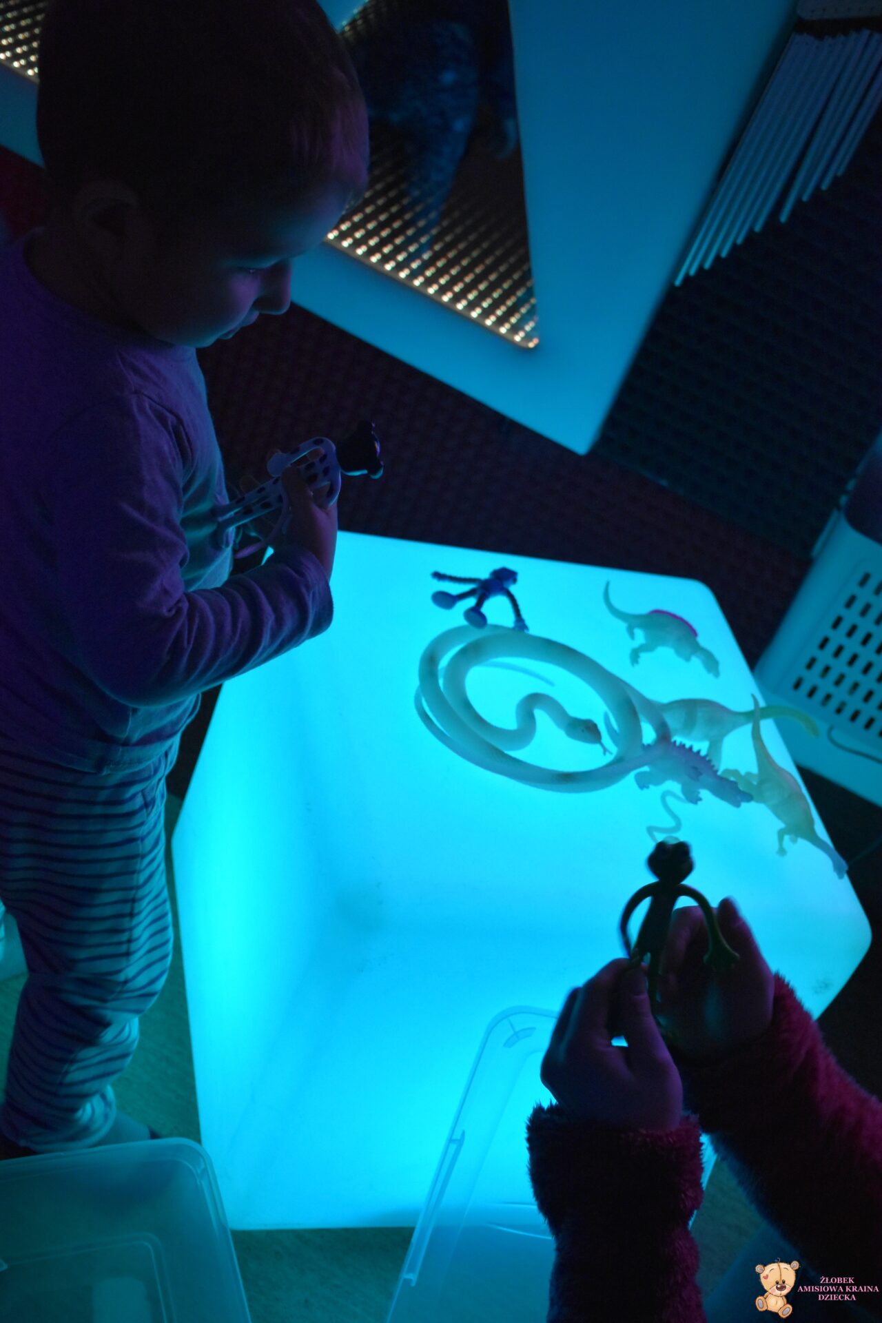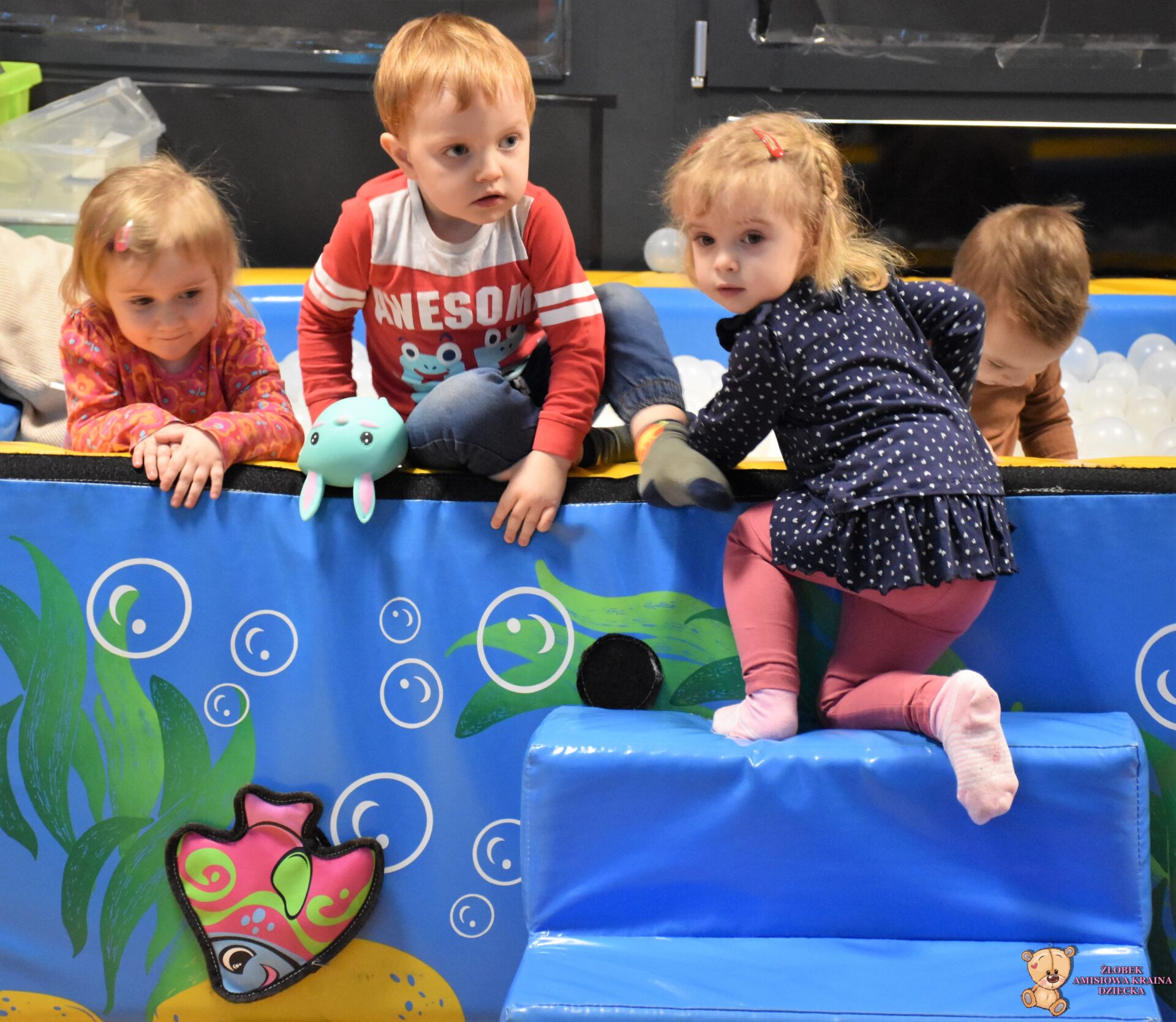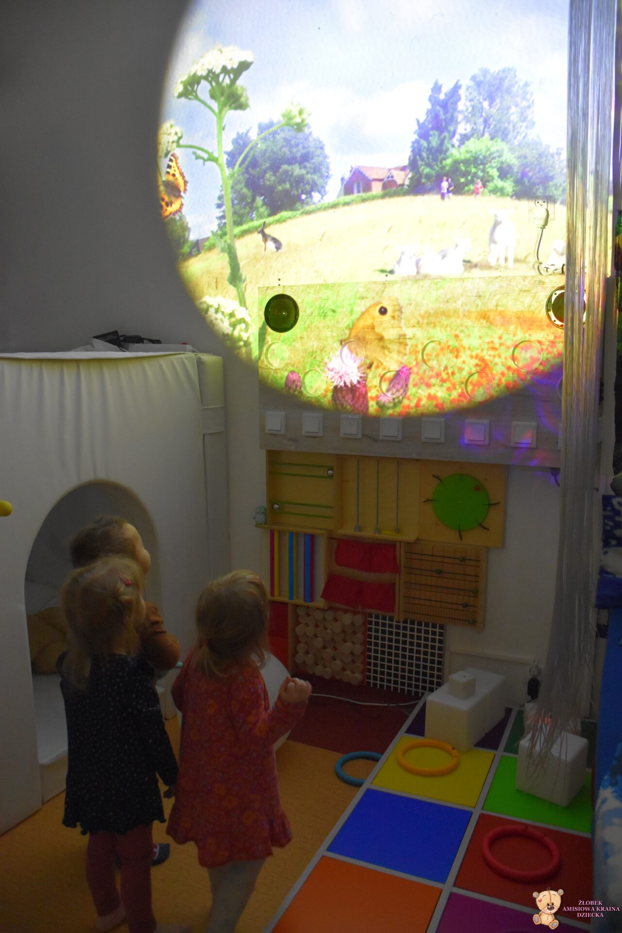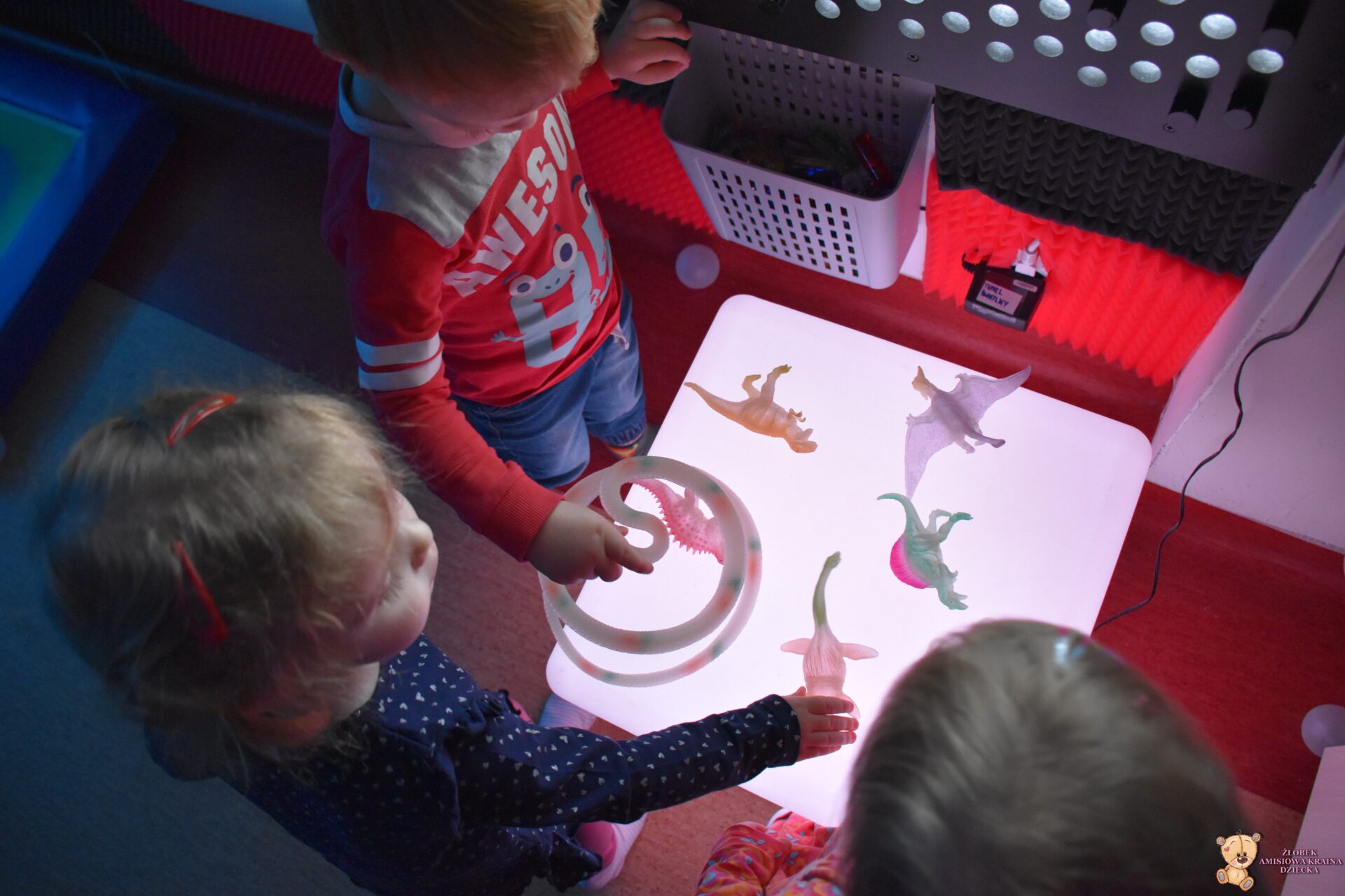 W dniu dzisiejszym Amisiaki wybrały się na bardzo ciekawą wycieczkę, do siedziby Fundacji AMI. Dzieci odwiedziły magiczną i ciekawą Salę Doświadczania Świata. Na tej sali, mogą rozwijać swoje zmysły, stymulując je za pomocą dźwięków, świateł, różnych faktur i przedmiotów.