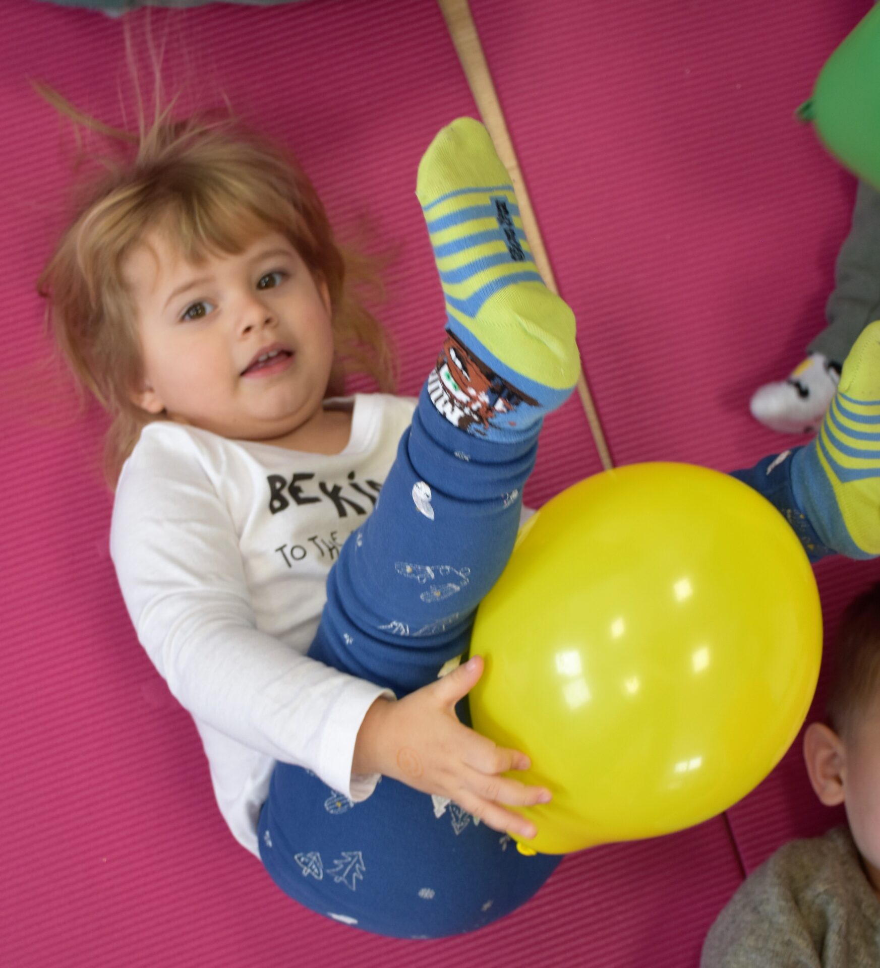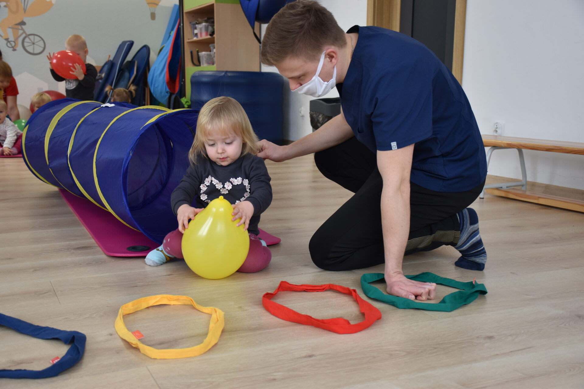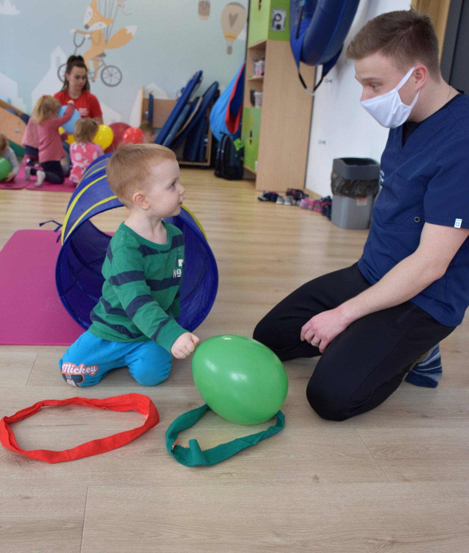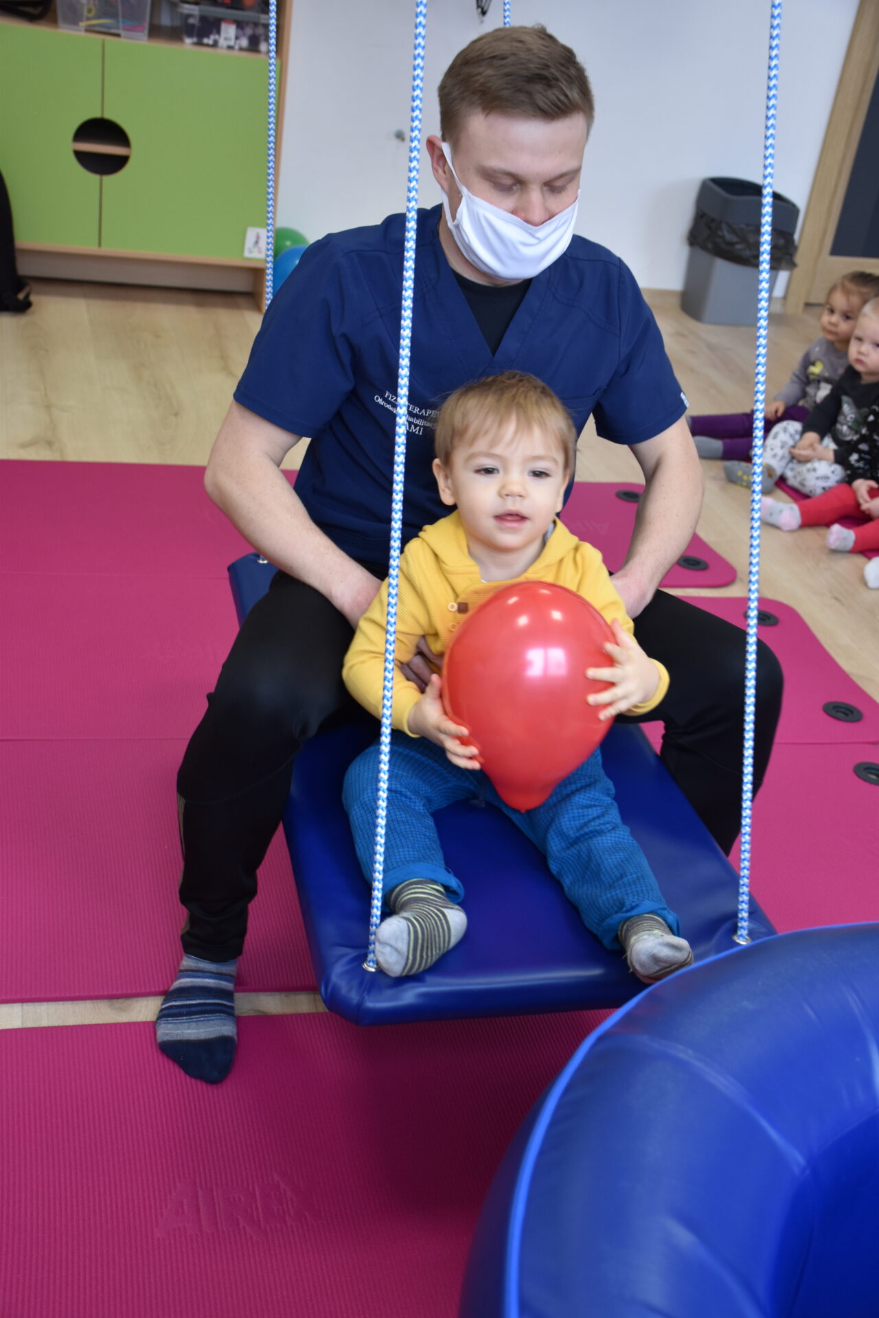 Dziś kolorowe, uwielbiane przez wszystkich balony 🙂 rozwijaliśmy dziś naszą koordynację poprzez różne zabawy ruchowe z balonami. Wykorzystaliśmy je również do rozróżniania kolorów. Każde z dzieciaków musiało się przecisnąć przez tunel razem ze swoim kolorowym towarzyszem. Było też trochę huku, bo niektóre balony pękały! BUM! Ale nie straszne nam już takie hałasy 🙂 Na koniec wujek przygotował najtrudniejsze zadanie. Próbowaliśmy wrzucić balon do beczki podczas huśtania na dużej huśtawce 🙂 to naprawdę nie było łatwe, ale bardzo przypadło do gustu dzieciom. Wujek obiecał, że powtórzymy tę zabawę za jakiś czas i zobaczymy jak nam wtedy pójdzie 🙂