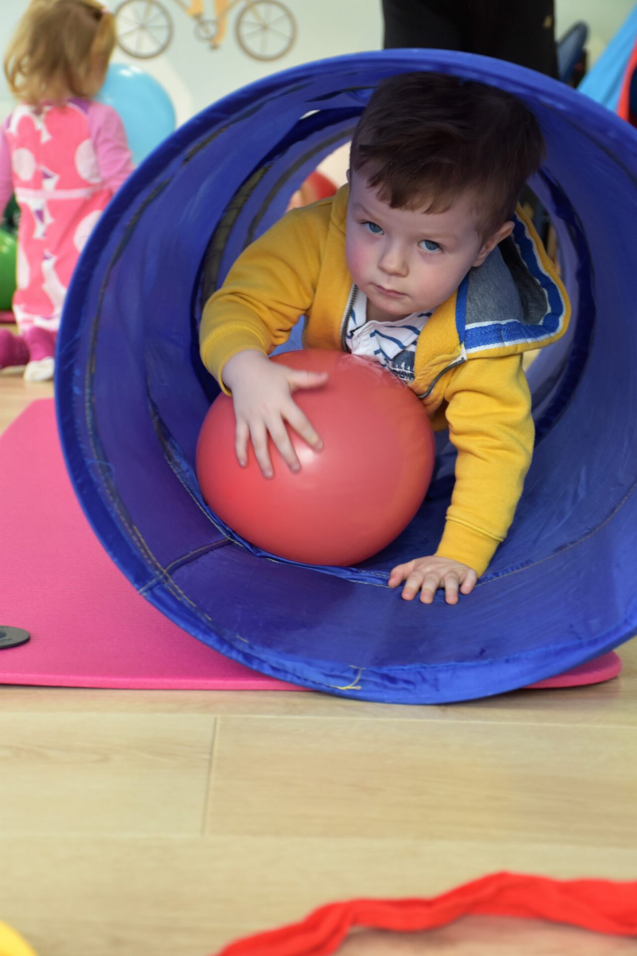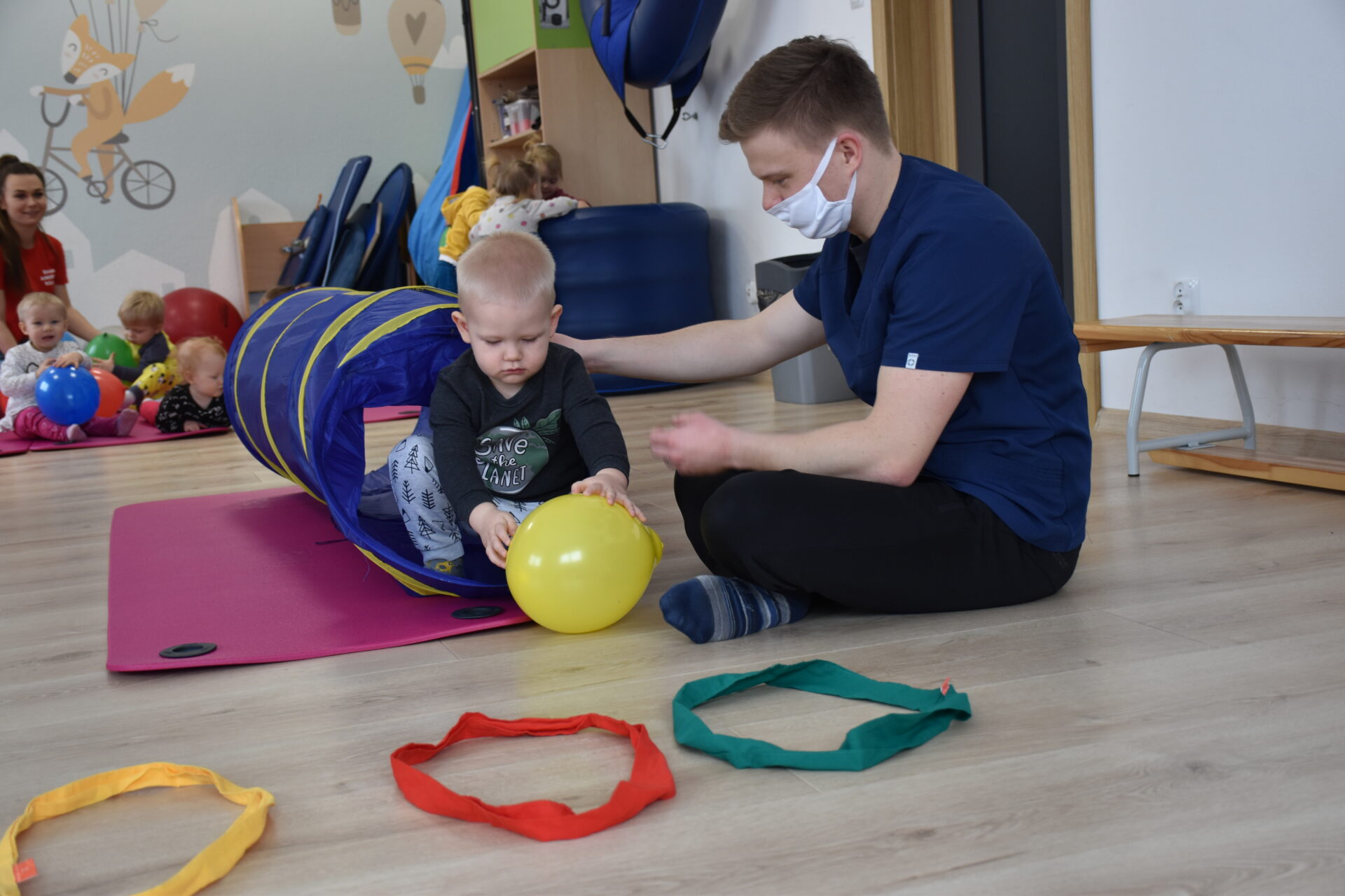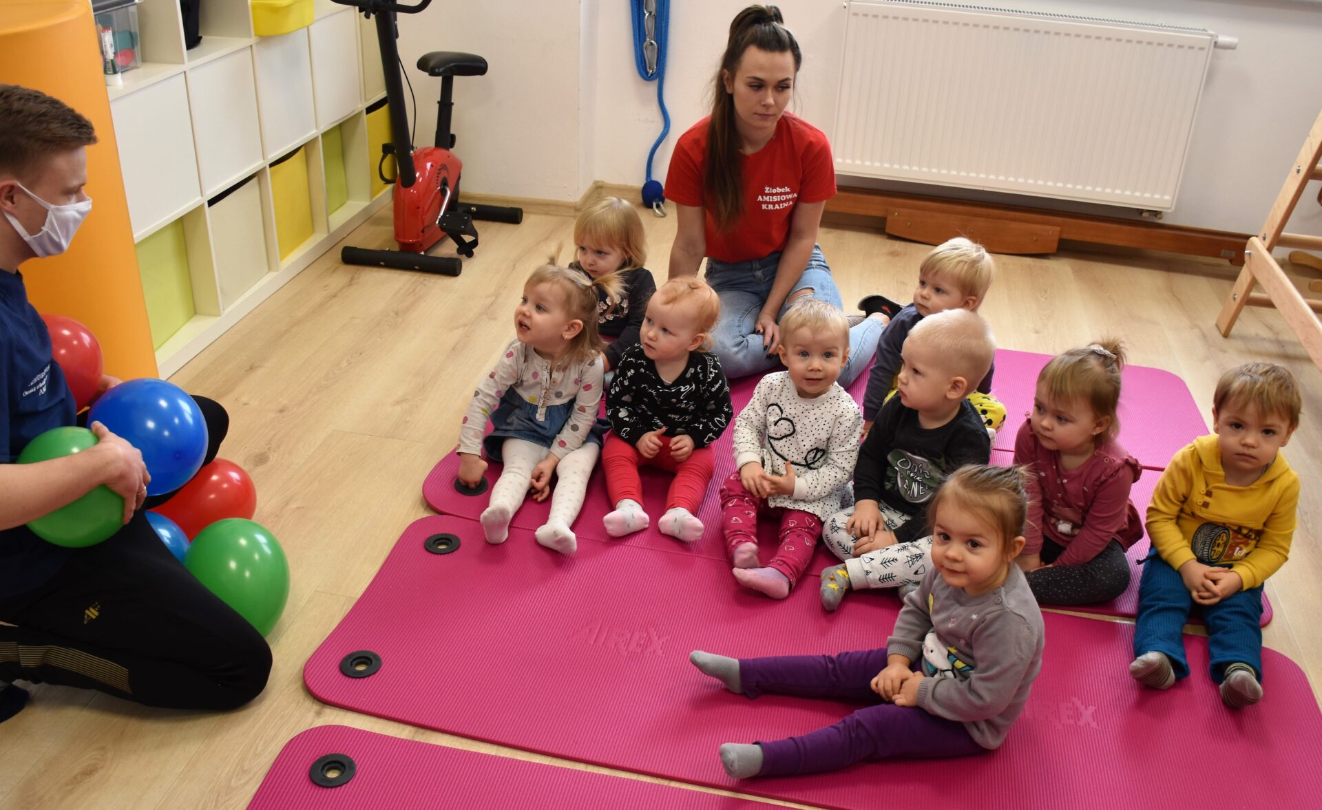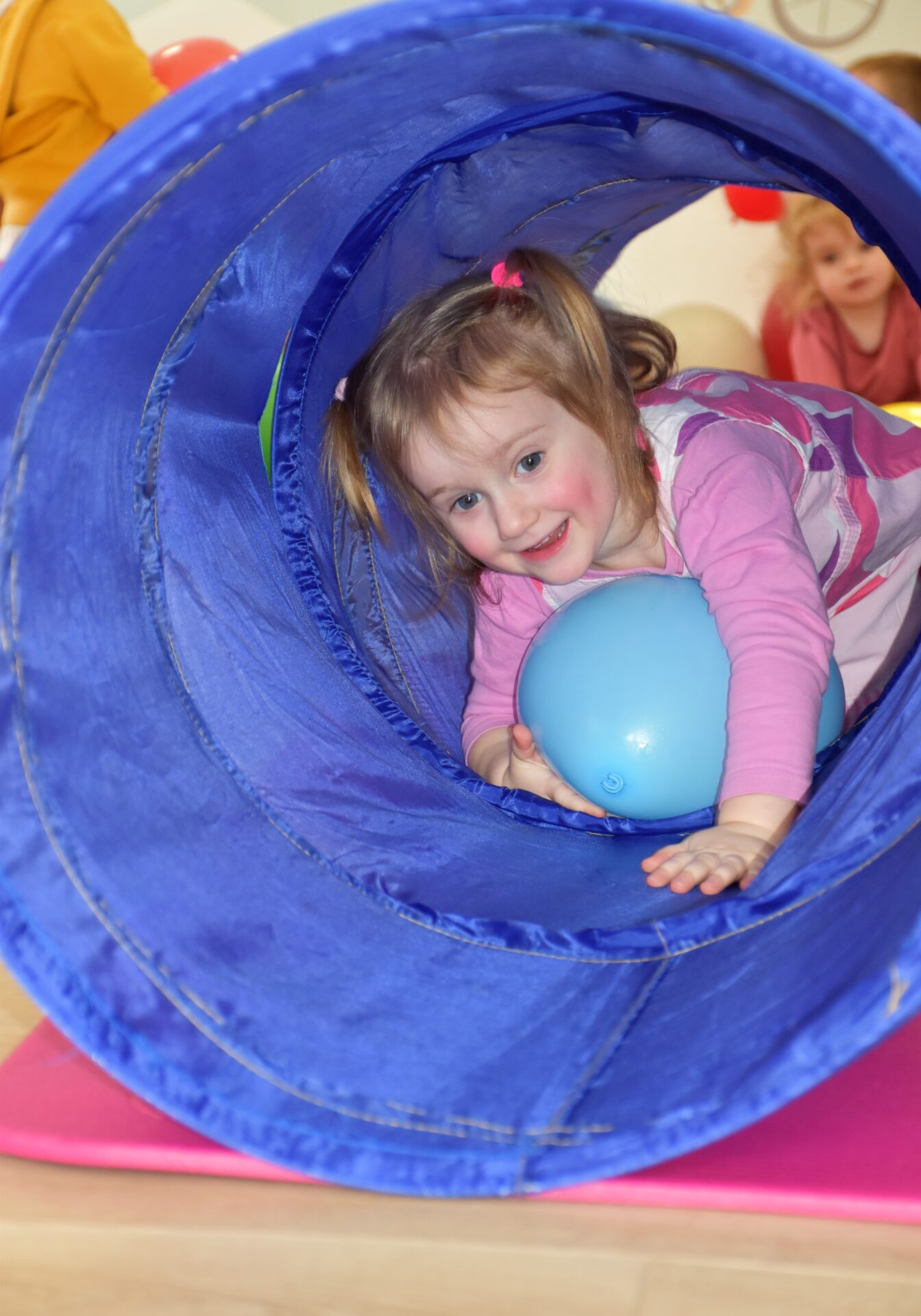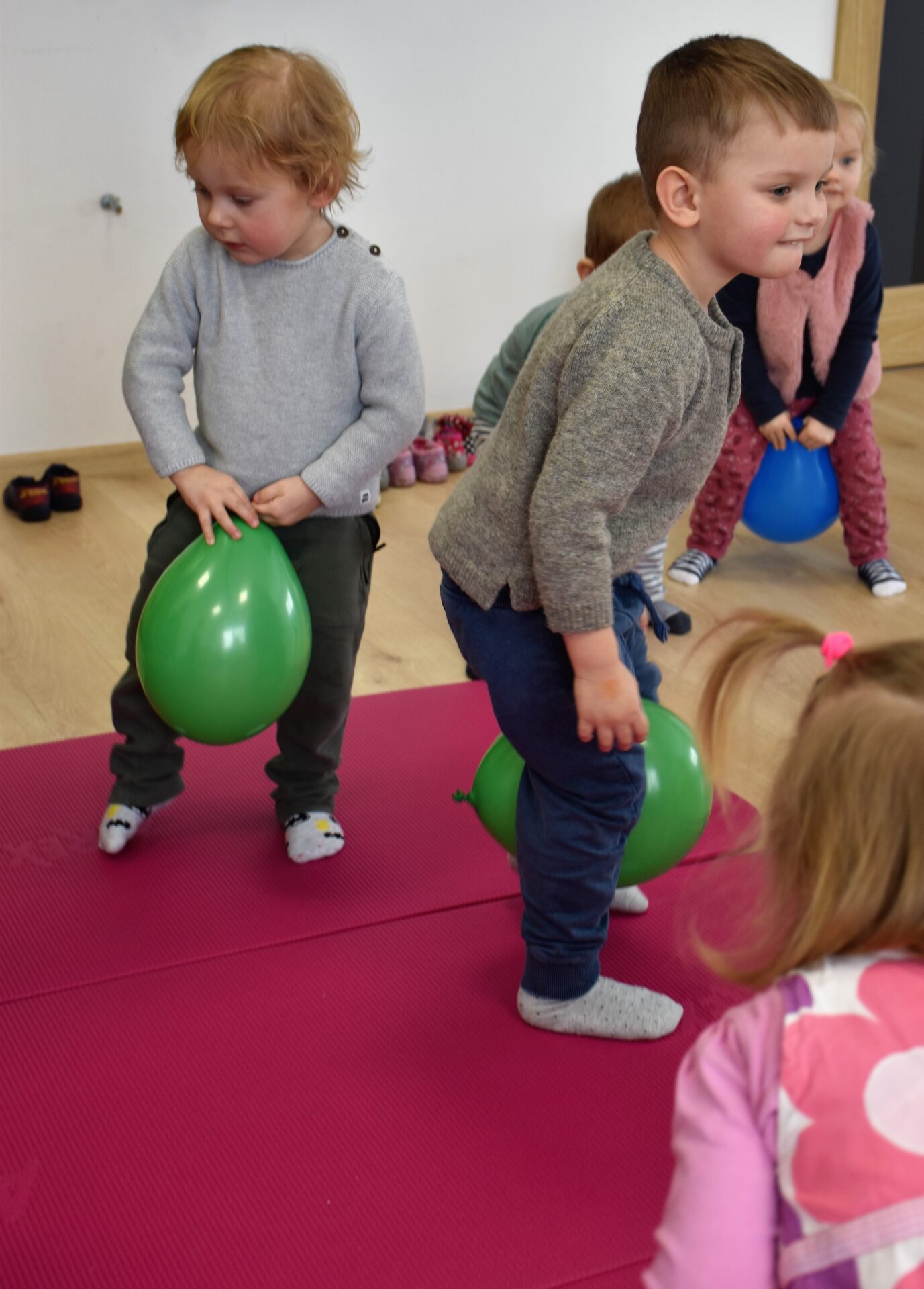 Dziś kolorowe, uwielbiane przez wszystkich balony 🙂 rozwijaliśmy dziś naszą koordynację poprzez różne zabawy ruchowe z balonami. Wykorzystaliśmy je również do rozróżniania kolorów. Każde z dzieciaków musiało się przecisnąć przez tunel razem ze swoim kolorowym towarzyszem. Było też trochę huku, bo niektóre balony pękały! BUM! Ale nie straszne nam już takie hałasy 🙂 Na koniec wujek przygotował najtrudniejsze zadanie. Próbowaliśmy wrzucić balon do beczki podczas huśtania na dużej huśtawce 🙂 to naprawdę nie było łatwe, ale bardzo przypadło do gustu dzieciom. Wujek obiecał, że powtórzymy tę zabawę za jakiś czas i zobaczymy jak nam wtedy pójdzie 🙂