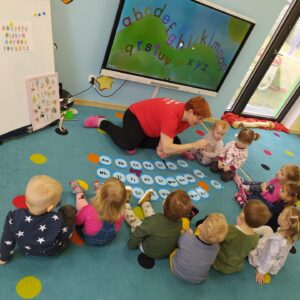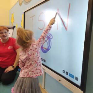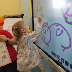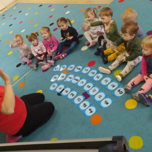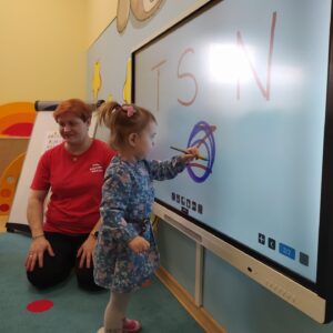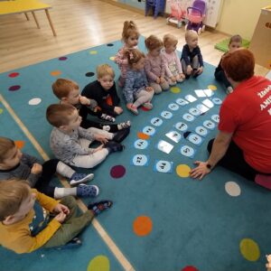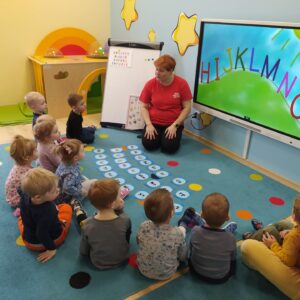 Dzisiaj na zajęciach z językiem angielskim uczyliśmy się alfabetu w języku angielskim. Najpierw ciocia powiedziała nam jak się wymawia każdą z literek a następnie zaśpiewała piosenkę, która szybko wpadła w ucho naszym Amisiakom. Na koniec każda grupa miała za zadanie odnaleźć na tablicy odpowiednią literkę i zakreślić ją w koło. Brawa dla naszych maluchów.