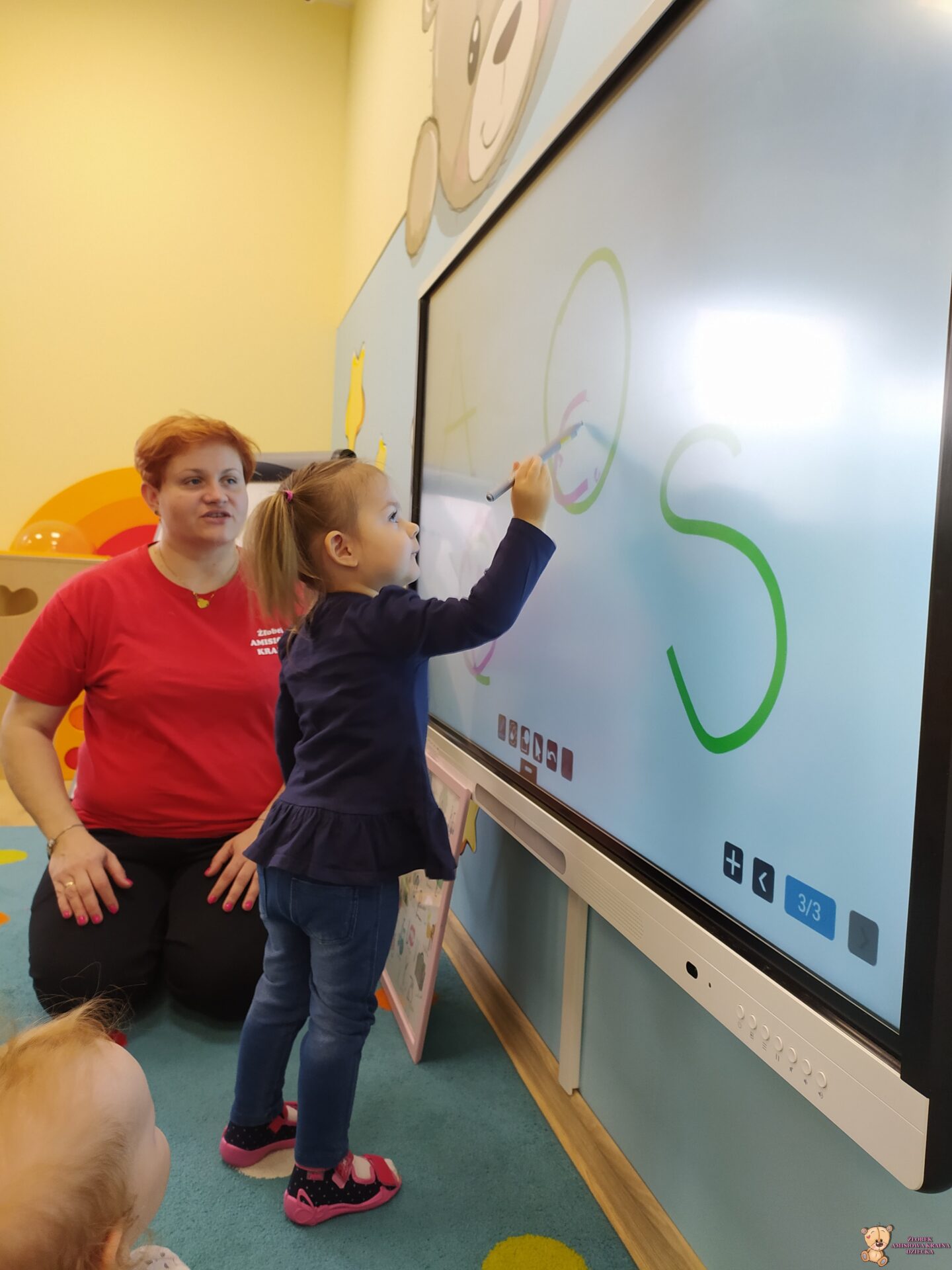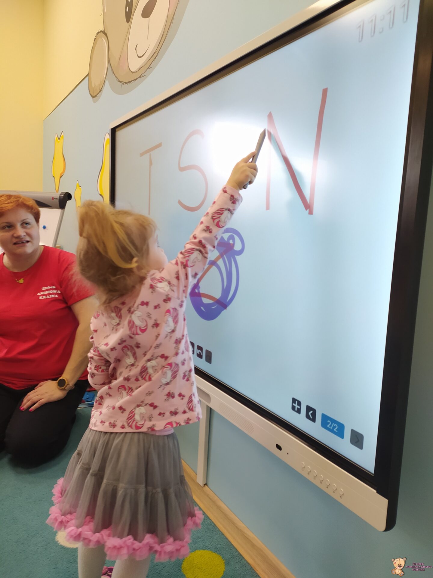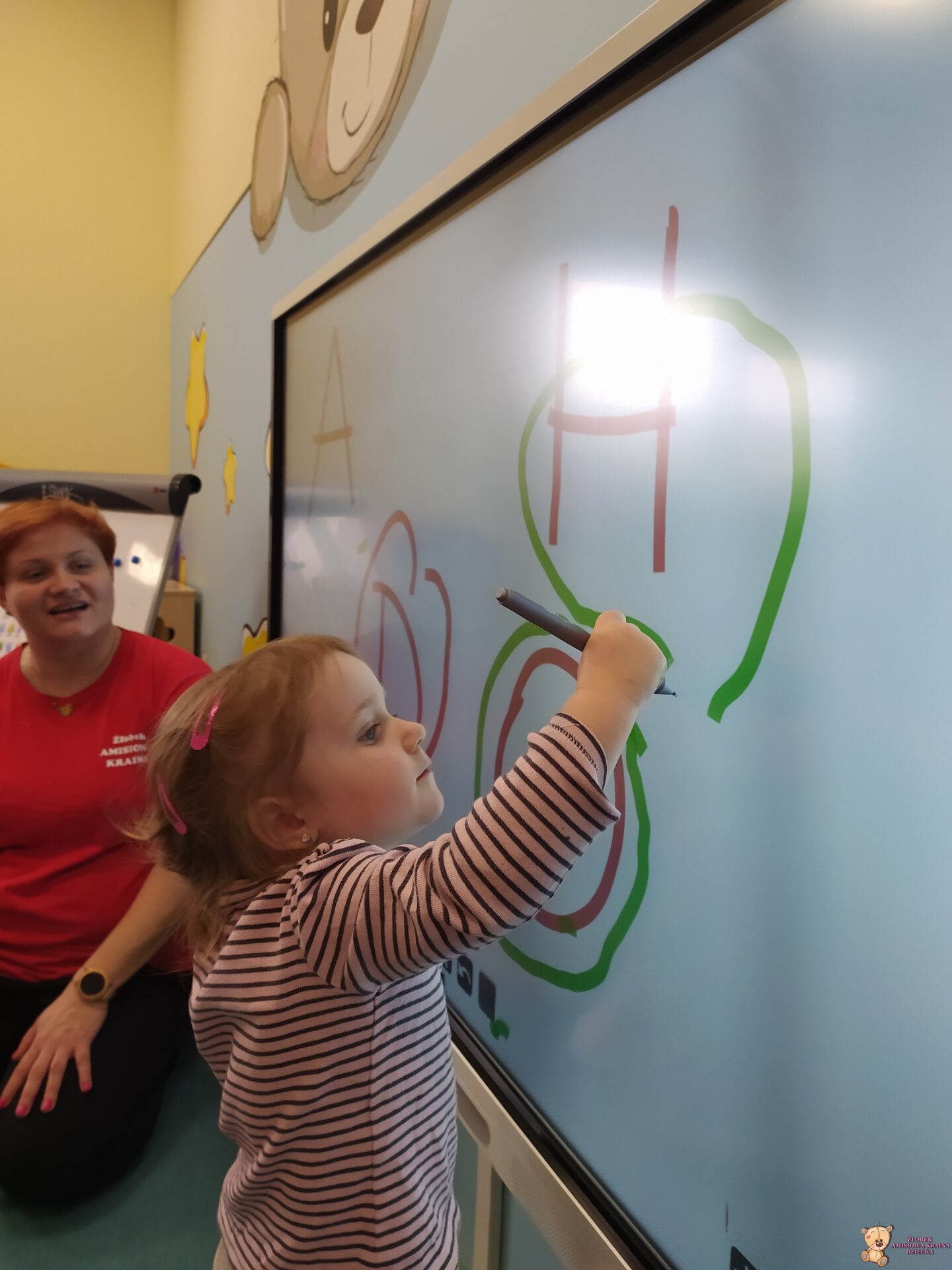 Dzisiaj na zajęciach z językiem angielskim uczyliśmy się alfabetu w języku angielskim. Najpierw ciocia powiedziała nam jak się wymawia każdą z literek a następnie zaśpiewała piosenkę, która szybko wpadła w ucho naszym Amisiakom. Na koniec każda grupa miała za zadanie odnaleźć na tablicy odpowiednią literkę i zakreślić ją w koło. Brawa dla naszych maluchów.