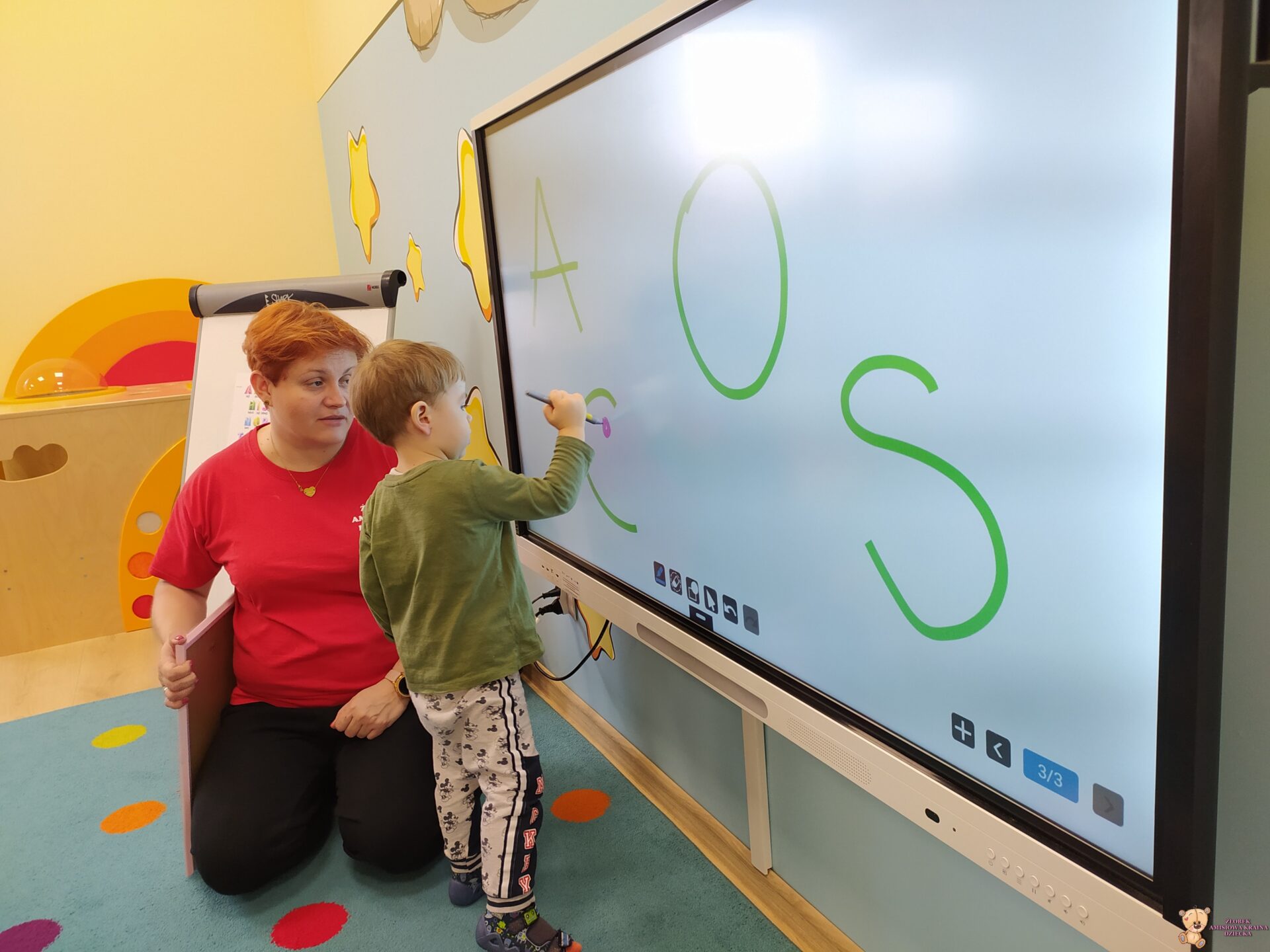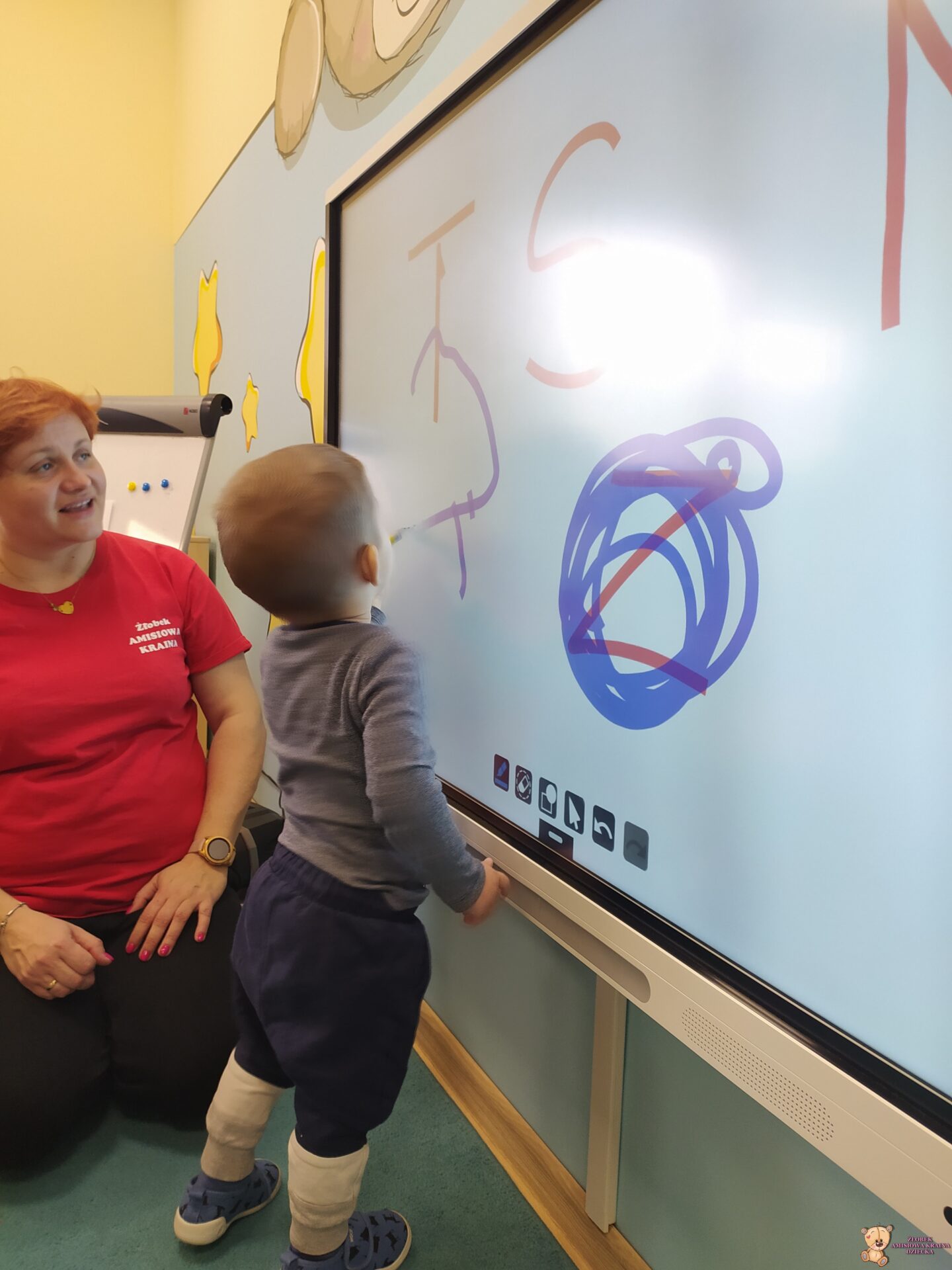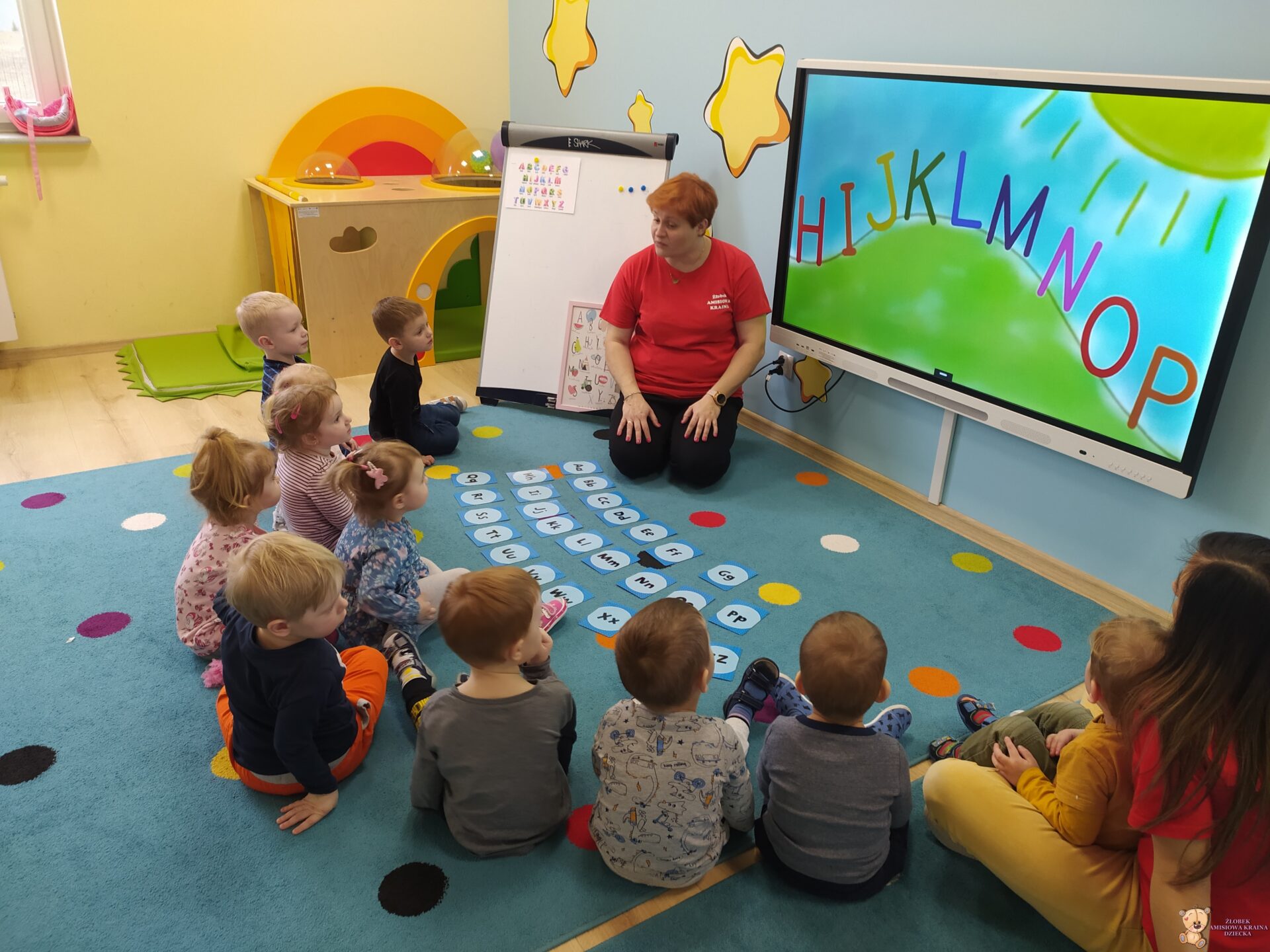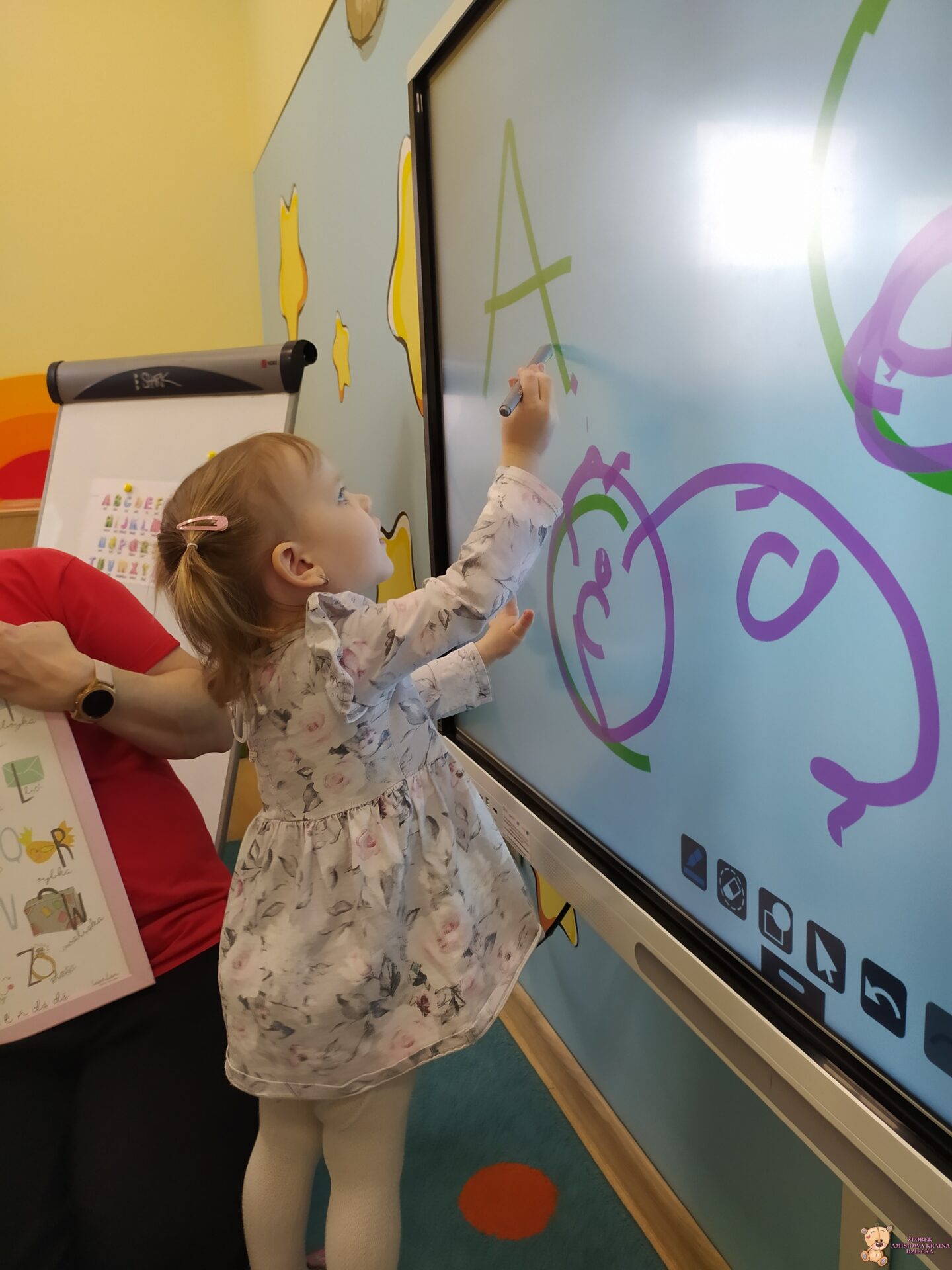 Dzisiaj na zajęciach z językiem angielskim uczyliśmy się alfabetu w języku angielskim. Najpierw ciocia powiedziała nam jak się wymawia każdą z literek a następnie zaśpiewała piosenkę, która szybko wpadła w ucho naszym Amisiakom. Na koniec każda grupa miała za zadanie odnaleźć na tablicy odpowiednią literkę i zakreślić ją w koło. Brawa dla naszych maluchów.
