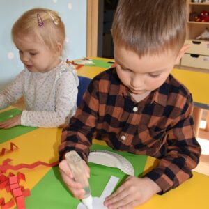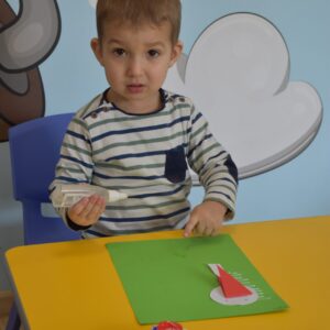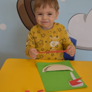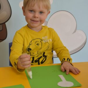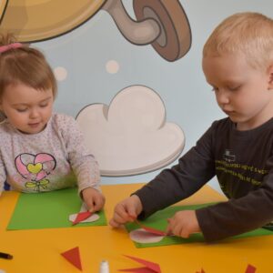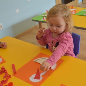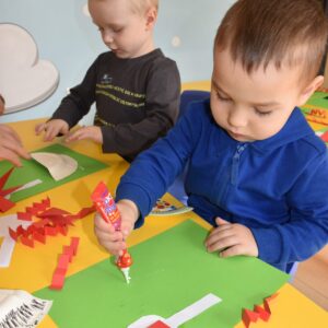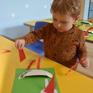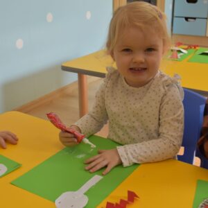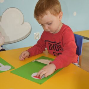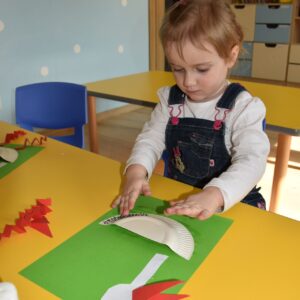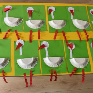Dzis na zajeciach metodą Montessori Amisiaki wykonaly pracę plastyczną zgodną z tematem tygodnia. Dzieci obejrzały film edukacyjny o wiośnie i zwierzątku ją zwiastującym-bocianie a nastepnie każdy dając wodzę swojej wyobraźni wykonal obrazek zwierzątka. Usprawnilo to motoryke małą dzieci a także dało wrażenia dotykowe- użyte zostały różne faktury.
