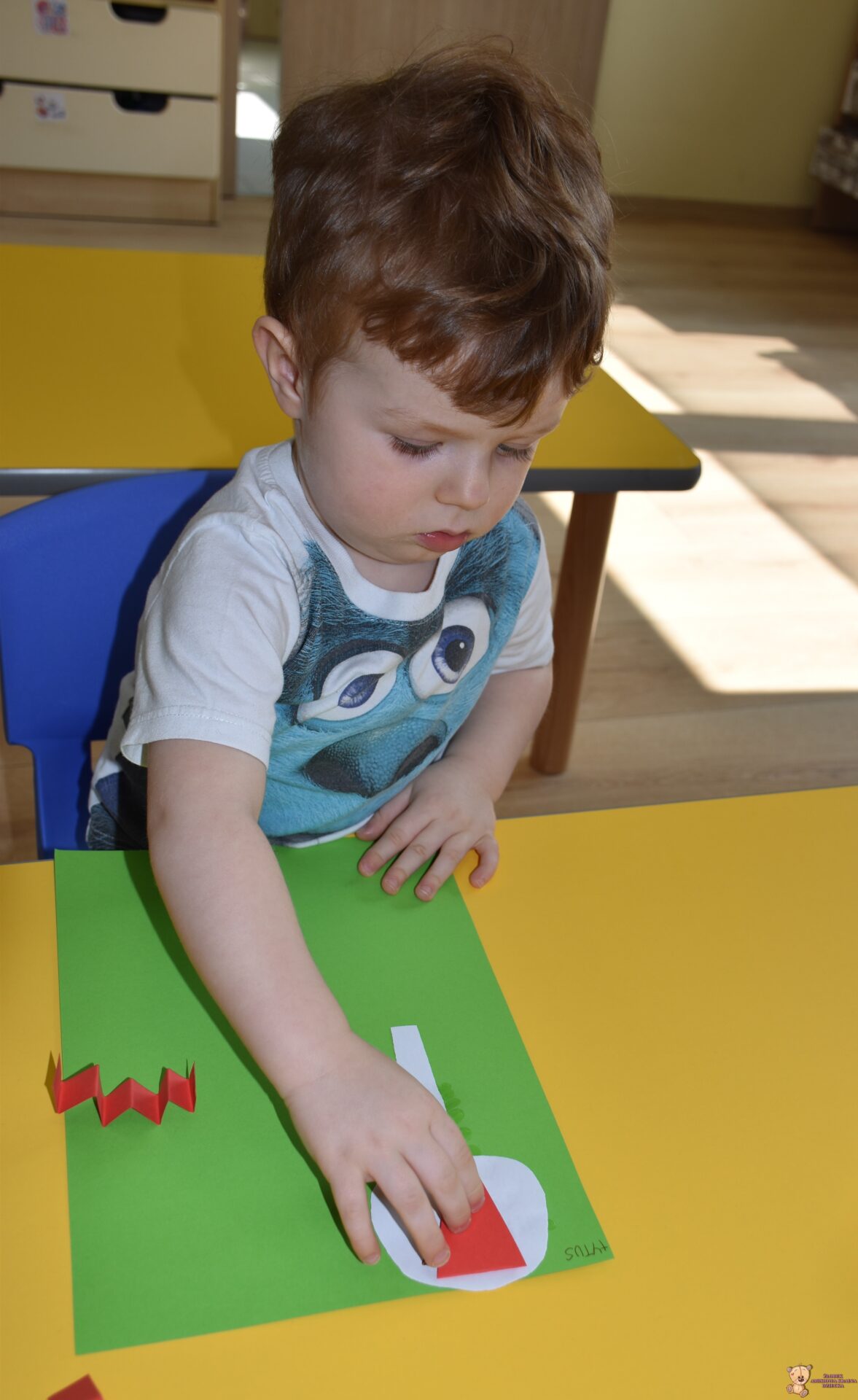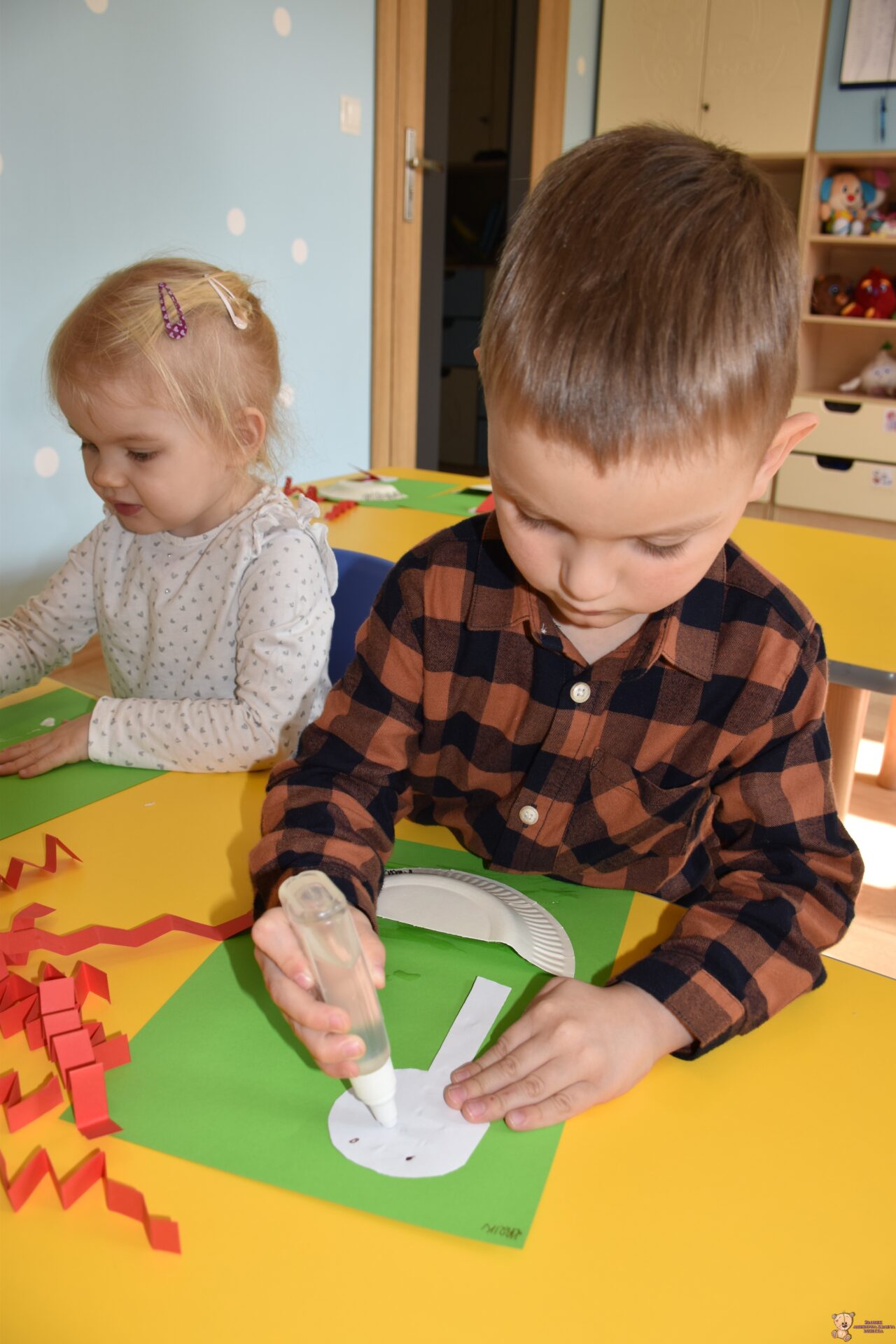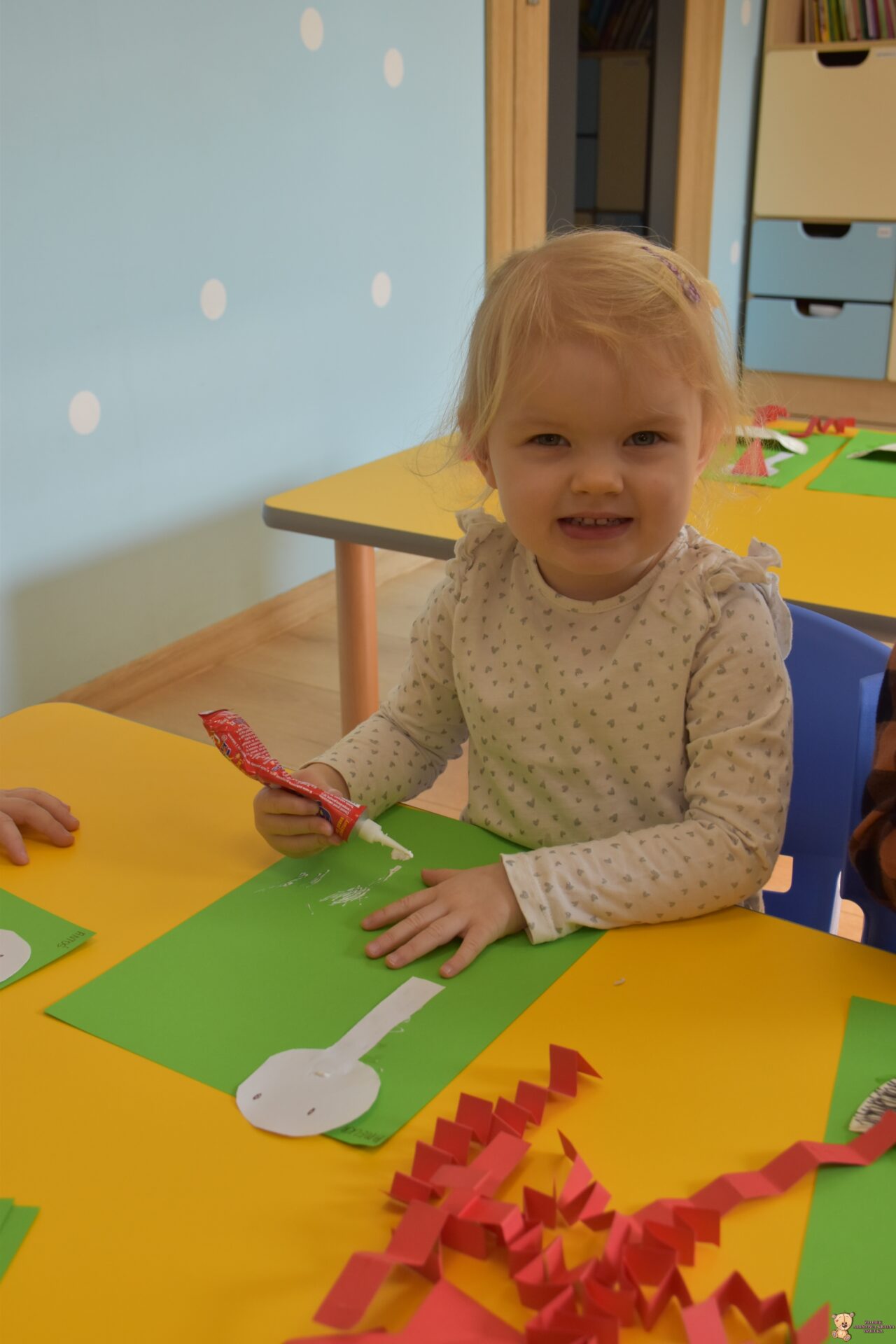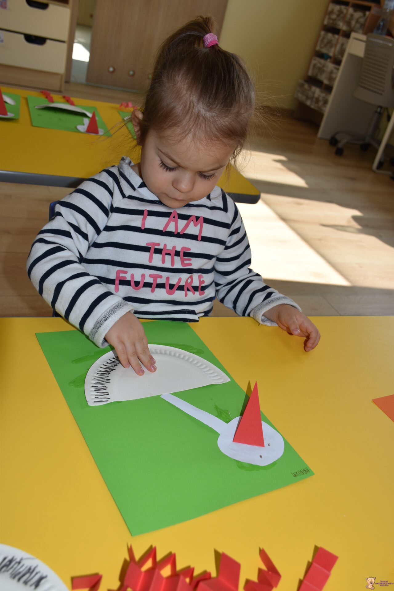 Dzis na zajeciach metodą Montessori Amisiaki wykonaly pracę plastyczną zgodną z tematem tygodnia. Dzieci obejrzały film edukacyjny o wiośnie i zwierzątku ją zwiastującym-bocianie a nastepnie każdy dając wodzę swojej wyobraźni wykonal obrazek zwierzątka. Usprawnilo to motoryke małą dzieci a także dało wrażenia dotykowe- użyte zostały różne faktury.