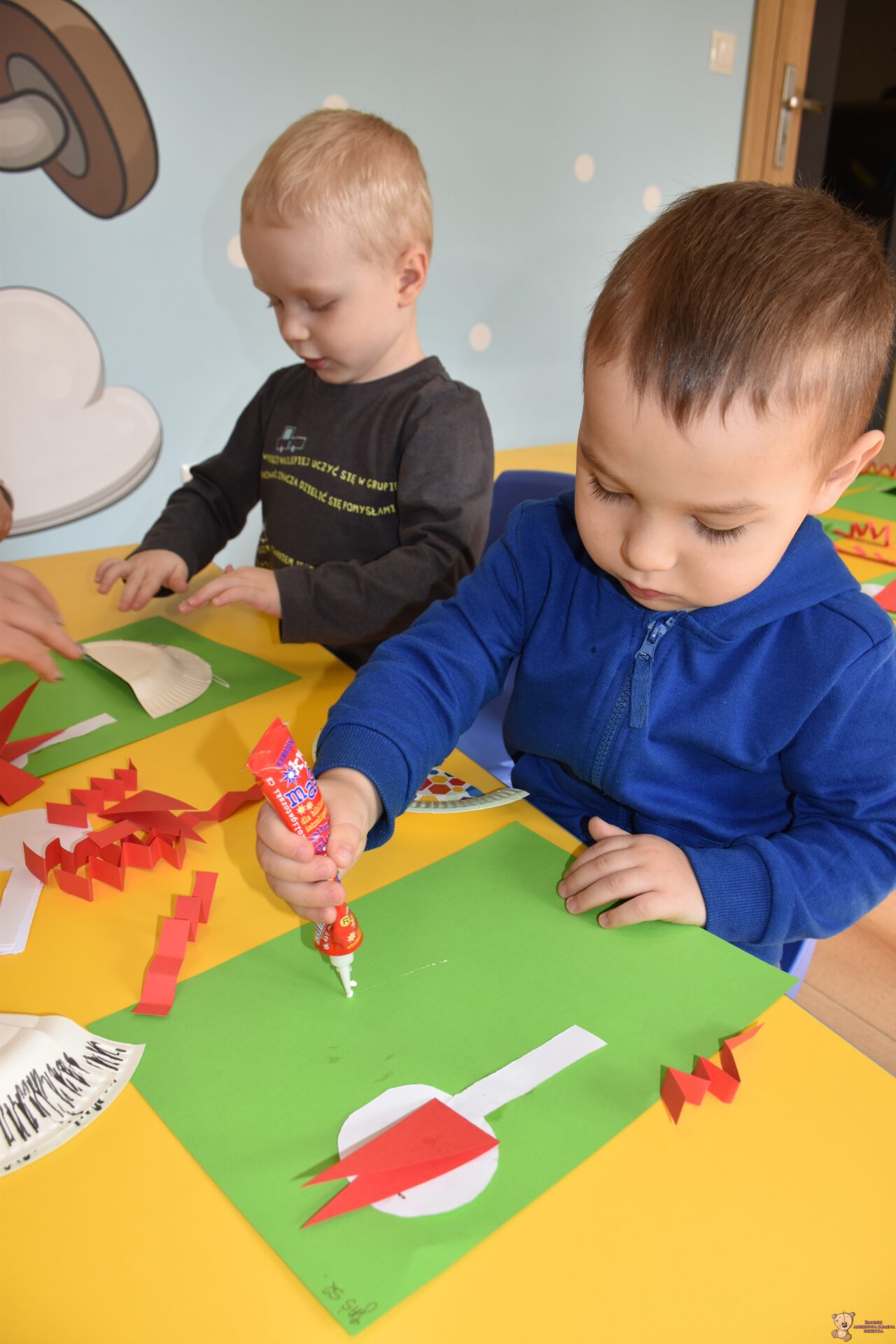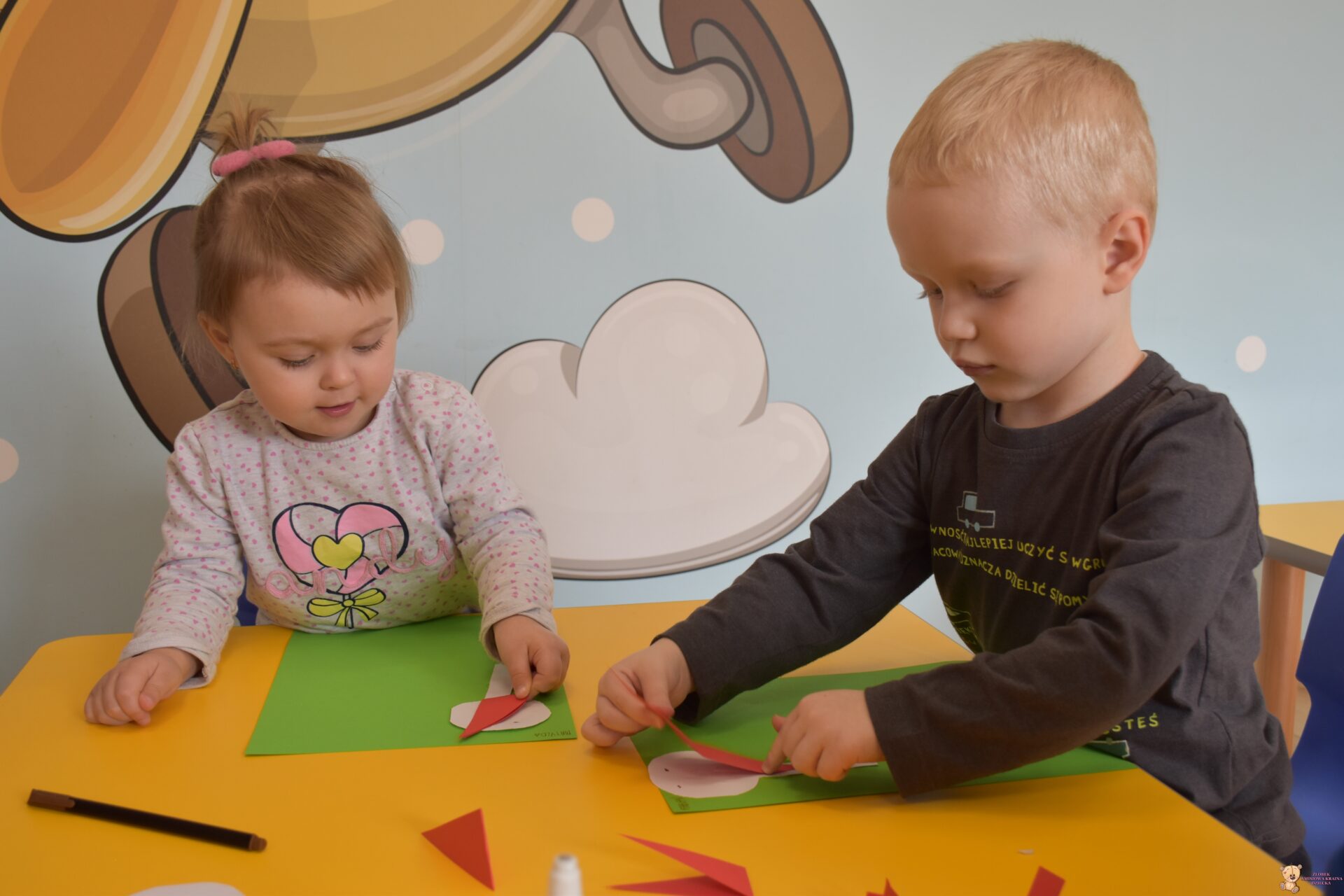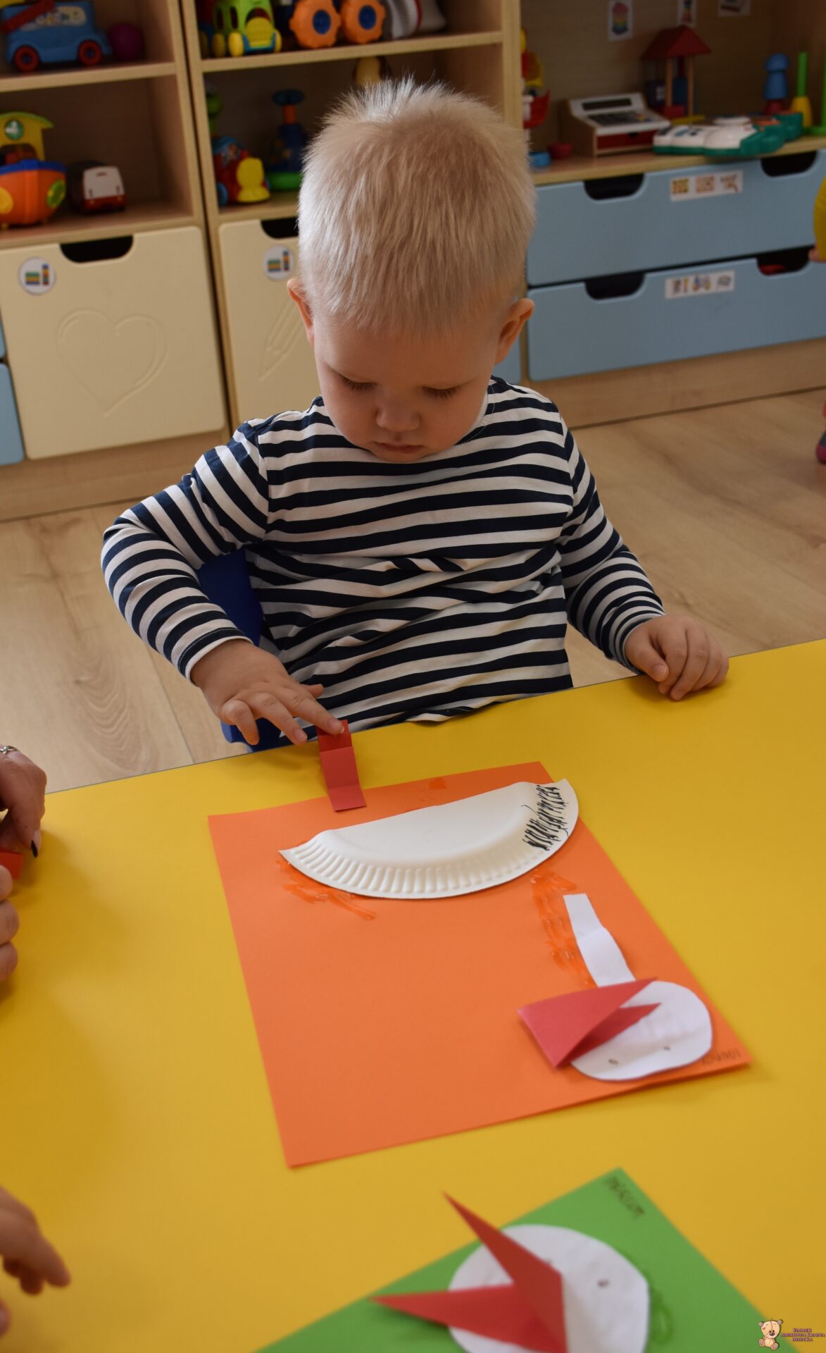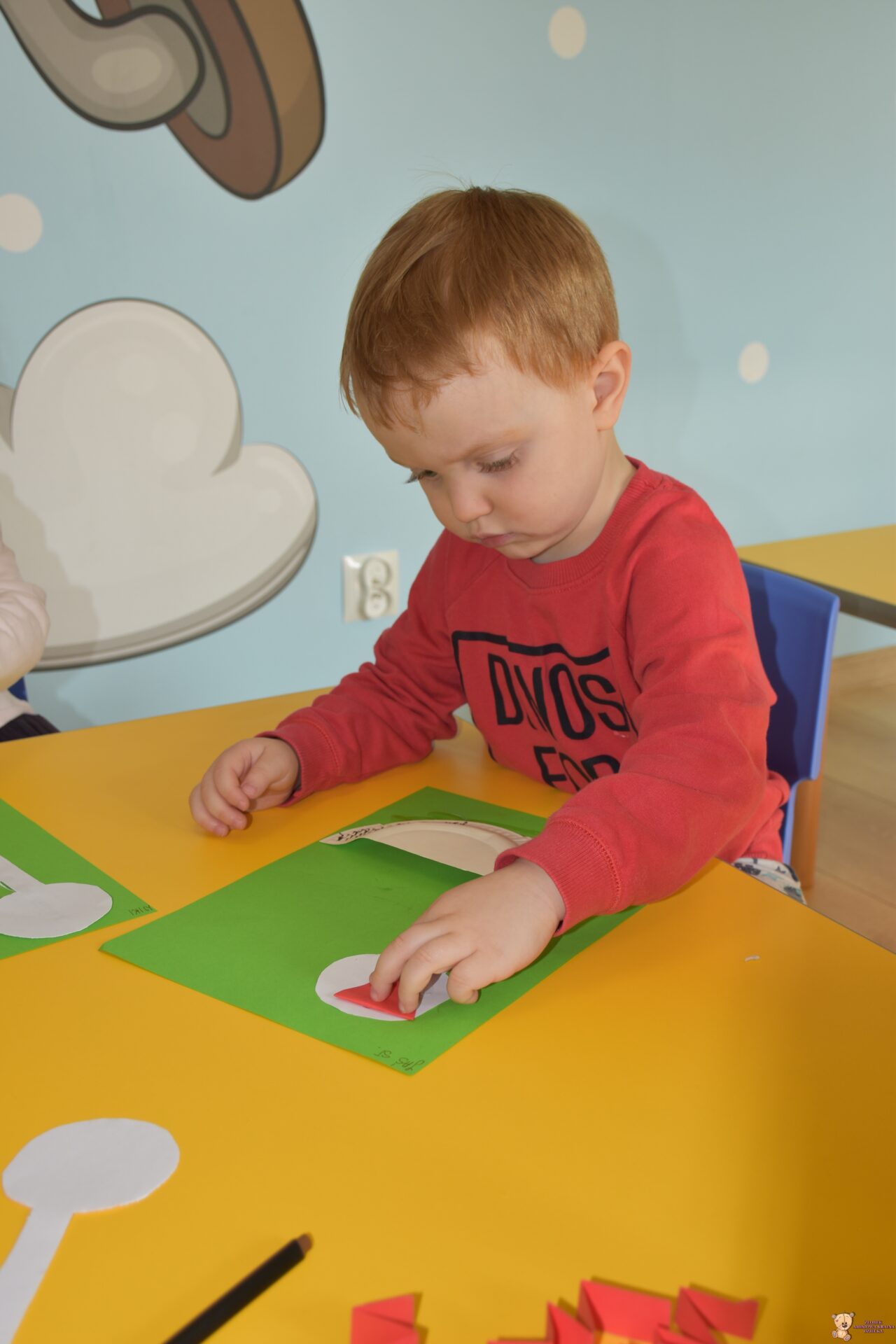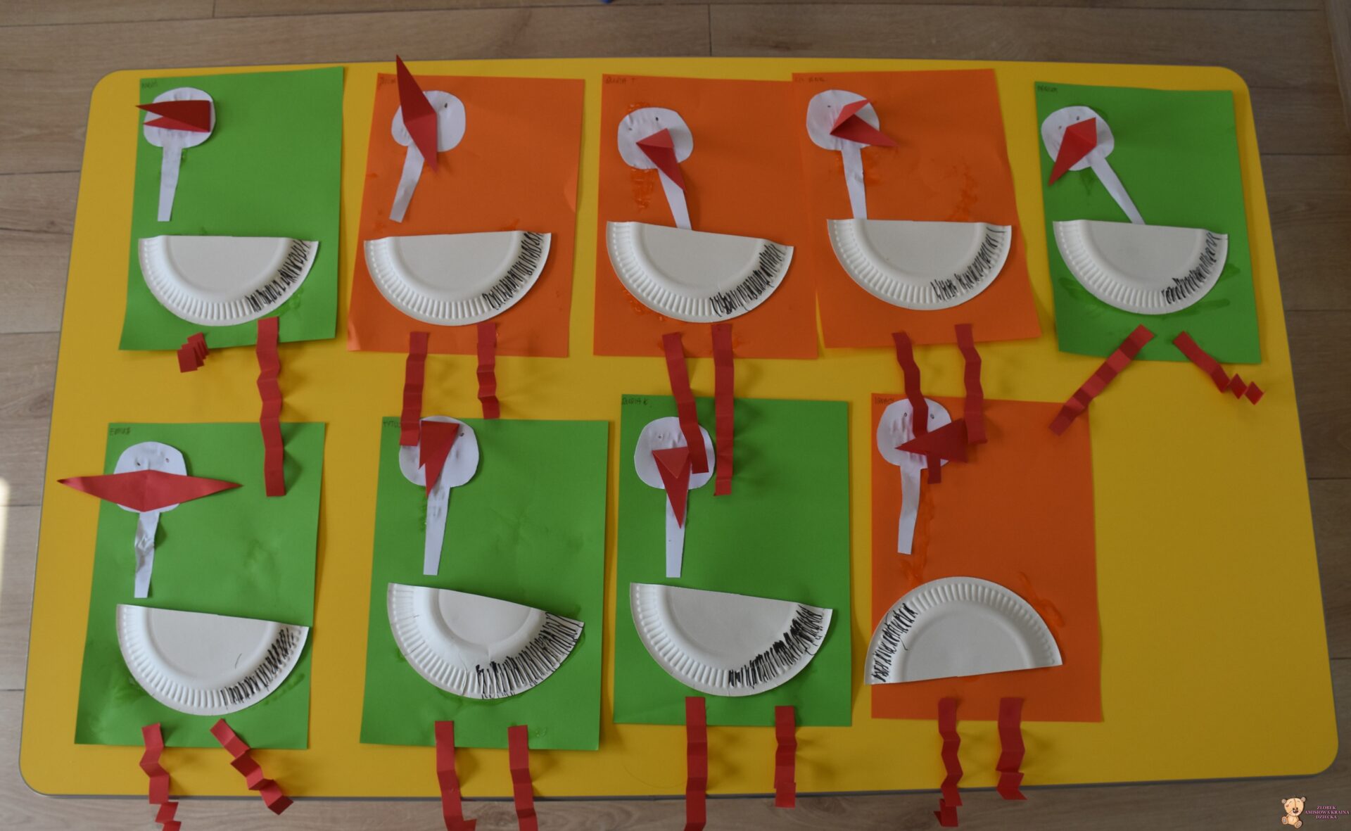Dzis na zajeciach metodą Montessori Amisiaki wykonaly pracę plastyczną zgodną z tematem tygodnia. Dzieci obejrzały film edukacyjny o wiośnie i zwierzątku ją zwiastującym-bocianie a nastepnie każdy dając wodzę swojej wyobraźni wykonal obrazek zwierzątka. Usprawnilo to motoryke małą dzieci a także dało wrażenia dotykowe- użyte zostały różne faktury.
