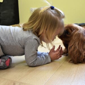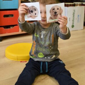 Na zajęciach z dogoterapii Amisiaki odwiedziła dzisiaj Misia. Nasze dzieciaki rozwijały dzisiaj swoją spostrzegawczość szukając dwóch takich samych obrazków wśród wielu. Obrazki przedstawiały różne rasy piesków,Na koniec wszyscy nakarmili pieska.