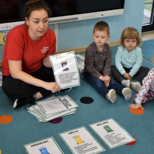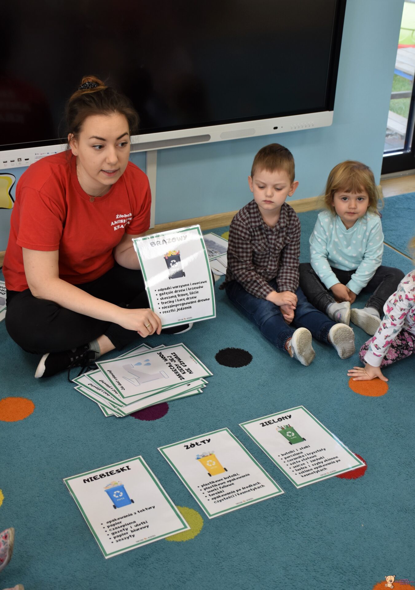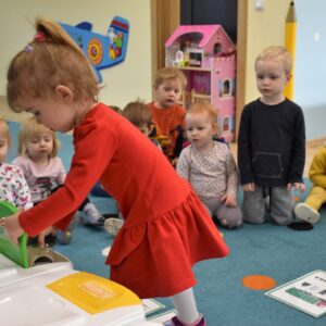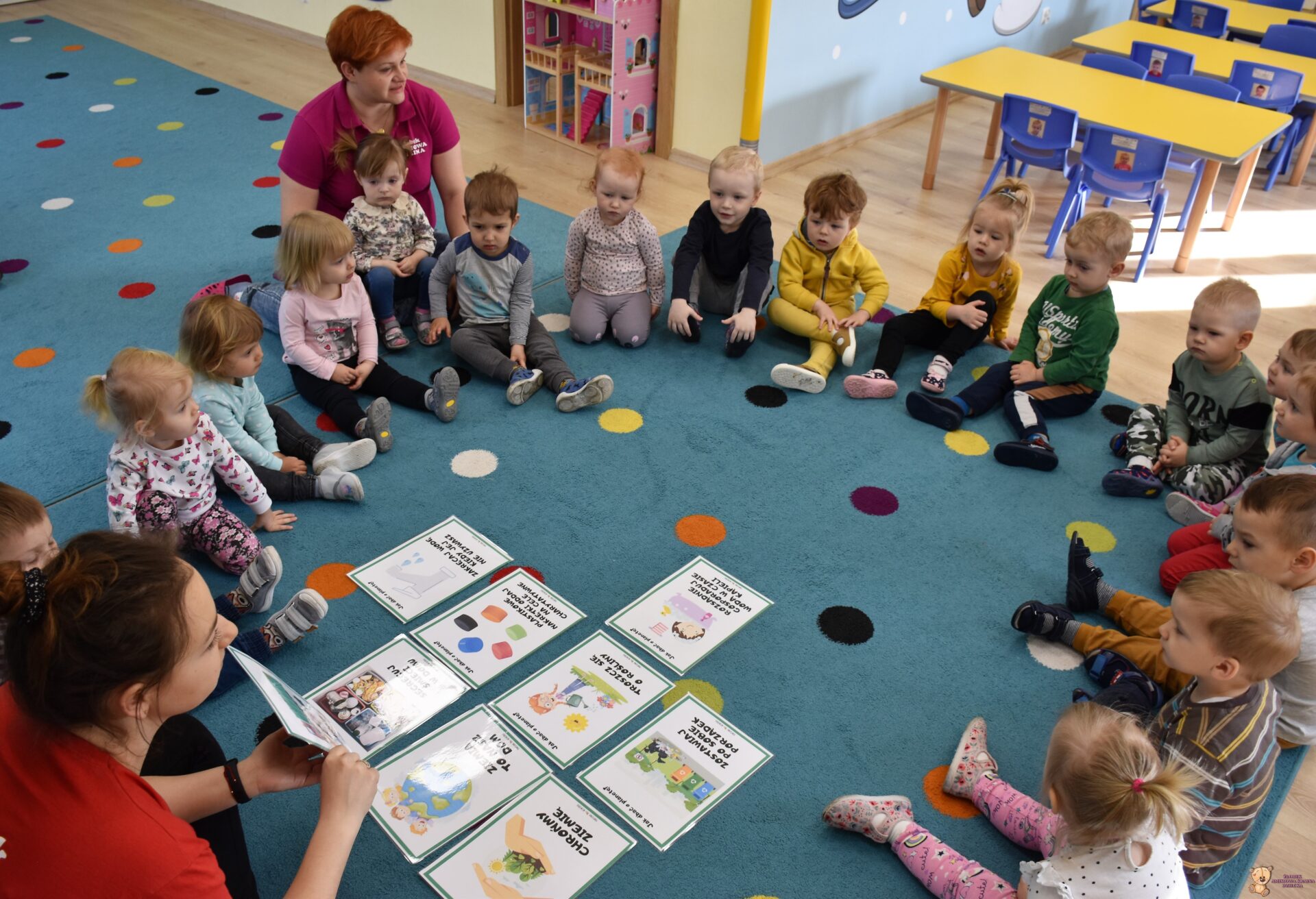 W dniu dzisiejszym, podczas porannego kręgu, Amisiaki rozmawiały z Ciocią o dzisiejszym Dniu Ziemi. Dzieci dowiedziały się, co możemy zrobić, aby nasza planeta była dalej piękna, zielona i czysta. Zapoznaliśmy dzieci, co należy zrobić z odpadami, oraz jak odpowiednio je segregować. Następnie dzieci wykonały zadania segregowania śmieci do przeznaczonych do tego koszy.