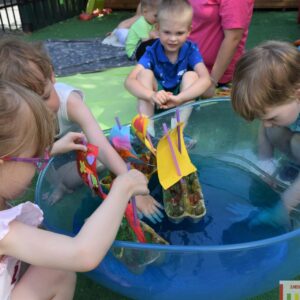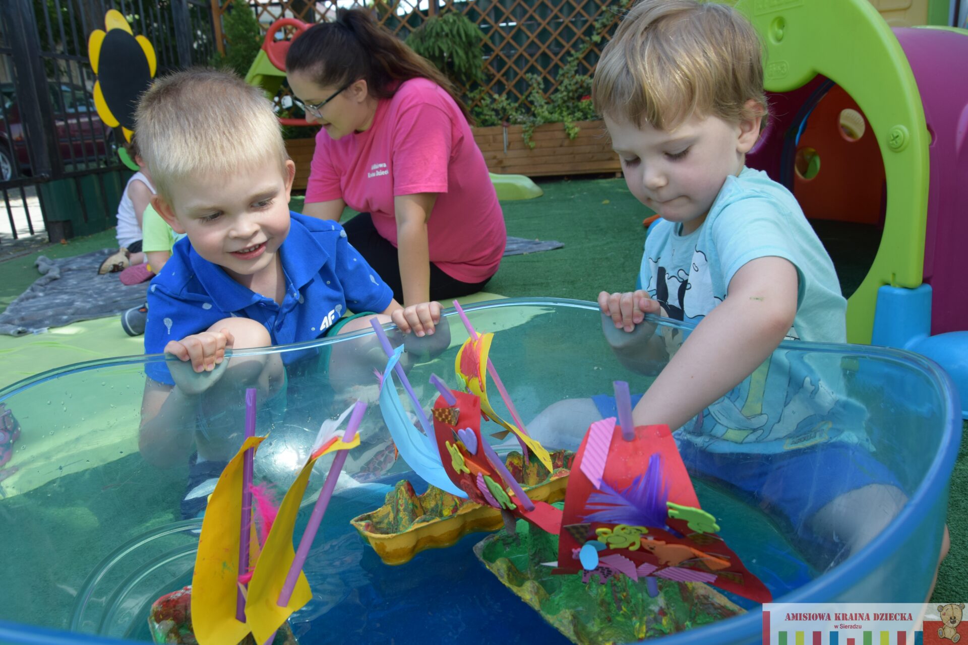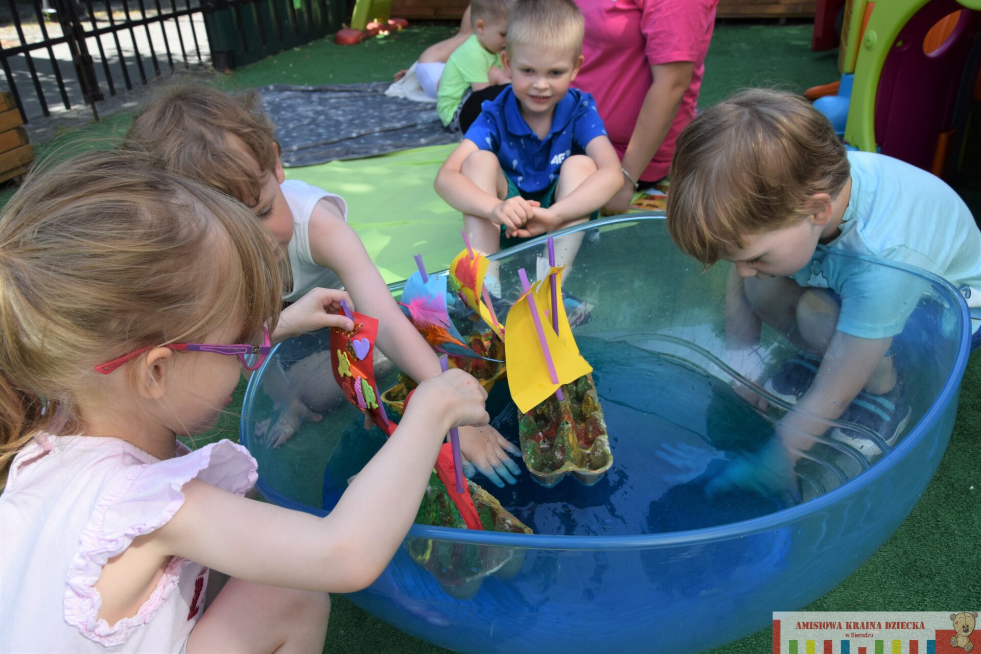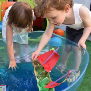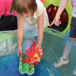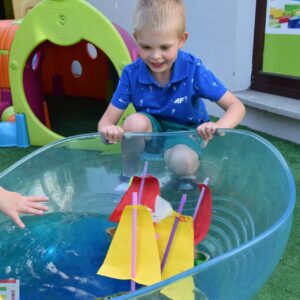 Dziś w AMIsiowej Krainie Dziecka w Sieradzu poruszyliśmy temat związany z wakacjami. Podczas rozmowy o możliwościach spędzania wolnego czasu nad wodą, przedszkolaki wykazały się cierpliwością i kreatywnością zmieniając się w piratów. Wtórnie wykorzystaliśmy niepotrzebne opakowania po jajkach, tworząc statki. Puściliśmy wodze fantazji podczas zdobienia żagli dla okrętów, którymi pływaliśmy po falach błękitnego „morza”. Wyobraźnia naszych AMIsiów nie zna granic! Zabraliśmy załogę i wyruszyliśmy w nieznane.