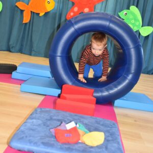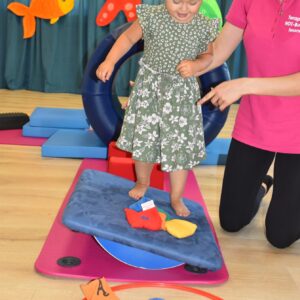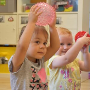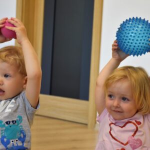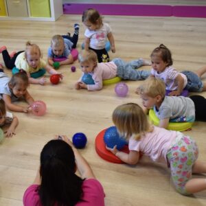 Maluchy wykonywaly rowniez zadania z piłkami sensorycznym.
