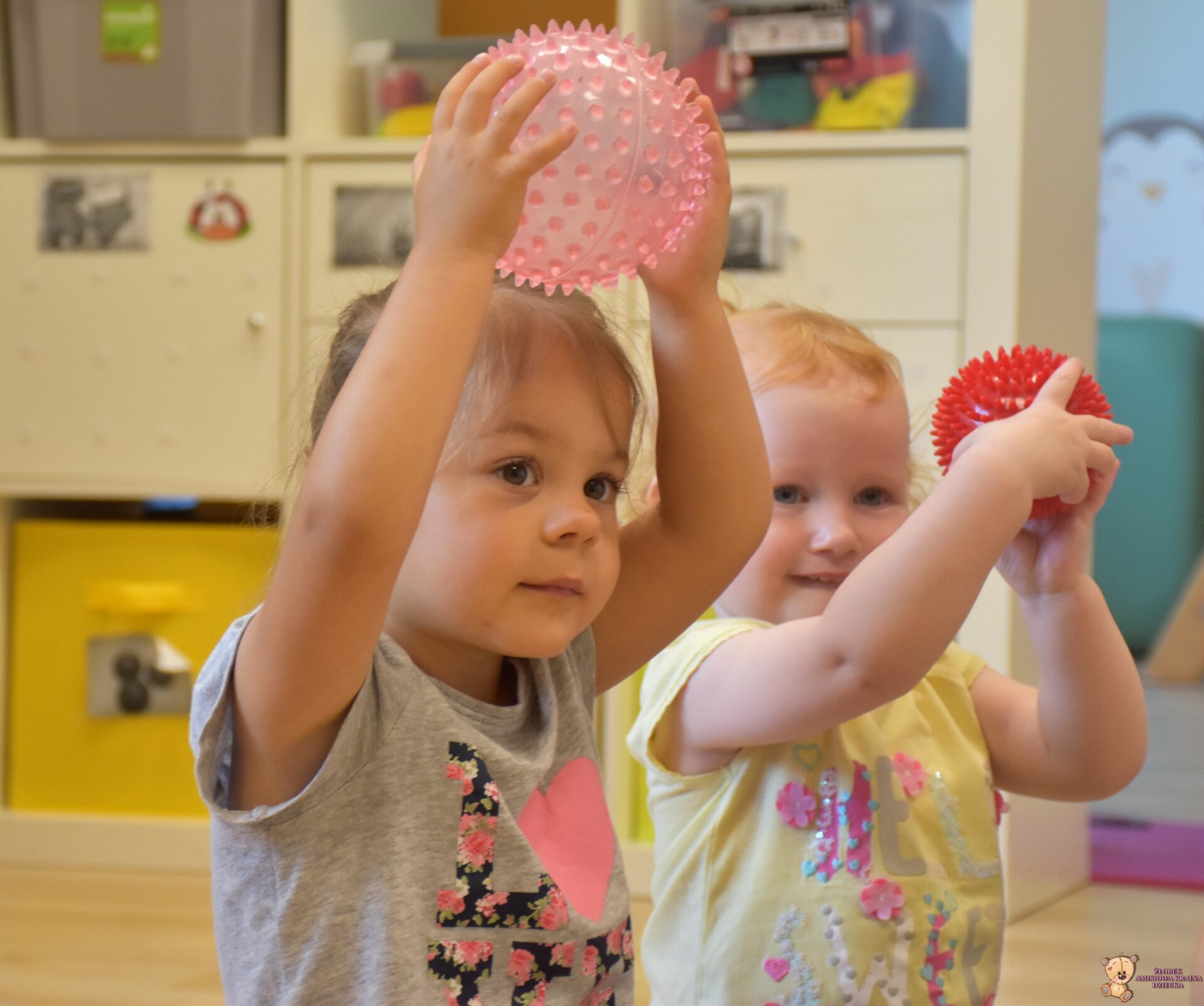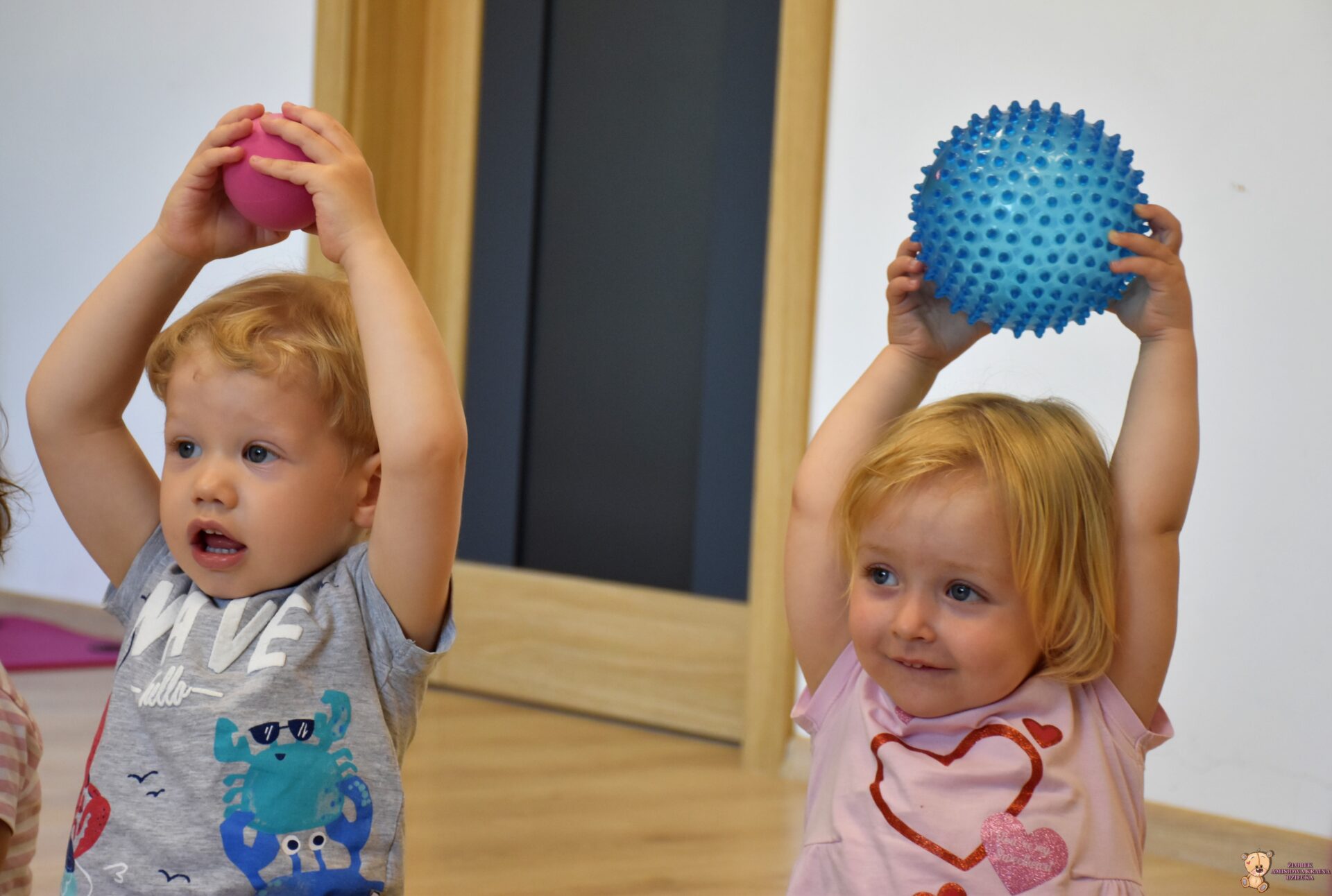 Maluchy wykonywaly rowniez zadania z piłkami sensorycznym.