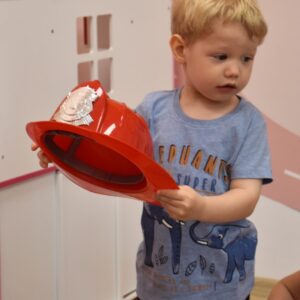 Dzisiaj na zajęciach z językiem angielskim dzieci poznały nazwy zawodow, jakie mogą wykonywać ich rodzice, ciocie lub wujkowie. Nawet ciocia wcieliła sie dzisiaj w inny zawod. Na początku dzieci przywitały pacynki przedstawiające starszaka ,policjanta ,doktora, fryzjera itp ![]()