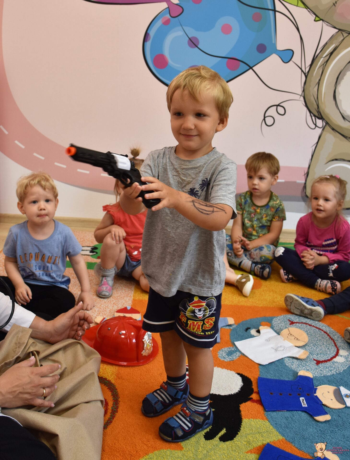 Dzisiaj na zajęciach z językiem angielskim dzieci poznały nazwy zawodow, jakie mogą wykonywać ich rodzice, ciocie lub wujkowie. Nawet ciocia wcieliła sie dzisiaj w inny zawod. Na początku dzieci przywitały pacynki przedstawiające starszaka ,policjanta ,doktora, fryzjera itp ![]()