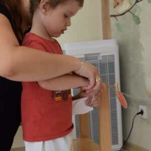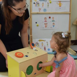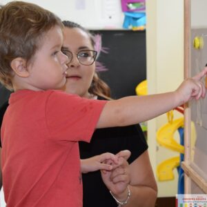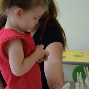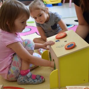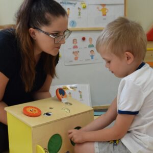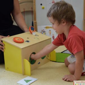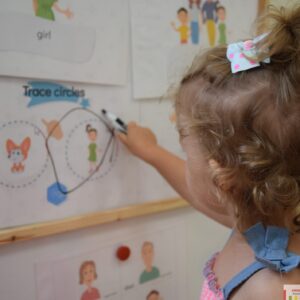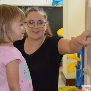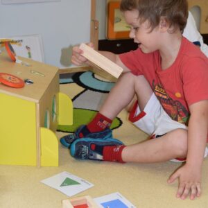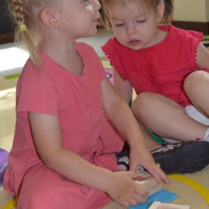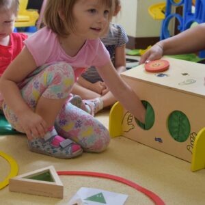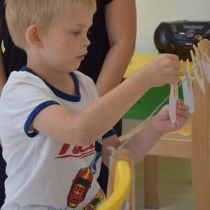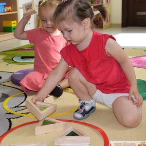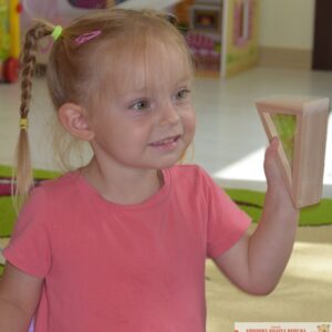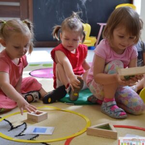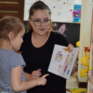 Dzisiaj Dzieci z AMIsiowej Krainy brały udział w zajęciach dydaktycznych z elementami języka angielskiego. Utrwalały znajomość nazw członków rodziny oraz rozwijały motorykę małą. Poznały także nazwy figur geometrycznych (a circle, a triangle, a square). AMIsie rozwijały również umiejętności matematyczne poprzez tworzenie rytmów z poznanych figur geometrycznych według podanego przez ciocię wzoru, jak również poprzez klasyfikację przedmiotów według danej cechy. Dzieci dzięki dobrej zabawie poszerzały swoją wiedzę i umiejętności zarówno z języka angielskiego, jak i z matematyki.