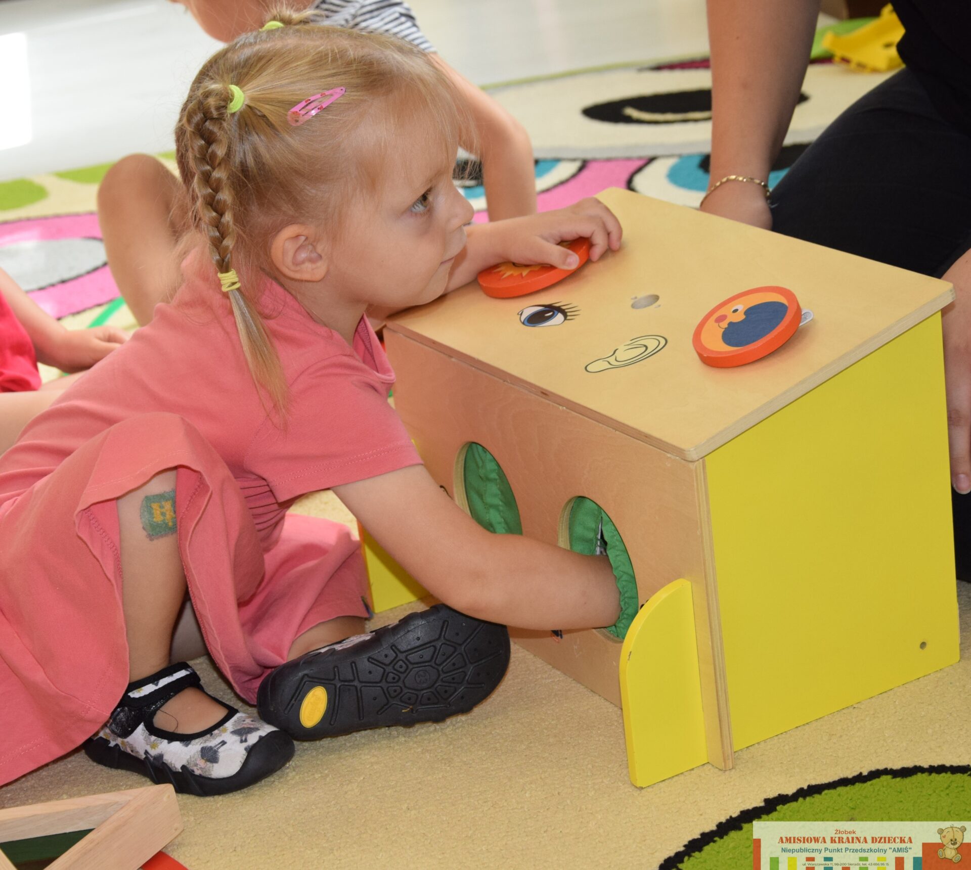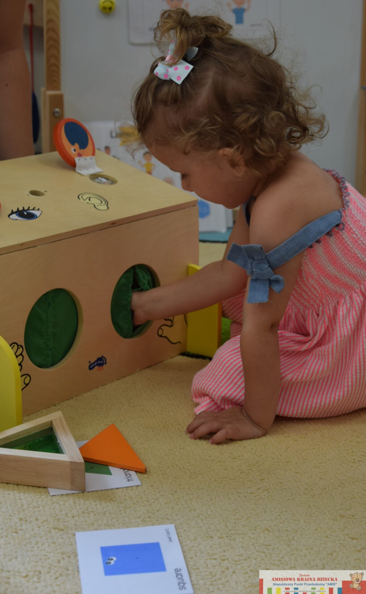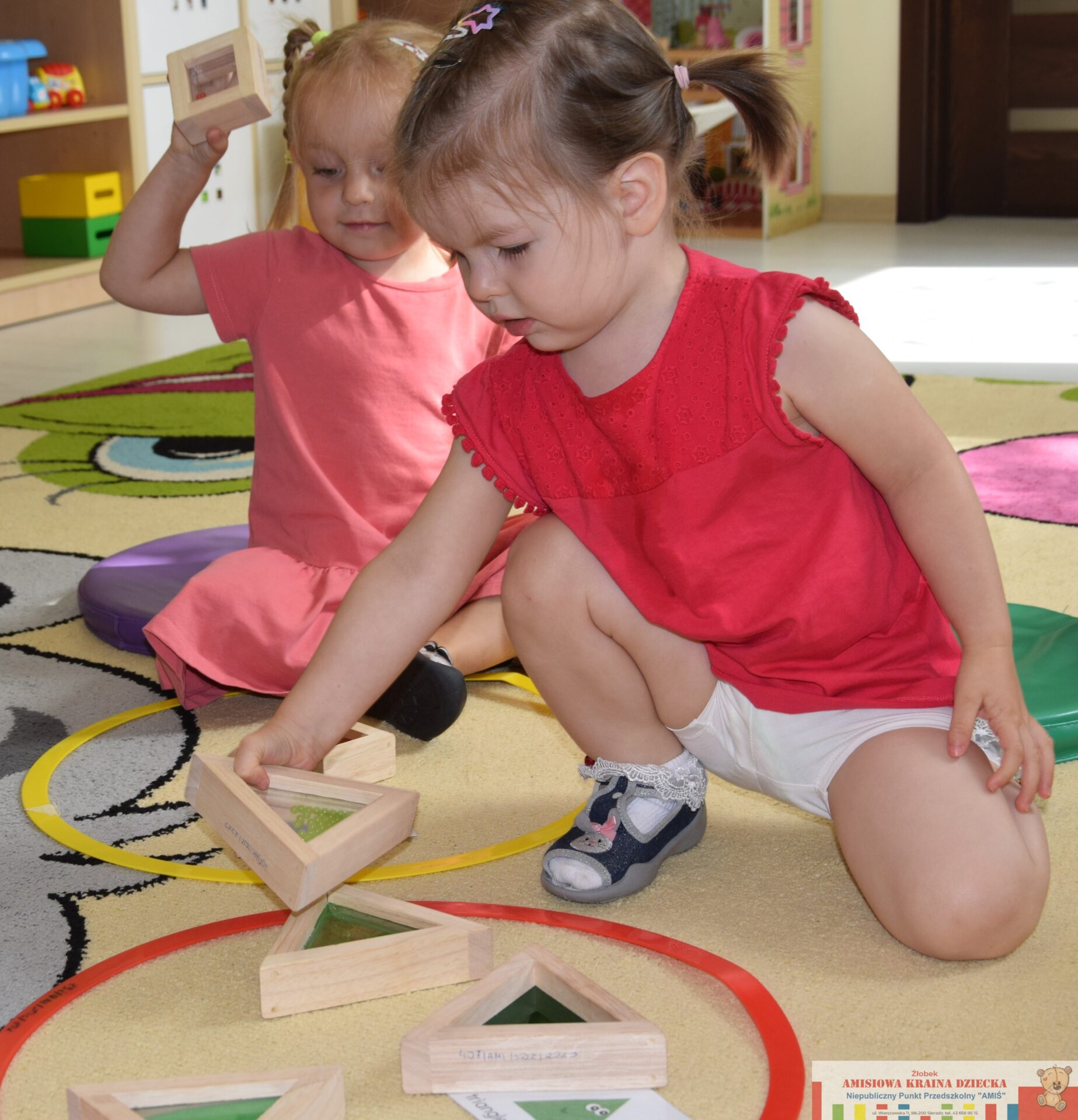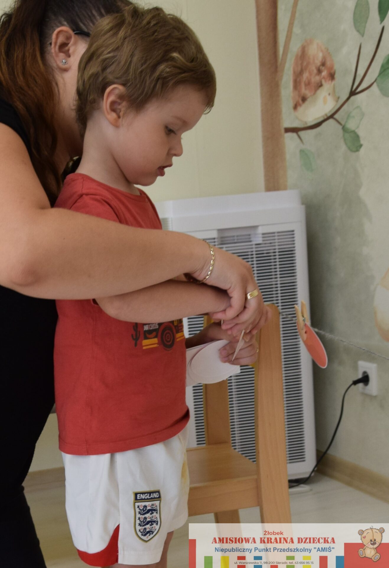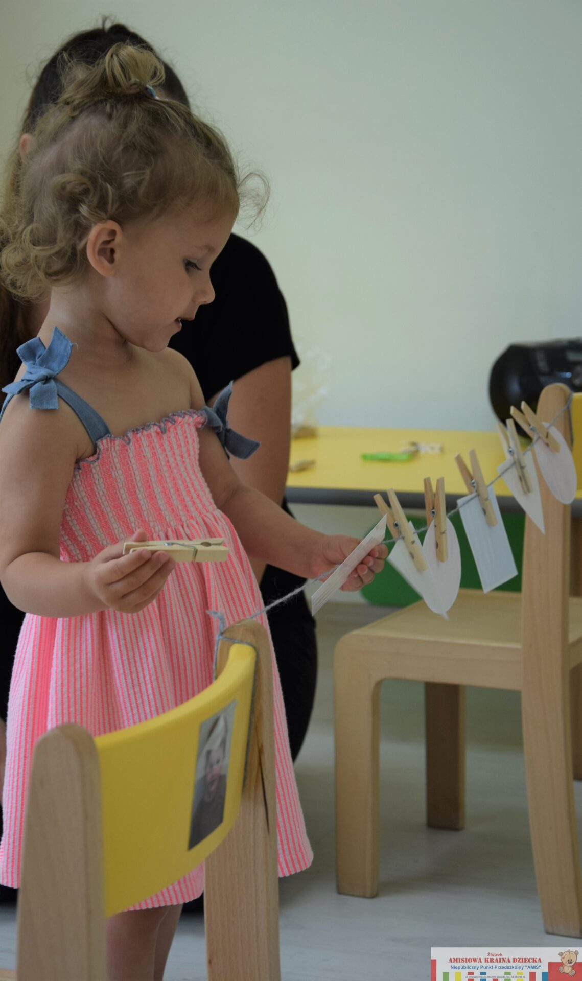 Dzisiaj Dzieci z AMIsiowej Krainy brały udział w zajęciach dydaktycznych z elementami języka angielskiego. Utrwalały znajomość nazw członków rodziny oraz rozwijały motorykę małą. Poznały także nazwy figur geometrycznych (a circle, a triangle, a square). AMIsie rozwijały również umiejętności matematyczne poprzez tworzenie rytmów z poznanych figur geometrycznych według podanego przez ciocię wzoru, jak również poprzez klasyfikację przedmiotów według danej cechy. Dzieci dzięki dobrej zabawie poszerzały swoją wiedzę i umiejętności zarówno z języka angielskiego, jak i z matematyki.