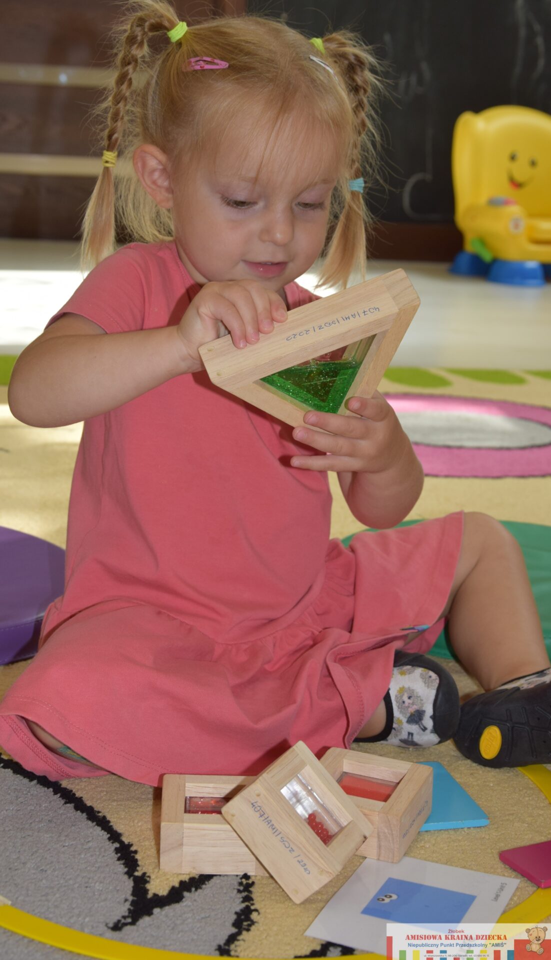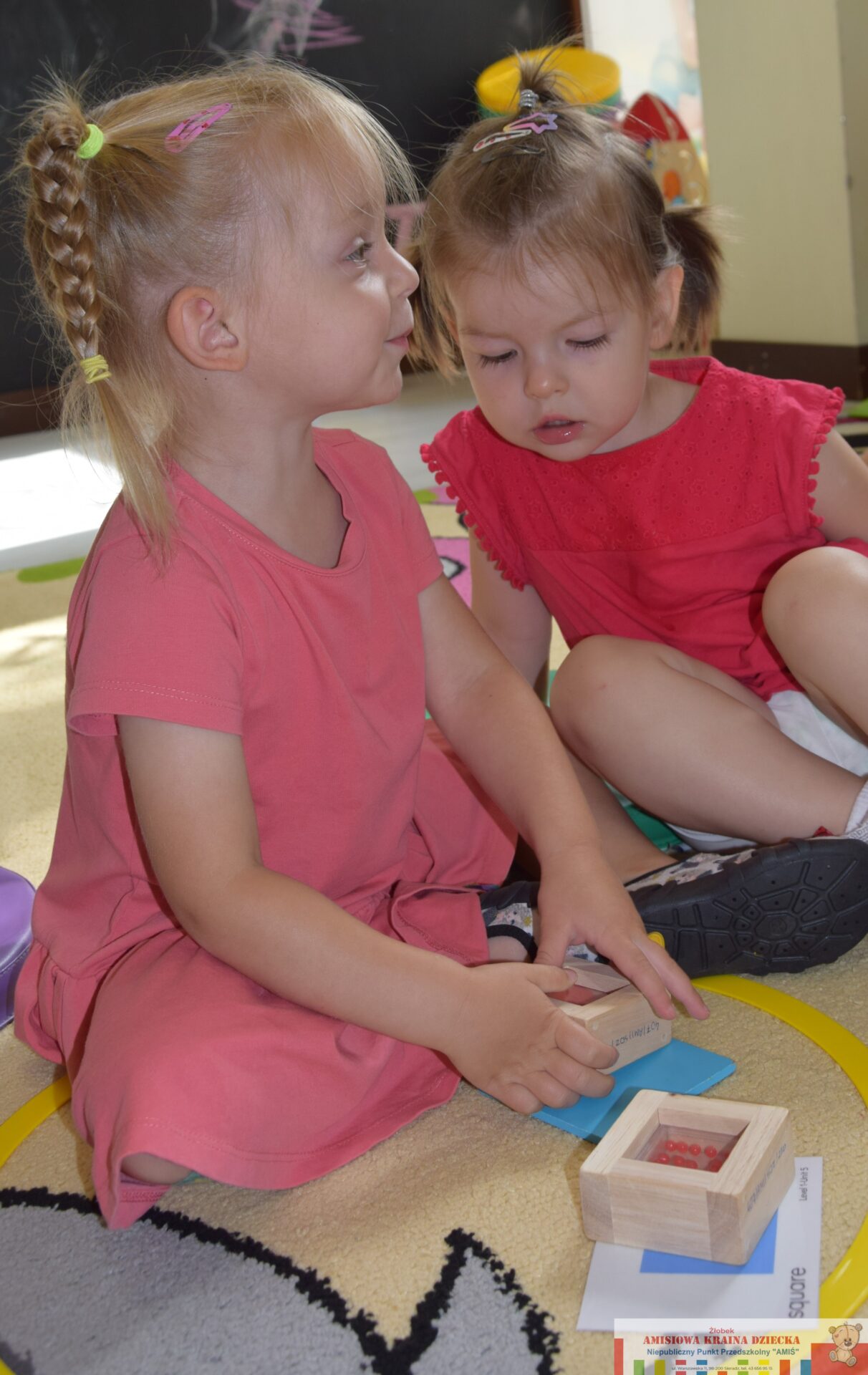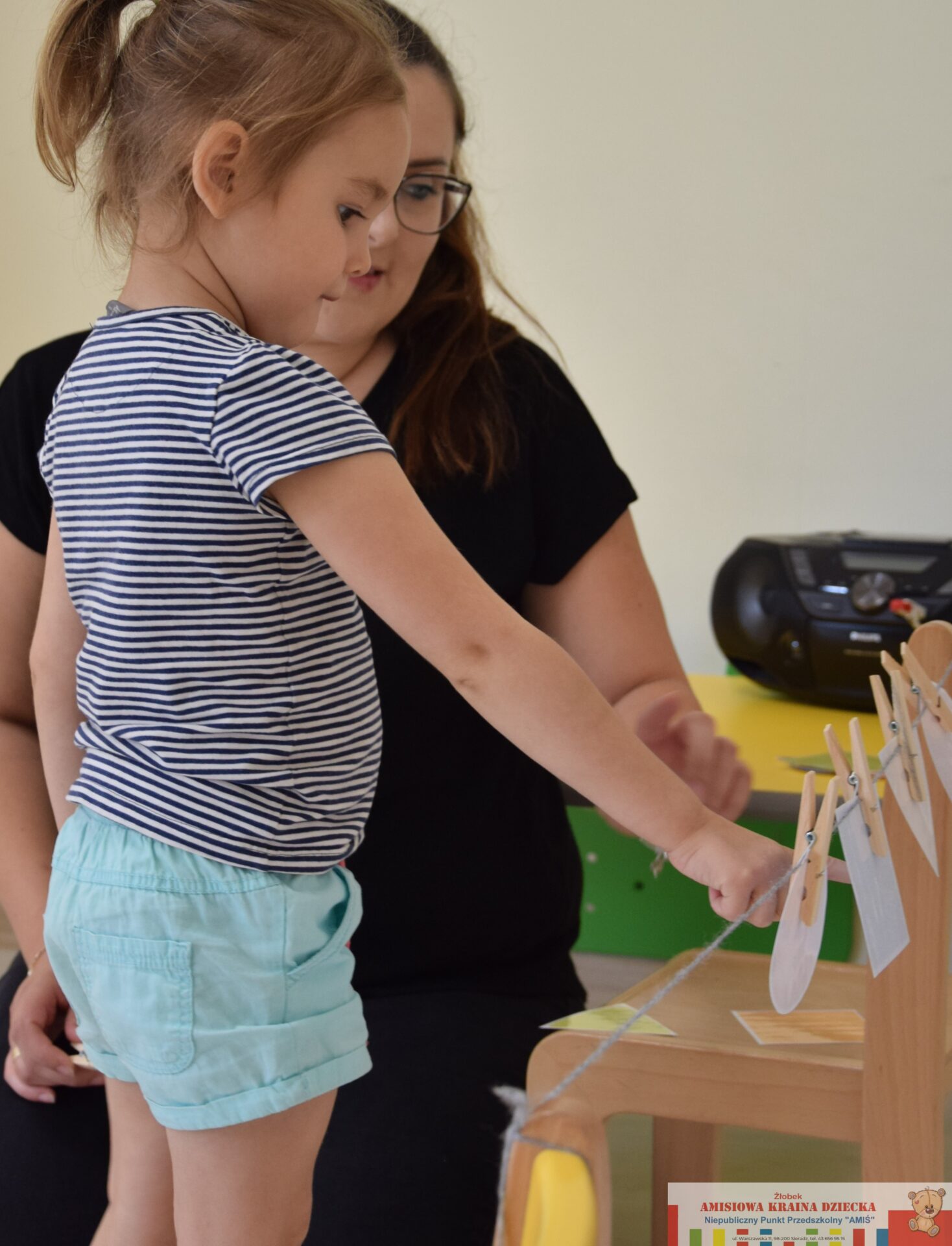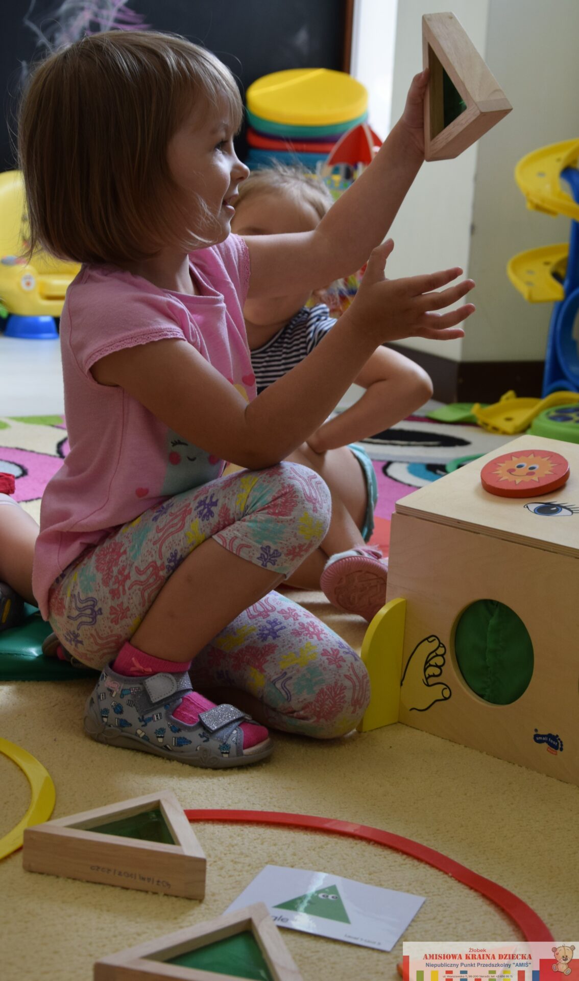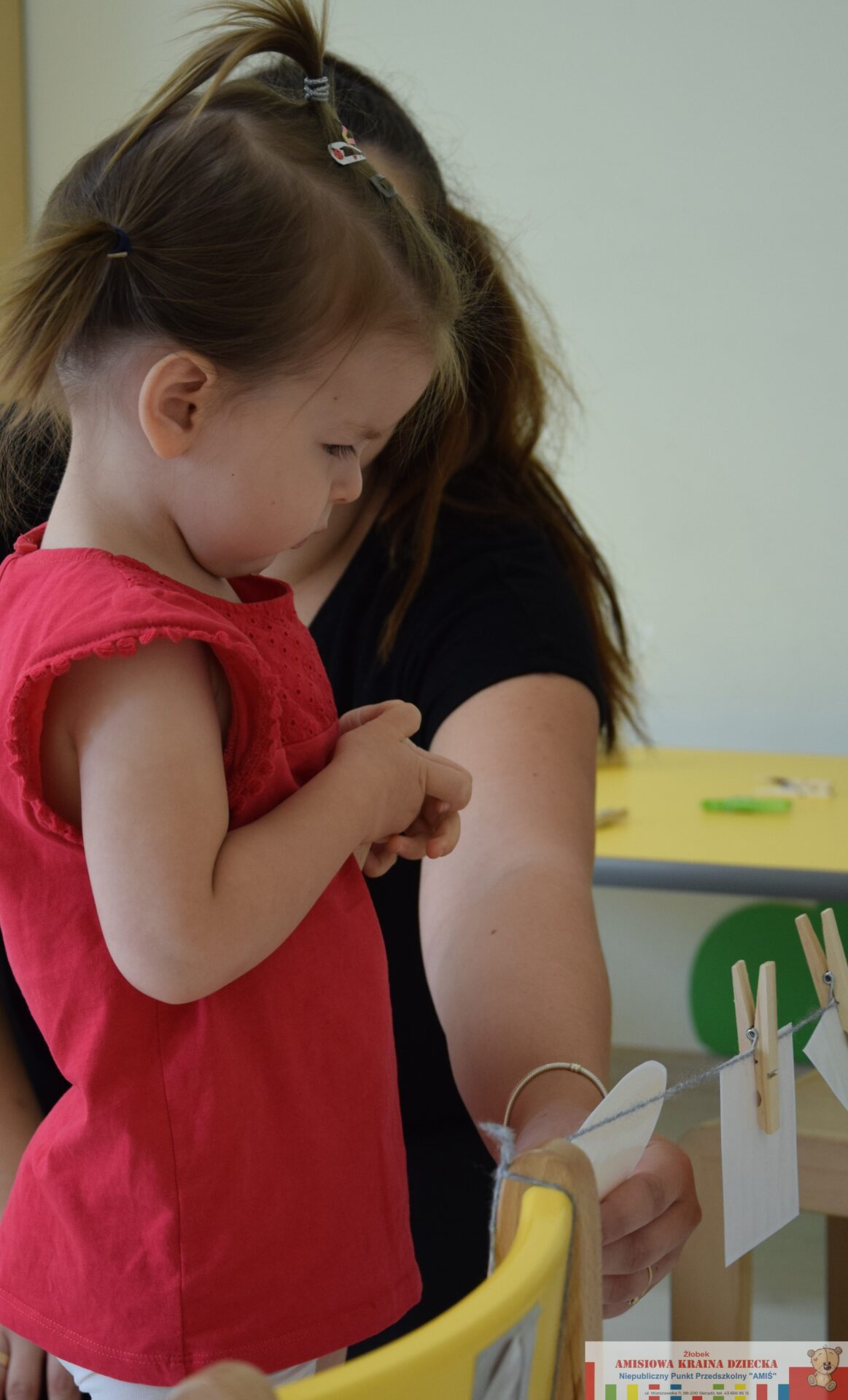 Dzisiaj Dzieci z AMIsiowej Krainy brały udział w zajęciach dydaktycznych z elementami języka angielskiego. Utrwalały znajomość nazw członków rodziny oraz rozwijały motorykę małą. Poznały także nazwy figur geometrycznych (a circle, a triangle, a square). AMIsie rozwijały również umiejętności matematyczne poprzez tworzenie rytmów z poznanych figur geometrycznych według podanego przez ciocię wzoru, jak również poprzez klasyfikację przedmiotów według danej cechy. Dzieci dzięki dobrej zabawie poszerzały swoją wiedzę i umiejętności zarówno z języka angielskiego, jak i z matematyki.