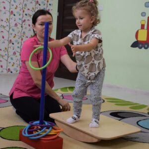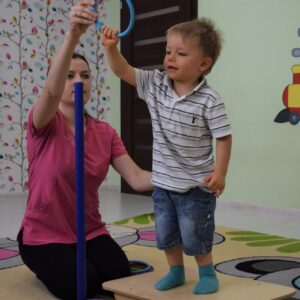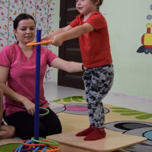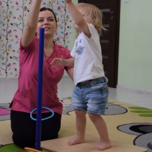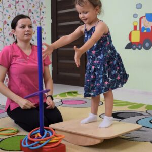 Dzisiaj Żłobek AMIsiowa Kraina Dziecka w Sieradzu odwiedziła ciocia Iwonka. Podczas zajęć z ciocią dzieci rozwijały zmysł równowagi balansując ciałem na równoważni oraz motorykę i celność poprzez rzut okręgiem na patyk. Ciocia przygotowała dla naszych maluszków również zadania związane z ich ulubioną piłką. Jak zawsze AMIsie dzielnie i ochoczo wzięły udział w cotygodniowych ćwiczeniach.