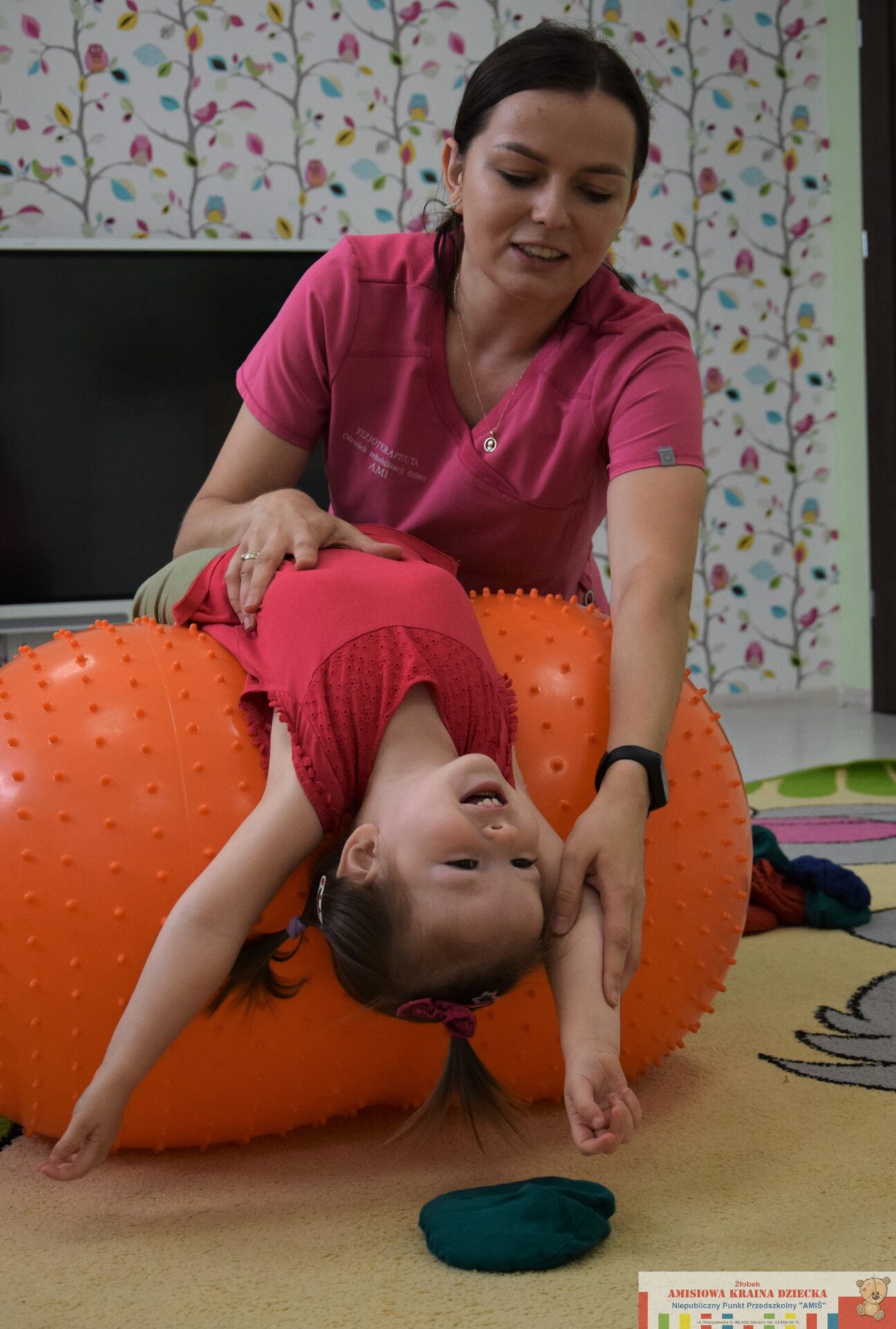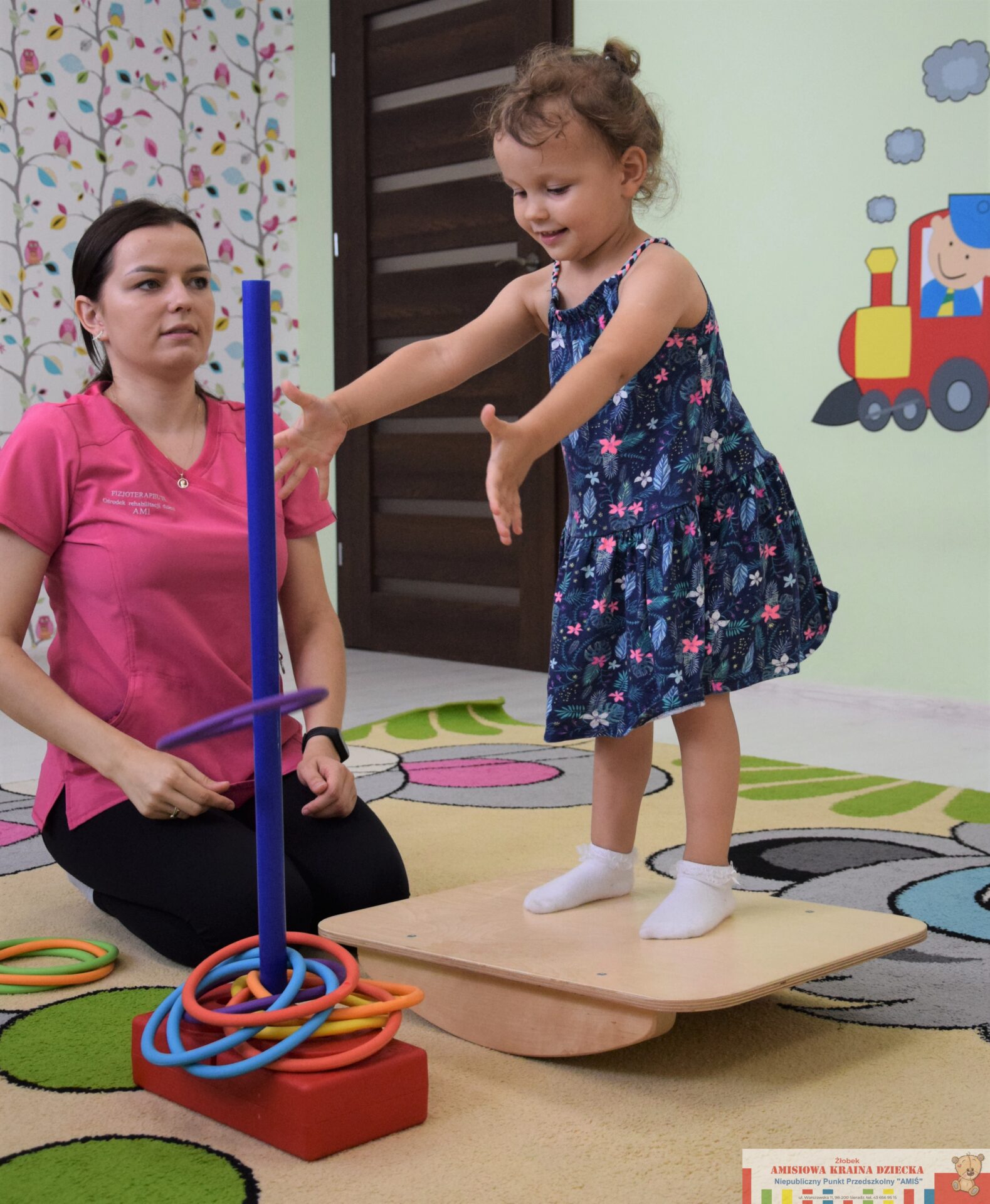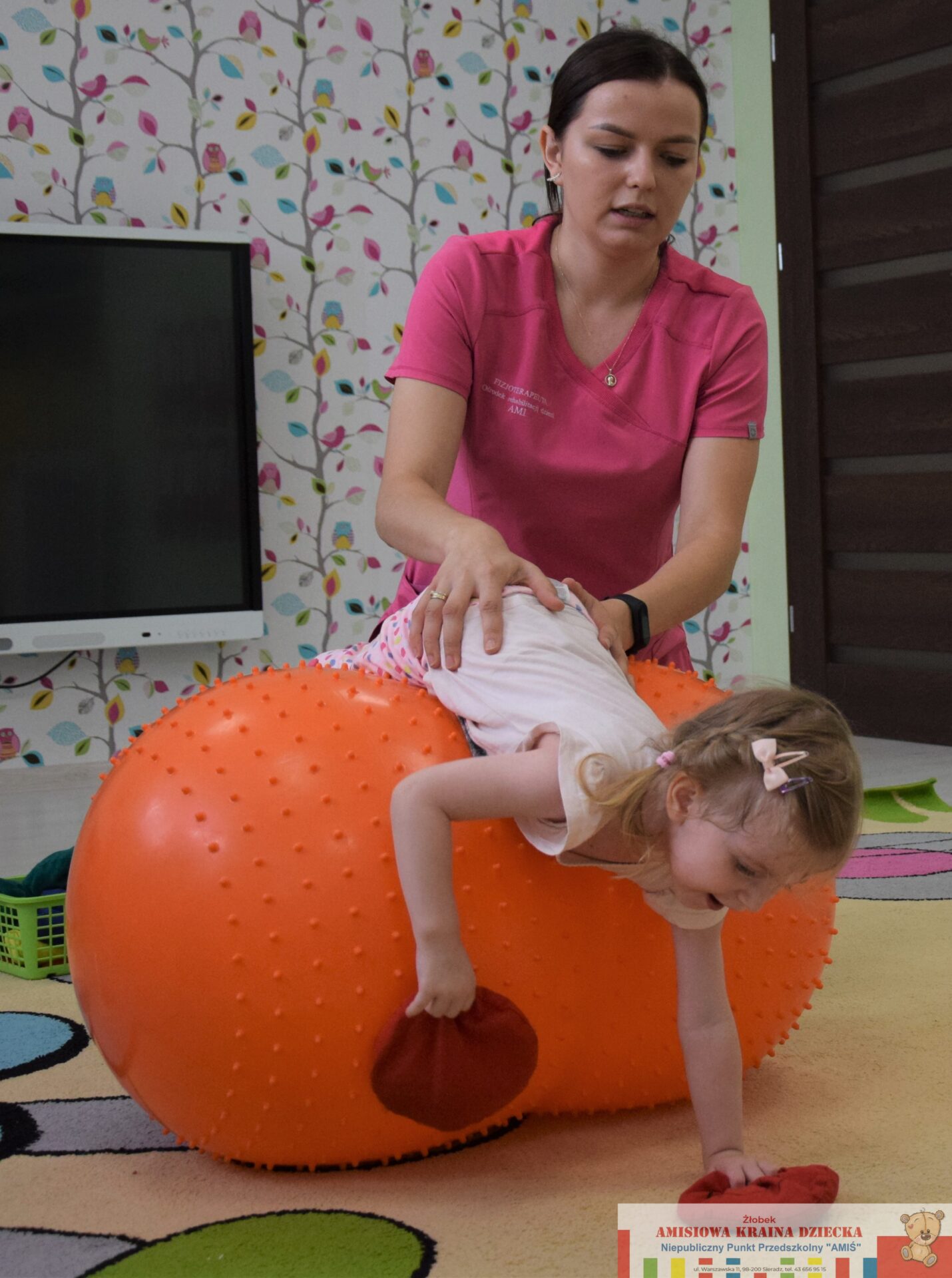 Dzisiaj Żłobek AMIsiowa Kraina Dziecka w Sieradzu odwiedziła ciocia Iwonka. Podczas zajęć z ciocią dzieci rozwijały zmysł równowagi balansując ciałem na równoważni oraz motorykę i celność poprzez rzut okręgiem na patyk. Ciocia przygotowała dla naszych maluszków również zadania związane z ich ulubioną piłką. Jak zawsze AMIsie dzielnie i ochoczo wzięły udział w cotygodniowych ćwiczeniach.