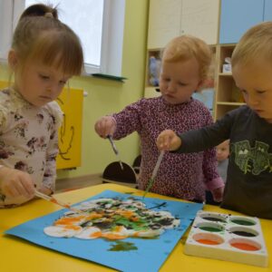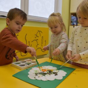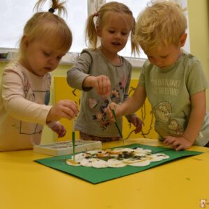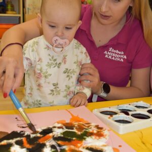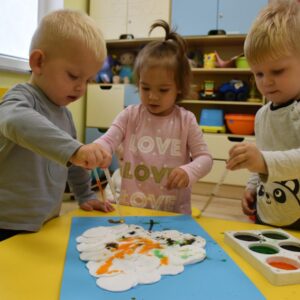 Dziś powitaliśmy jesień 🍄🍂. AMIsiaki na zajęciach metodą M. Montessori poznały kolejną porę roku oraz określiły jaka pogoda panuje za oknem. Następnie wykonały jesienne drzewo, nanosząc kolorową wodę na waciki za pomocą pipety. Rozwijały w ten sposób swoją koncentracje oraz ćwiczyły chwyt pęsetowy. Na koniec zajęć ciocia Natalia włączyła uwielbiany przez wszystkie dzieci magiczny dywan, a na nim kolorowe liście, które pasowały tematycznie do zajęć.
