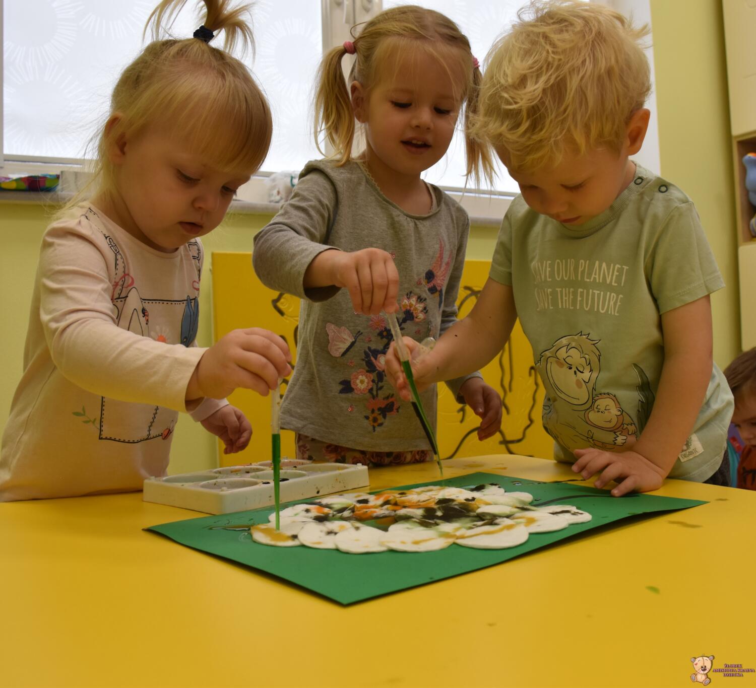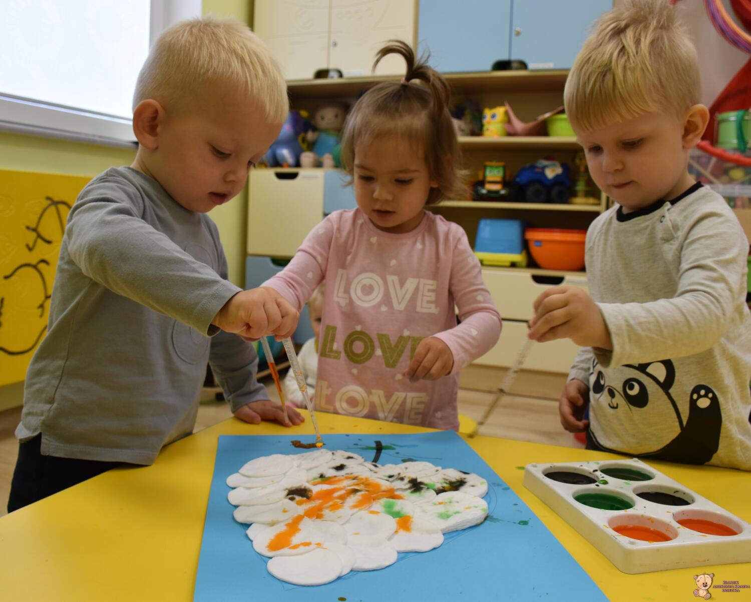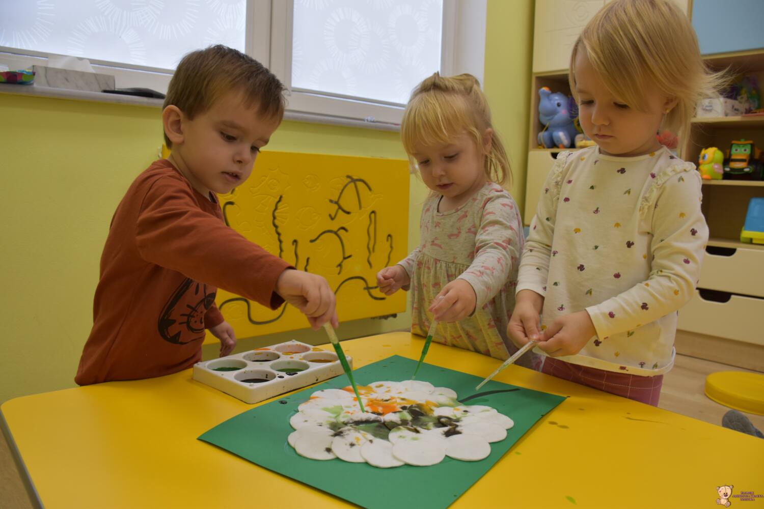 Dziś powitaliśmy jesień 🍄🍂. AMIsiaki na zajęciach metodą M. Montessori poznały kolejną porę roku oraz określiły jaka pogoda panuje za oknem. Następnie wykonały jesienne drzewo, nanosząc kolorową wodę na waciki za pomocą pipety. Rozwijały w ten sposób swoją koncentracje oraz ćwiczyły chwyt pęsetowy. Na koniec zajęć ciocia Natalia włączyła uwielbiany przez wszystkie dzieci magiczny dywan, a na nim kolorowe liście, które pasowały tematycznie do zajęć.