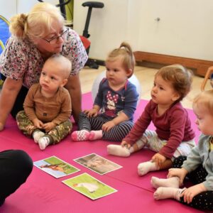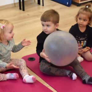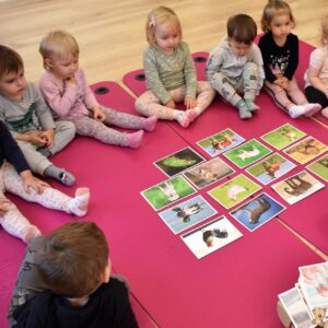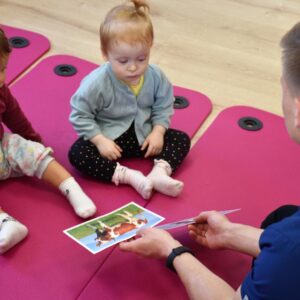 Dzisiaj dzieci rozpoznawały odgłosy różnych zwierząt i przypasowywały je do obrazka. Młodsze dzieciaki bawiły się również z piłką, a także podjęły zabawę w tunelu, chowaliśmy się przed sobą i co odważniejsi wchodzili do środka