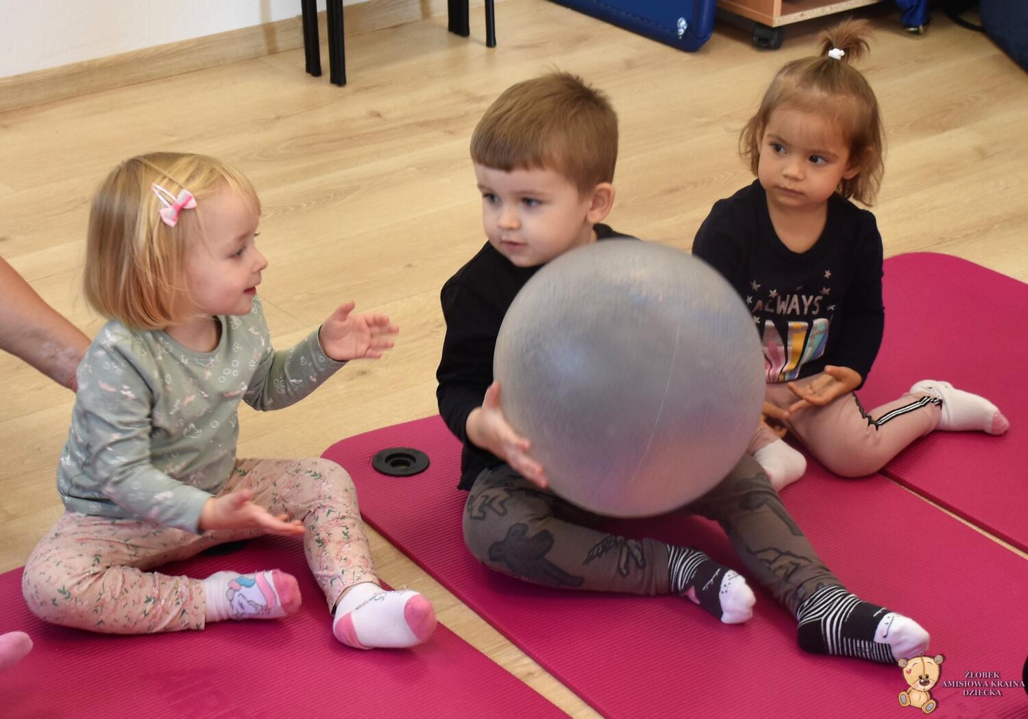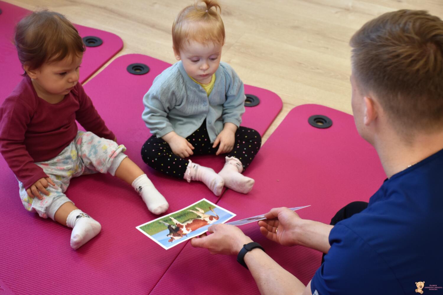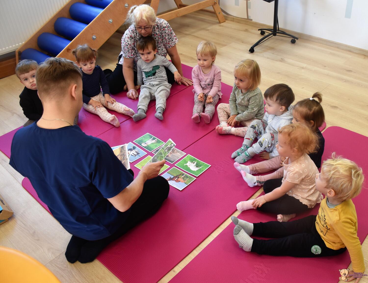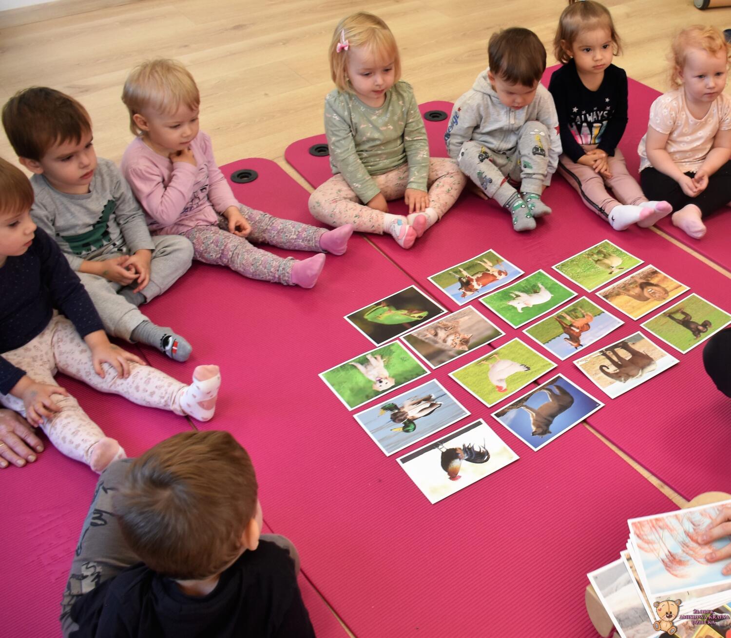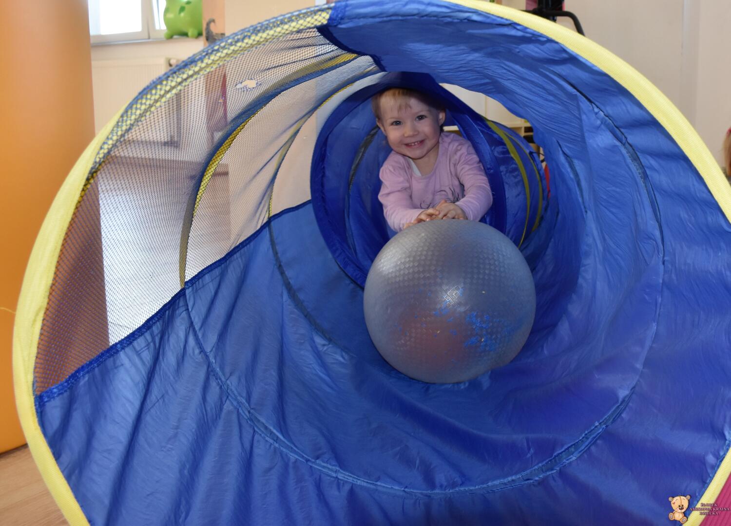 Dzisiaj dzieci rozpoznawały odgłosy różnych zwierząt i przypasowywały je do obrazka. Młodsze dzieciaki bawiły się również z piłką, a także podjęły zabawę w tunelu, chowaliśmy się przed sobą i co odważniejsi wchodzili do środka