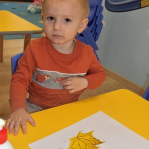 W dniu dzisiejszym dzieci z AMIsiowej Krainy Dziecka w Zduńskiej woli w ramach zajęć plastycznych wykonały pracę przedstawiającą jeżyka. Do jej wykonania zostały wykorzystane kolorowe liście klonu. 🙂