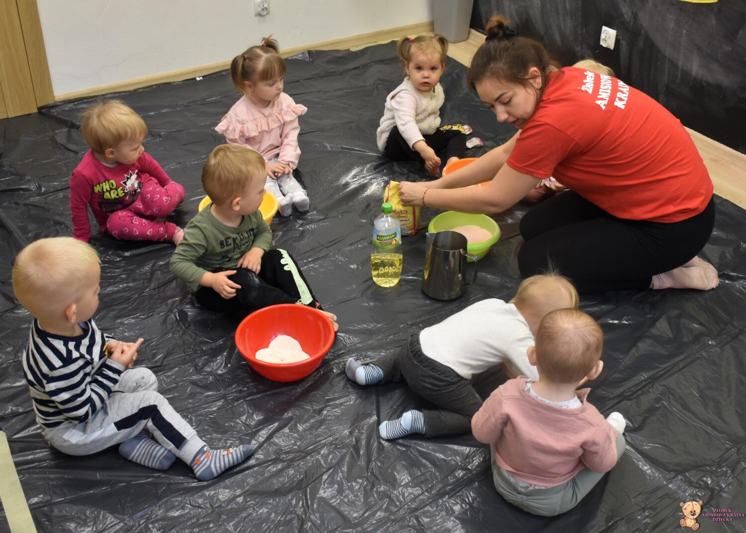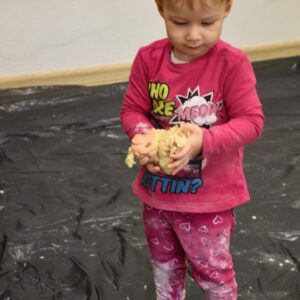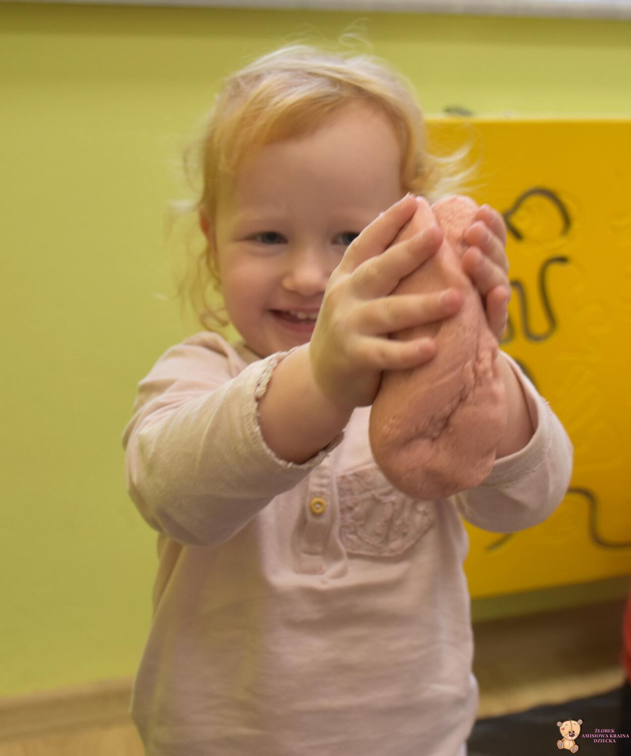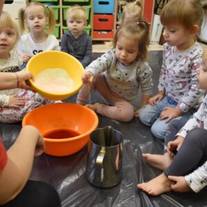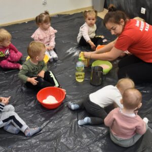 Na dzisiejszych zajęciach z sensoplastyki, AMIsiaki , wraz z ciocią Martą stworzyły kolorową i pachnącą ciastolinę z galaretką! Ciastolina to sposób na wspaniałą i kreatywną zabawę, uwielbianą przez dzieci. Lepienie, ugniatanie, ubijanie i formowanie rozmaitych kształtów, stwarzają możliwości dla rozwoju dziecięcej wyobraźni i kreatywności. Ta forma zabawy, to również szansa na rozwijanie motoryki, a także pobudzanie zmysłów dotyku, czy węchu.