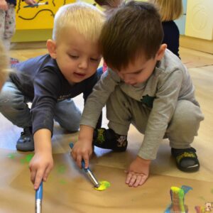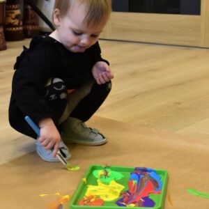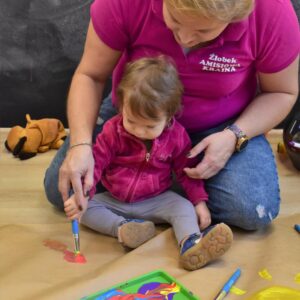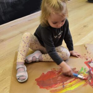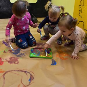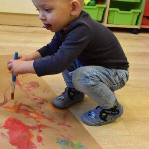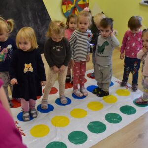 maluszki na początku bawiły się kolorowymi piłkami, a starszaki rozpoczęły od gry w twistera. Później poznaliśmy nowa piosenke,którą bedziemy ćwiczyć na kolejnych zajęciach. Na koniec pobawiliśmy się malując farbami i mieszając kolory ze sobą.