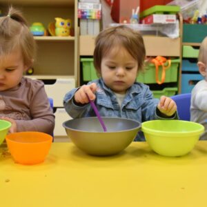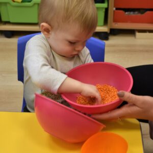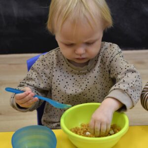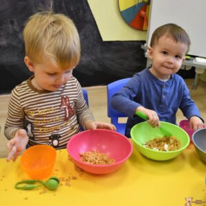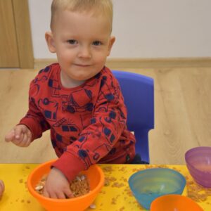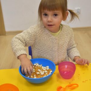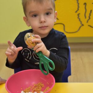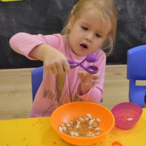 Na dzisiejszych zajeciach metodą Montessori Amisiaki przekładały ugotowaną ciecierzycę za pomocą szczypcy- młodsze dzieci za pomocą łyżek😀. Obserwowały również różnice pomiędzy wyglądem, oraz odgłosem gotowanej a surowej ciecierzycy. Doświadczyły również wrażeń sensorycznych poprzez ugniatanie, oraz segregacje. 😀