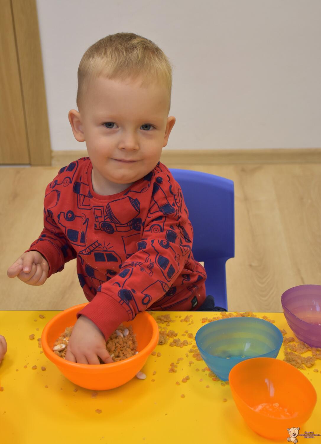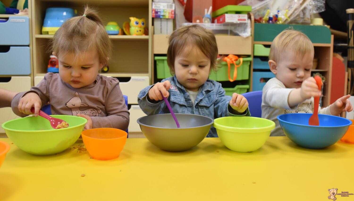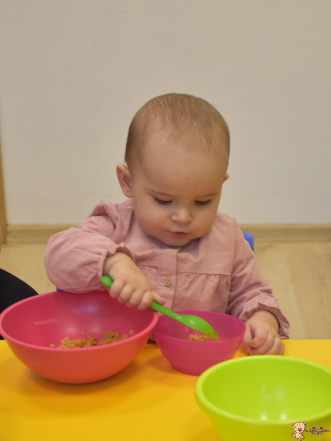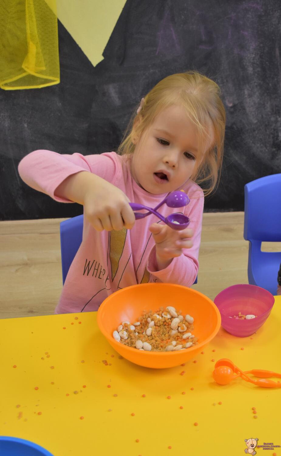 Na dzisiejszych zajeciach metodą Montessori Amisiaki przekładały ugotowaną ciecierzycę za pomocą szczypcy- młodsze dzieci za pomocą łyżek😀. Obserwowały również różnice pomiędzy wyglądem, oraz odgłosem gotowanej a surowej ciecierzycy. Doświadczyły również wrażeń sensorycznych poprzez ugniatanie, oraz segregacje. 😀