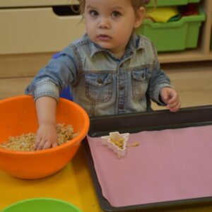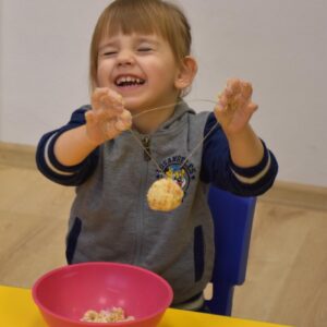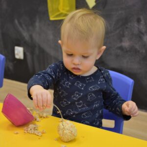 Na dzisiejszych zajęciach z sensoplastyki, nasze Amisiaki zadbały o małych przyjaciół. Wspólnie z ciocią dzieci stworzył przysmaki dla ptaków, z ziaren i innych smakołyków. Dzieci lepiły kule, lub wyklejały foremki masą dla ptaków. Zachęcamy do zabrania przysmaków dla ptaszków, które umieściliśmy na korytarzu żłobka. Zapraszamy do wspólnej zabawy ! Prosimy o zawieszenie przysmaków na drzewach, zrobienie zdjęć i umieszczenie ich w komentarzu pod postem 🙂