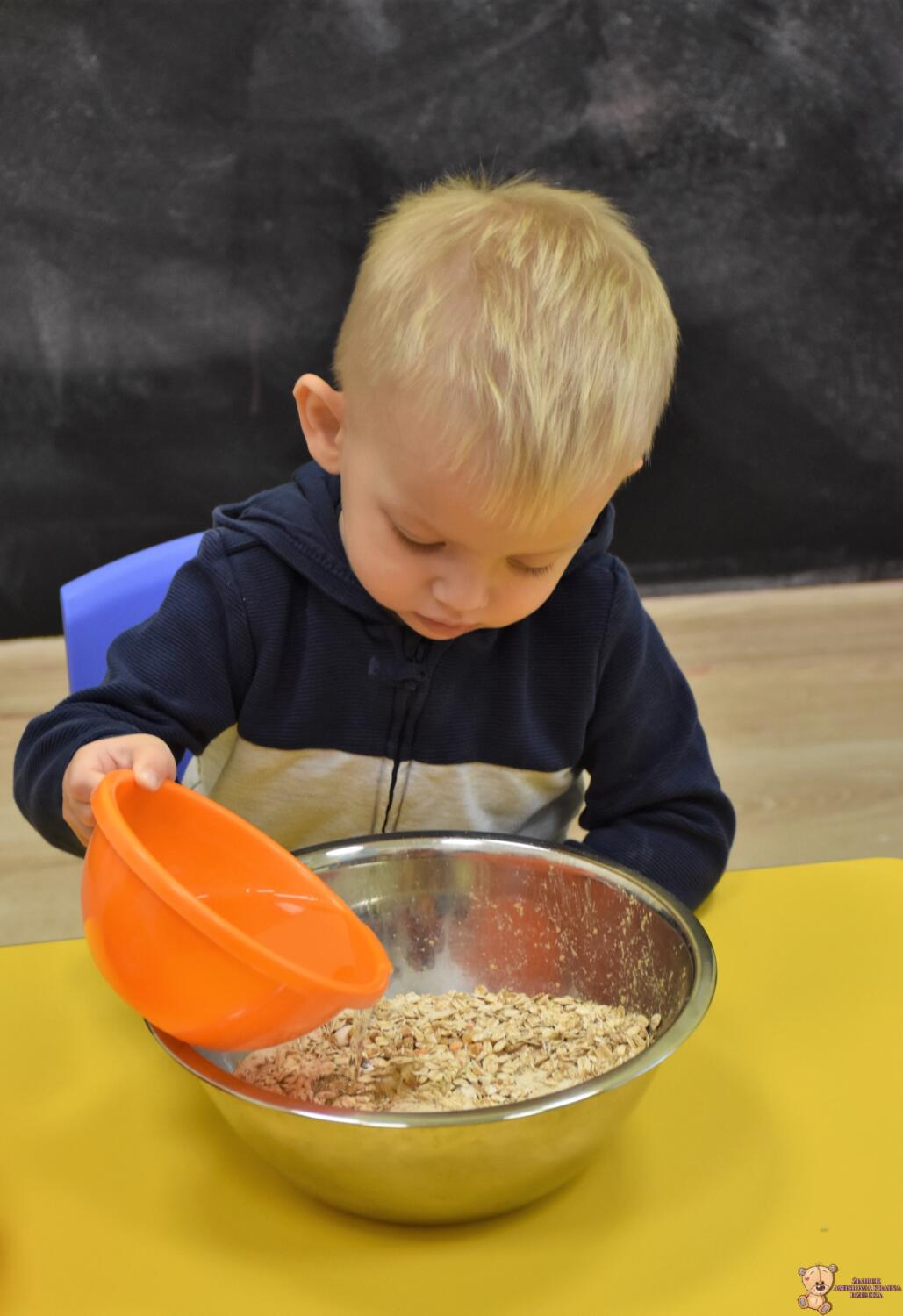 Na dzisiejszych zajęciach z sensoplastyki, nasze Amisiaki zadbały o małych przyjaciół. Wspólnie z ciocią dzieci stworzył przysmaki dla ptaków, z ziaren i innych smakołyków. Dzieci lepiły kule, lub wyklejały foremki masą dla ptaków. Zachęcamy do zabrania przysmaków dla ptaszków, które umieściliśmy na korytarzu żłobka. Zapraszamy do wspólnej zabawy ! Prosimy o zawieszenie przysmaków na drzewach, zrobienie zdjęć i umieszczenie ich w komentarzu pod postem 🙂